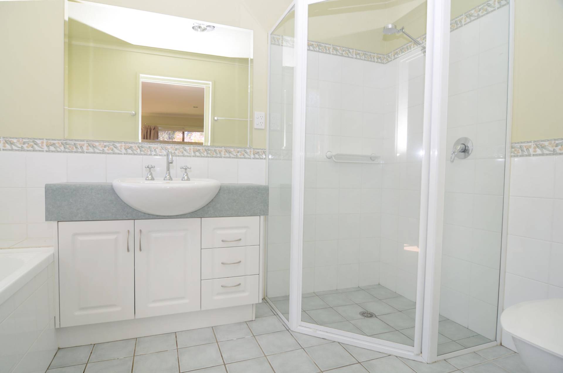 This home shines with a large bright living and dining area connecting with a modern kitchen with breakfast bar and walk-in pantry. The big master bedroom offers an ensuite and WIR and a smaller bedroom/study with built-in shares the same floor. Downstairs comprises 2 good sized bedrooms with BIR's, main bathroom, a large storage room and a laundry that leads to a covered patio and the terraced backyard.