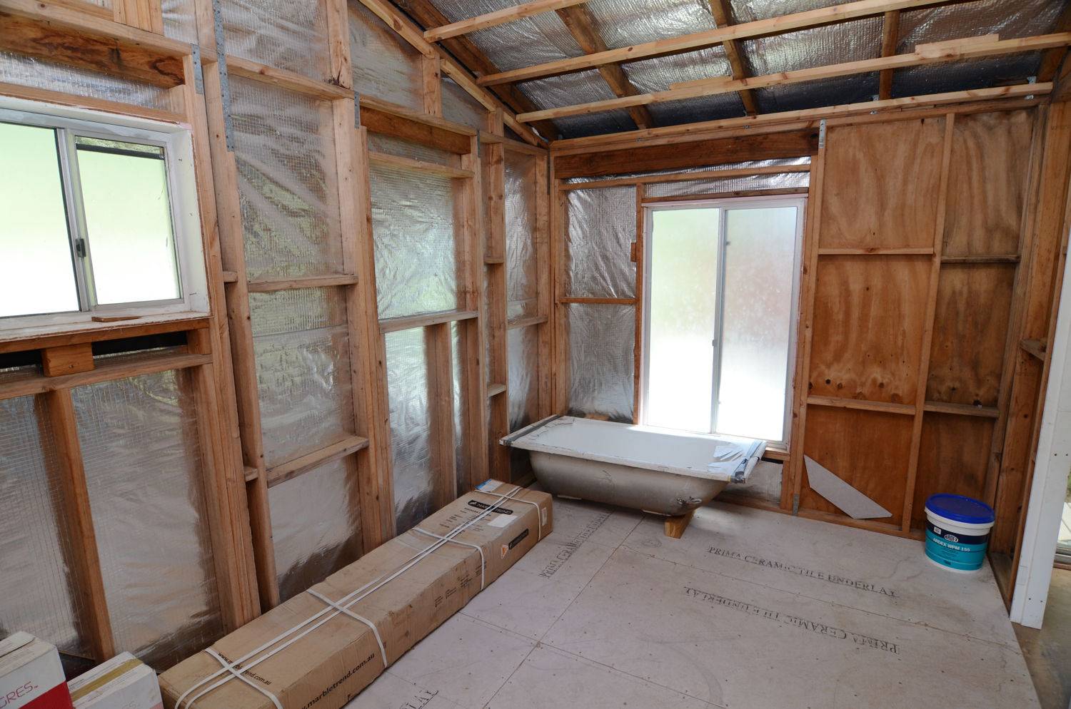 Built to lock-up stage (council approved) and requiring completion it includes many new and recycled fit out items such as a kitchen, solar panels with batteries, bath tub, tiles & shower screen, assorted plasterboard, insulation wool and timber.