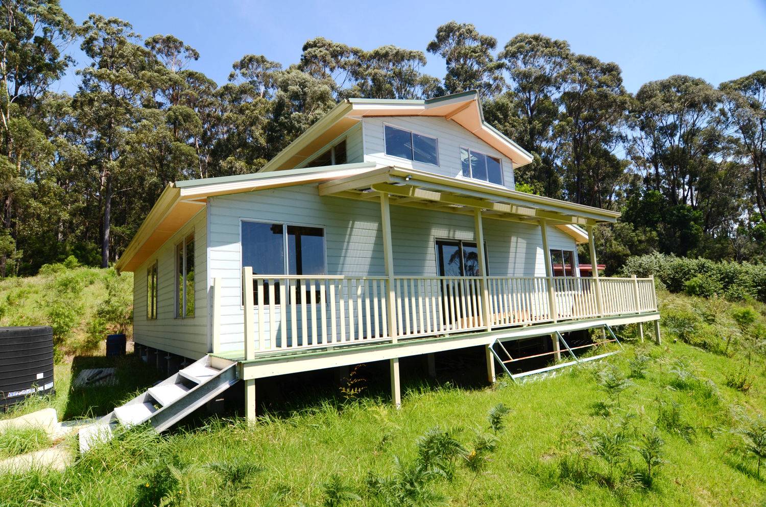 The spacious design features an open living and kitchen area, good sized bathroom and 2nd bedroom and a wide staircase to the big upstairs master bedroom. A full length covered verandah lets you relax outdoors and enjoy the wonderful bush and valley outlook.