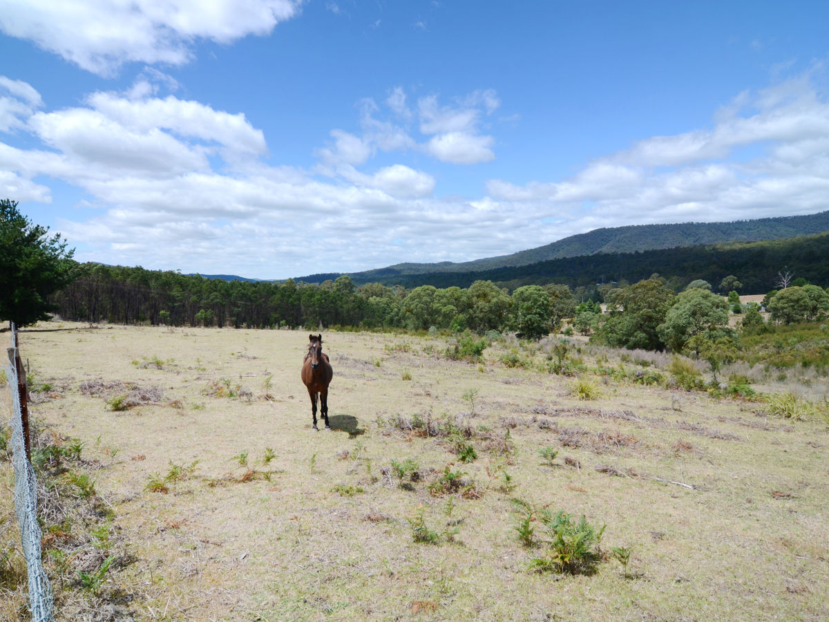 The land slopes down to a nice, mostly cleared lower paddock with small dam and shade trees. The outside perimeter is fenced and access to the property is possible along the full length of two sides. Perfect for running a few sheep or a home for your beloved horse.