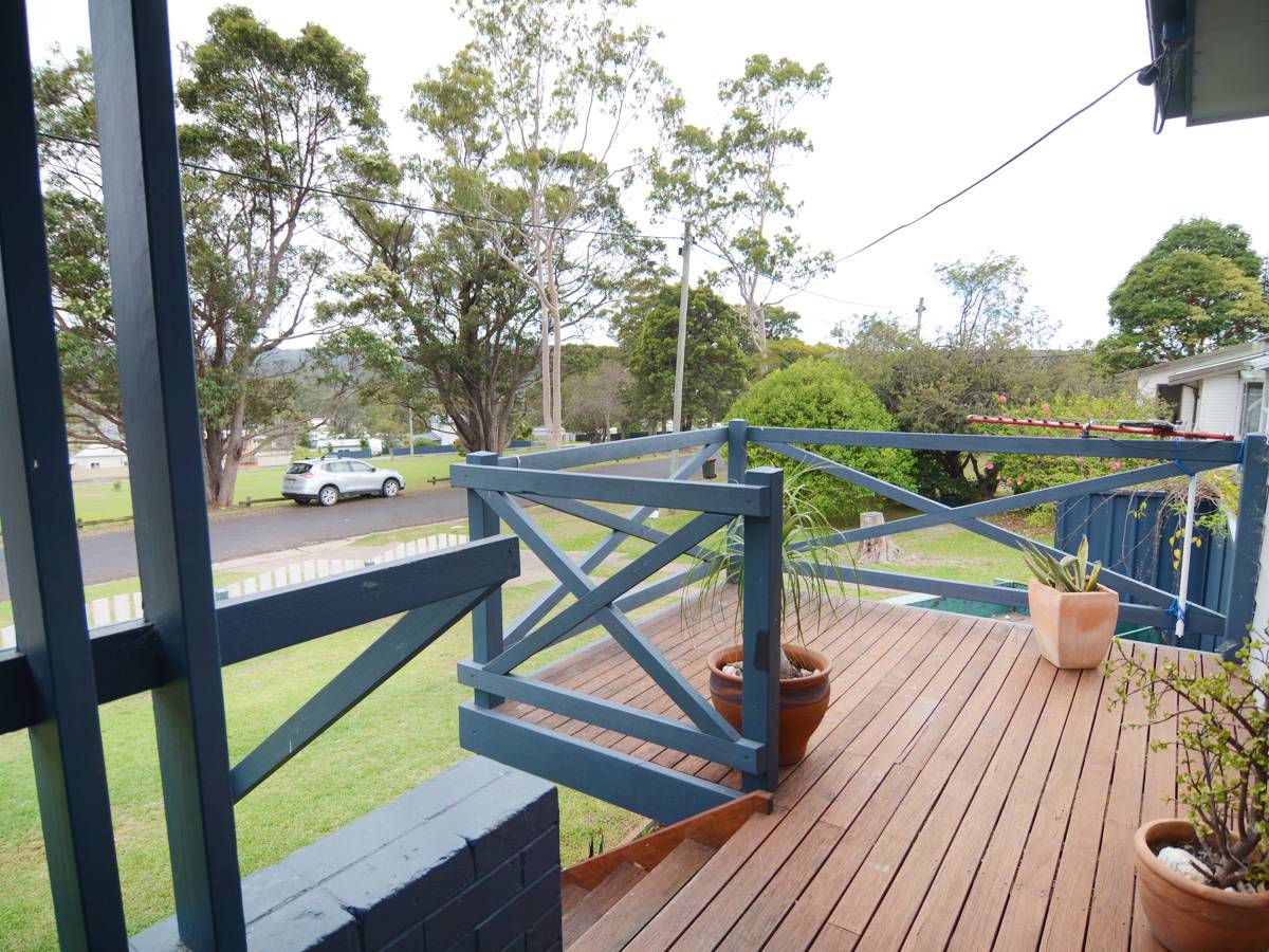 Set in an elevated position only a short distance to the Eden CBD (600m) and beach (900m), this 3 bedroom two storey home with some ocean and lake views is a great way to get into the market.  Situated directly opposite a public park, the first floor comprises a combined kitchen, living and dining space adjoining a sunny deck area, large bathroom, two bedrooms and separate laundry. The main bedroom upstairs is a large parents retreat that includes a balcony with water views.
