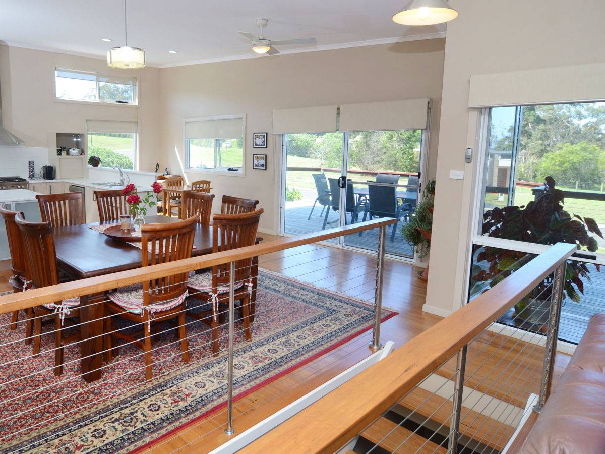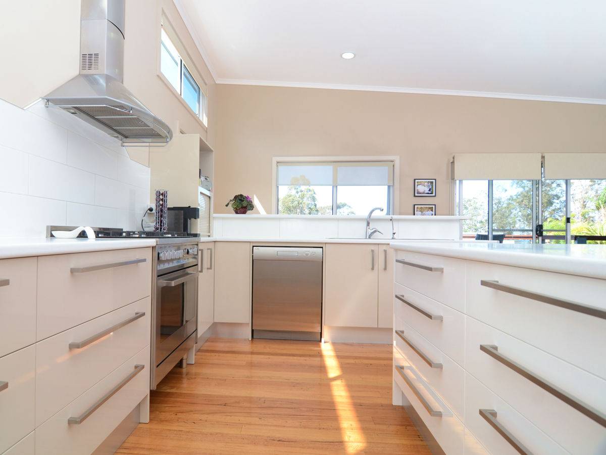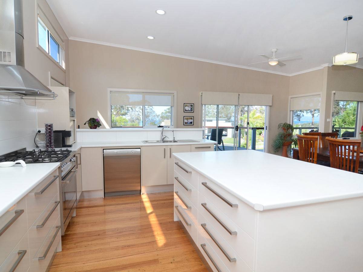 Upstairs comprises a superb entertainment space with combined lounge, dining and kitchen that would suit any budding chef with a 5 burner gas cooktop, large island bench, loads of storage and walk in pantry. This area adjoins the wide wrap around balcony with ocean and lake views to sit and take it all in. The master bedroom has custom made cabinetry, a walk in robe, ensuite, direct access to the balcony plus there is a guest powder room on the same level.
