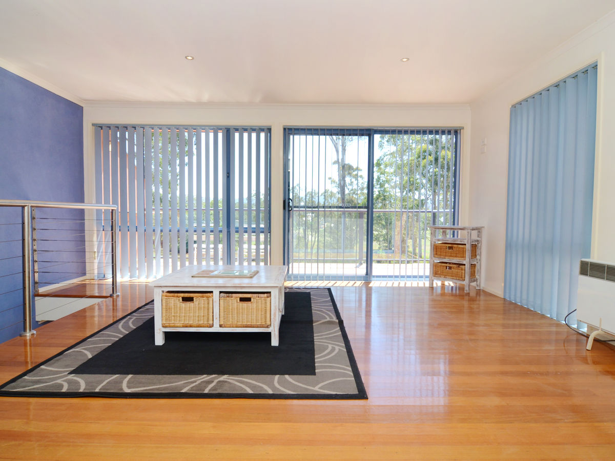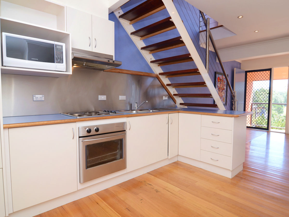 It features a timber floored living/dining space, kitchen, 2 bedrooms and main bathroom on the ground floor level. The upper level has a large air conditioned living room with sunny verandah plus a spacious master bedroom with walk-in-robe and ensuite.