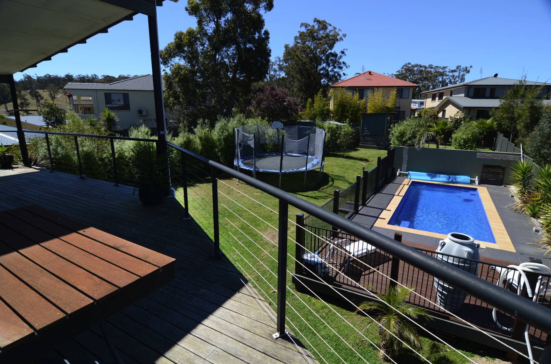 Super spacious, quality built home with an open plan design giving everyone in the family the space and comfort they need.  The living area of this impressive home has raked ceilings and hardwood ash floors throughout with a designer kitchen and large island bench that looks out to a large under roof deck making this home the great entertainer. The 4 bedrooms are generous in size, an ensuite and walk in robe to the master and the other 3 with built-in robes. Two more modern bathrooms, one upstairs and one in the downstairs rumpus room area with a 4th bedroom, perfect for a teenager or guest room. The rumpus room can easily host a pool table and opens to a BBQ deck that services the amazing saltwater in-ground pool and fully enclosed backyard. Loads of parking plus a double garage and single lockable carport for the boat, a 4.5kw solar system to reduce your bills to round out this wonderful package. Set on a level 1109m2 block with underground services, school bus pickup out front and just a stones throw from the magic of Aslings Beach (500m). Perfect for summer days with friends and family.