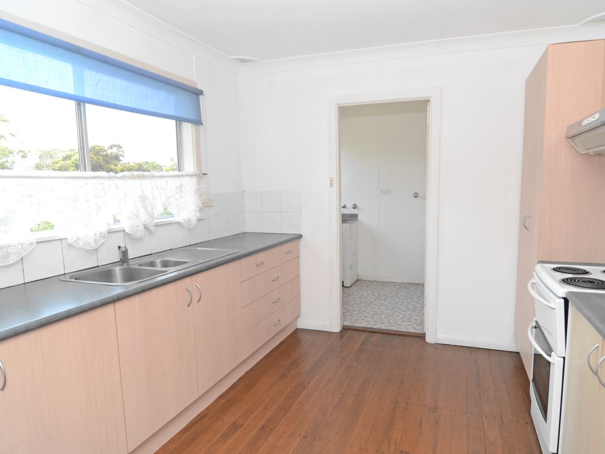 Offering a sunny Northerly aspect and views of Mt Imlay and Twofold bay to the West this house features a solid highset construction with brick foundations and hardwood floors throughout, separate living and dining rooms, updated kitchen with electric appliances, bathroom with shower and bathtub, separate toilet, good storage and a built-in robe to the spacious main bedroom.