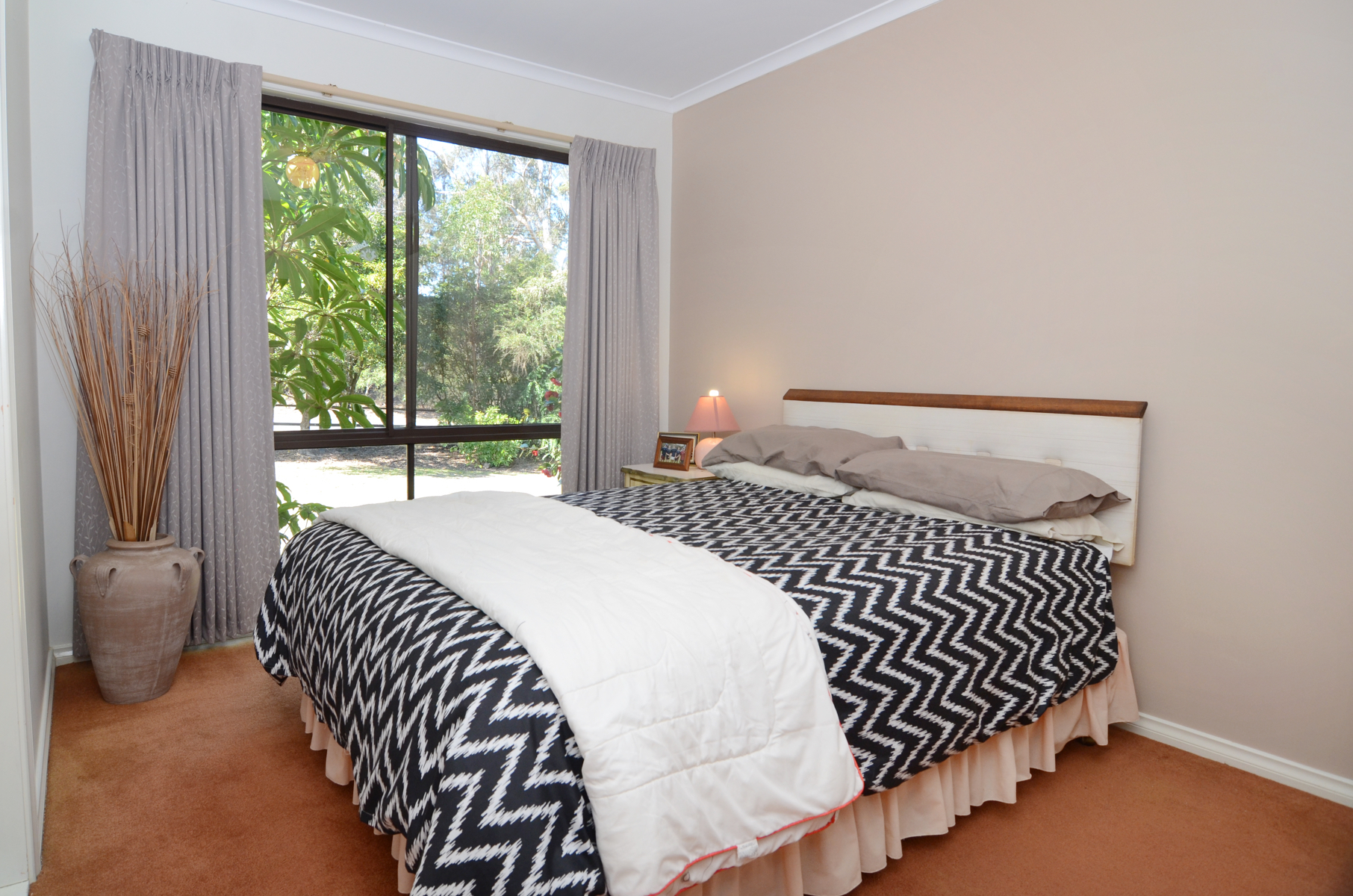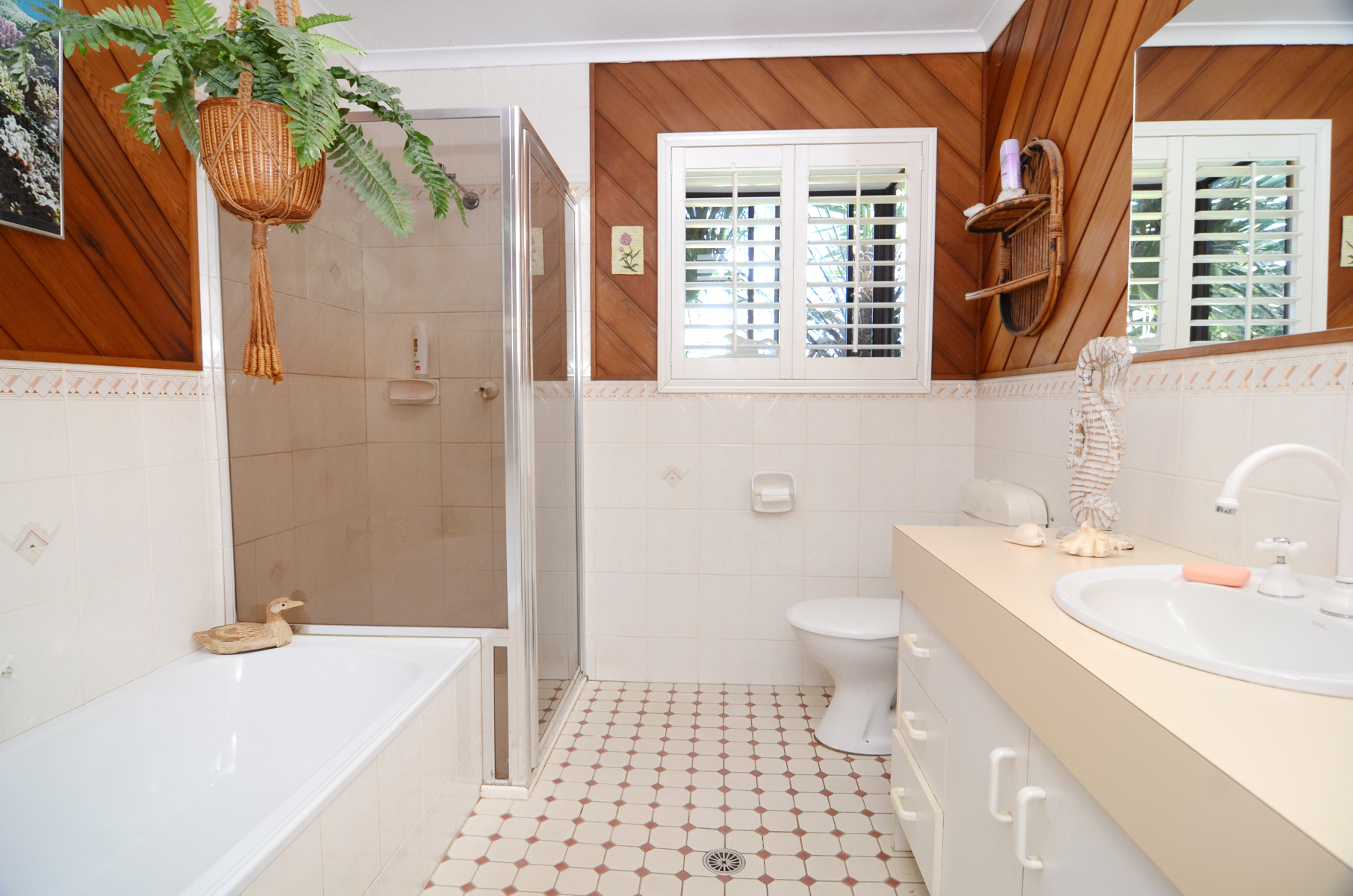Walk up the only 3 stairs inside the property to the three robed and generous sized bedrooms, all taking in the garden views.   A great sized bathroom with toilet plus a separate second toilet and plenty of cupboards and storage are also at the ready.