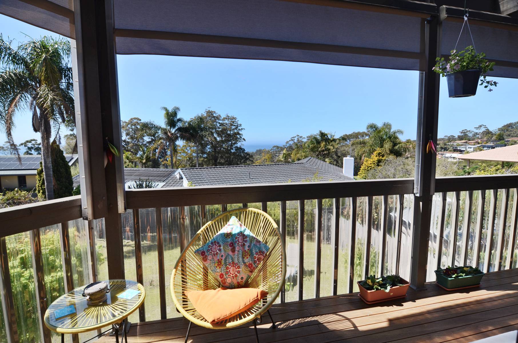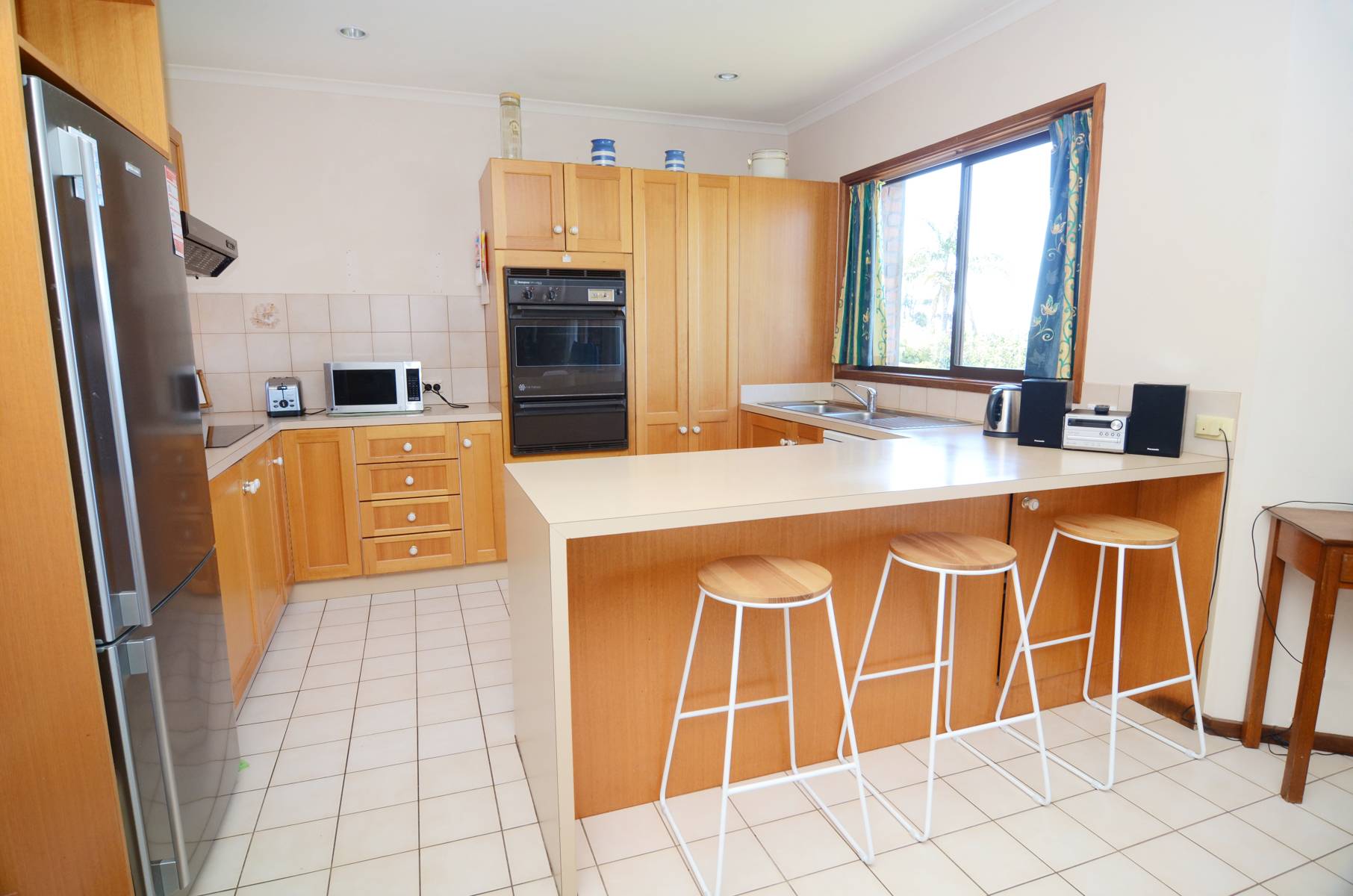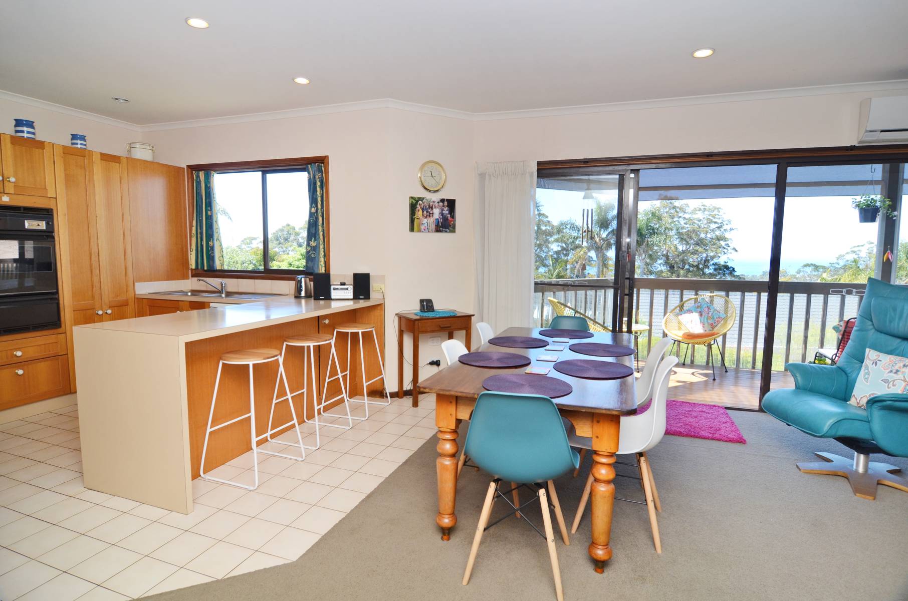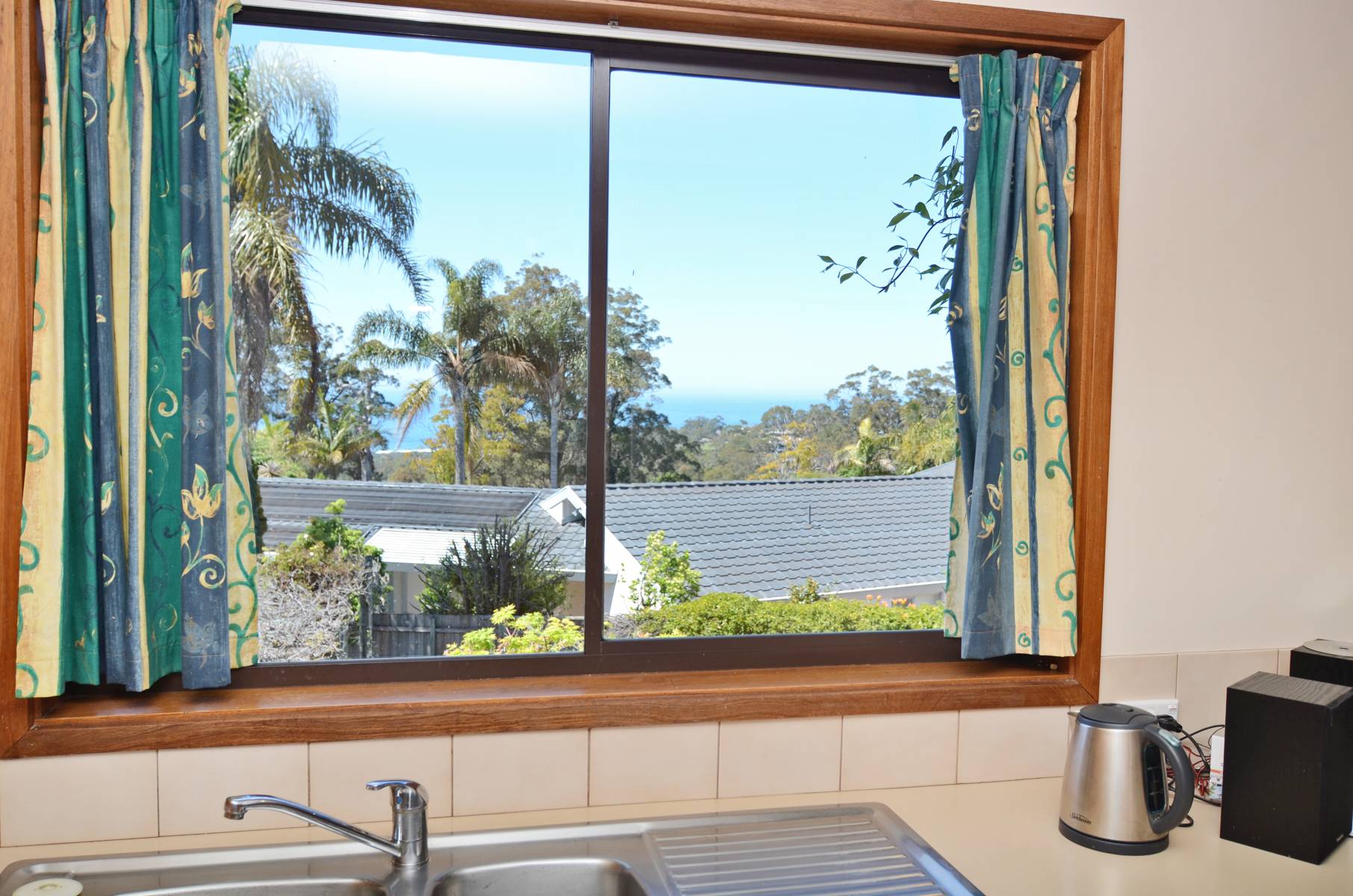 A split level design includes the top level with a large kitchen/living/dining that adjoins the roofed timber deck with stunning ocean views and roll down blinds. The front door is a level entry at the mid floor with a landscaped front yard. There is internal access through the lock up single garage. The master bedroom is also on this level with ensuite, generous walk in robe and a lovely outlook to the private front courtyard.