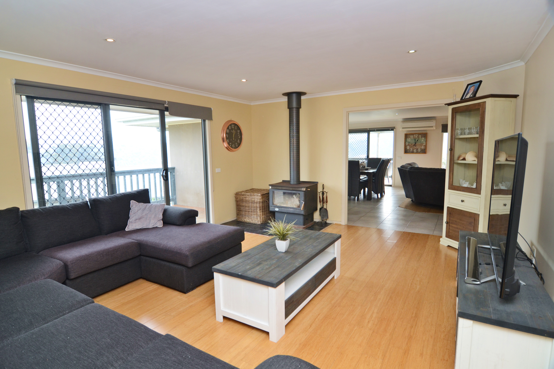 This spacious and modern family home is both bright and inviting. The main living and dining area is open plan with a brilliant kitchen at one end and access to a covered BBQ deck. The kitchen has an understated elegance and features a large island bench, stainless steel gas stove and plenty of storage. A large connecting family room provides a versatile second living space. A wood heater and reverse cycle air conditioner make it easy to set the climate year round.