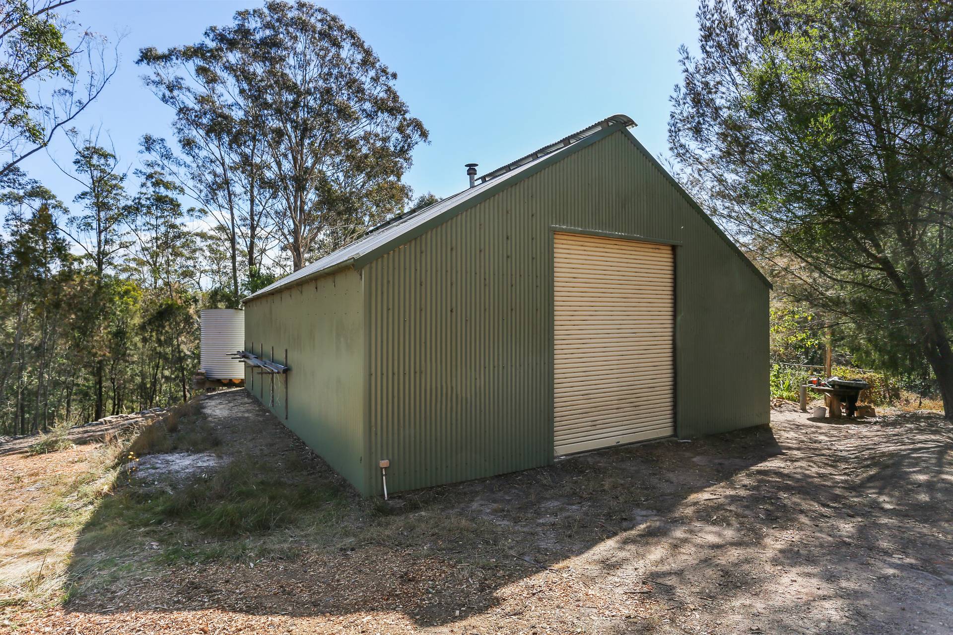 A 9m x 13m shed with mezzanine level situated on one of the building entitlements has a solar system, water tank, outdoor shower and carport while another large levelled site includes basic shedding.