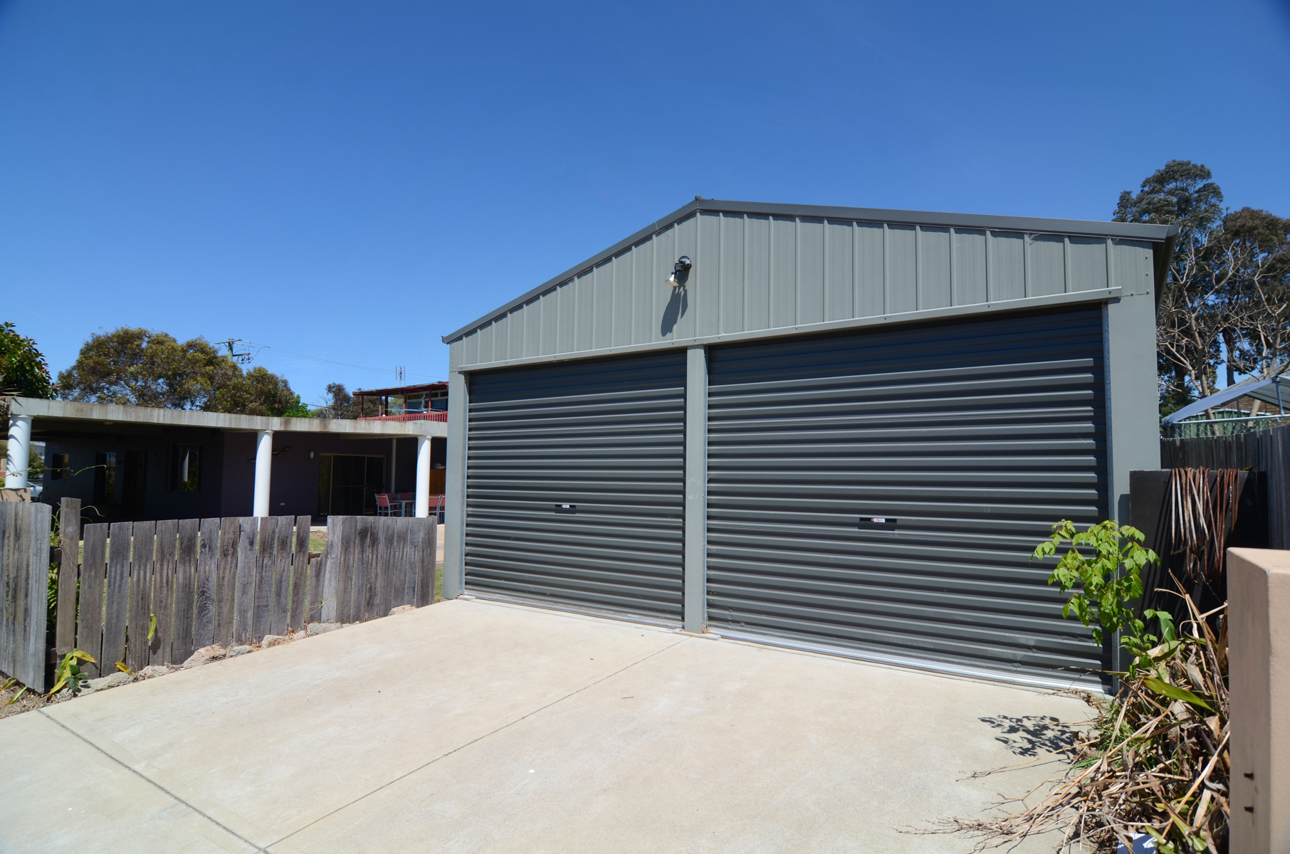 A level block of land with a 11m x 6m double lockup colorbond garage, fully fenced with great access and large covered parking area.