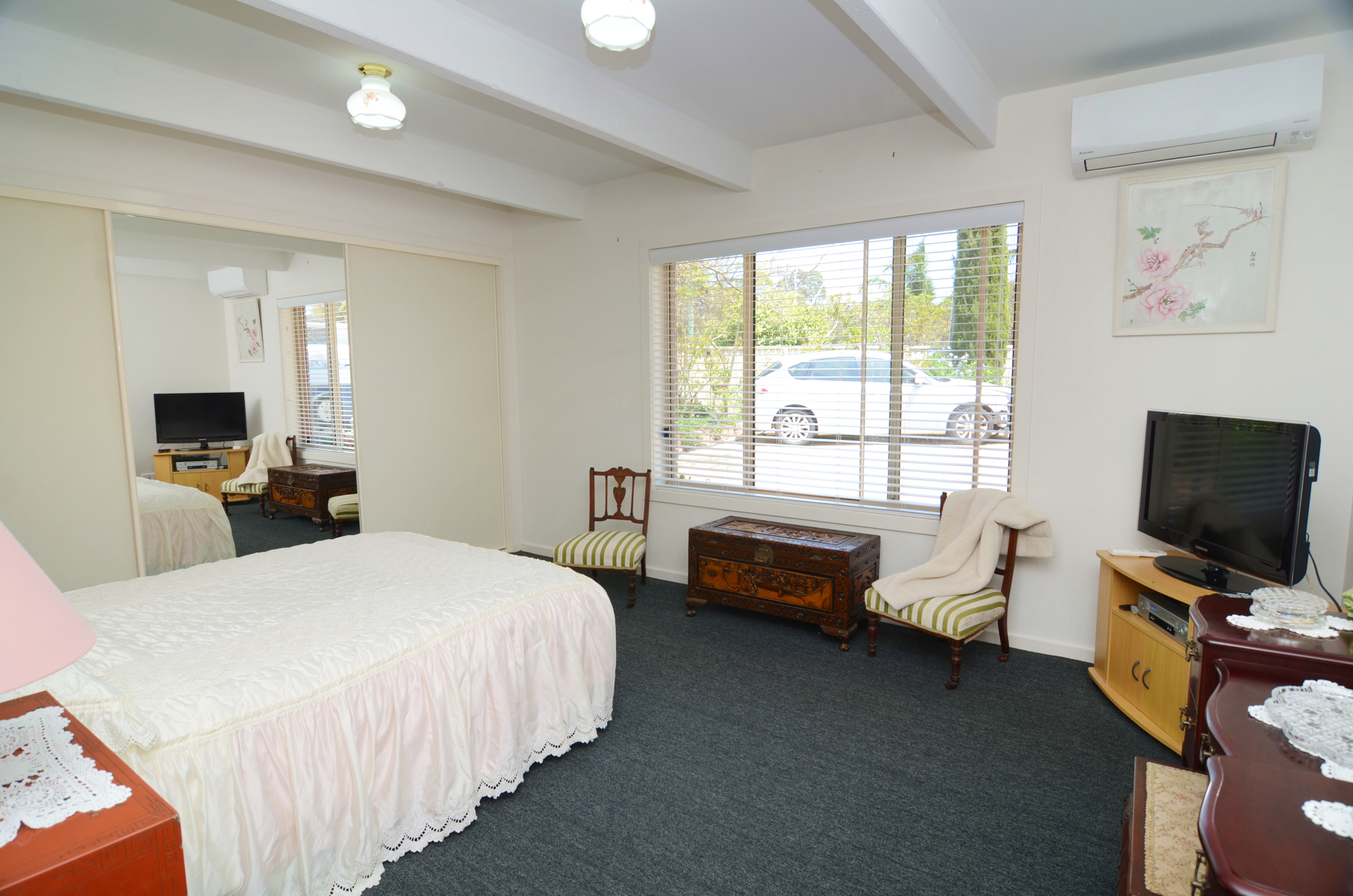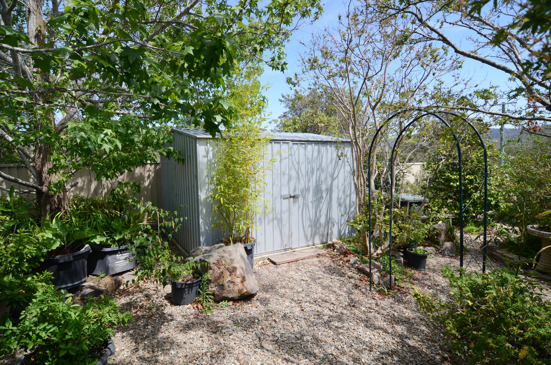 The front yard offers tonnes of concreted parking space. The backyard is tiered for easy access to the gardens with a variety of fruit trees, ponds and multiple water tanks - established well enough to keep it up or scope to really go to town!