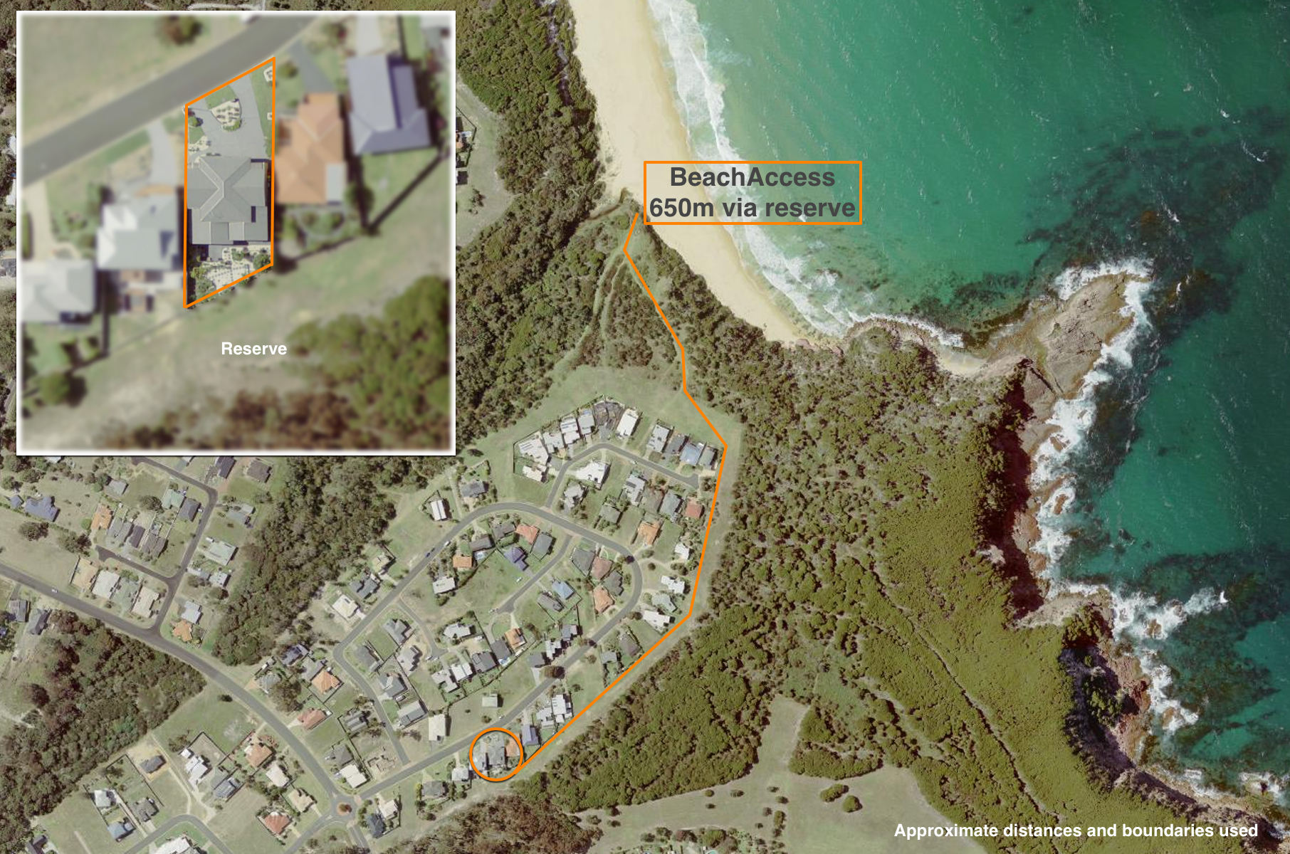 • Beach access via the nature reserve (approx 650m, or under 10 minutes, to the sand)