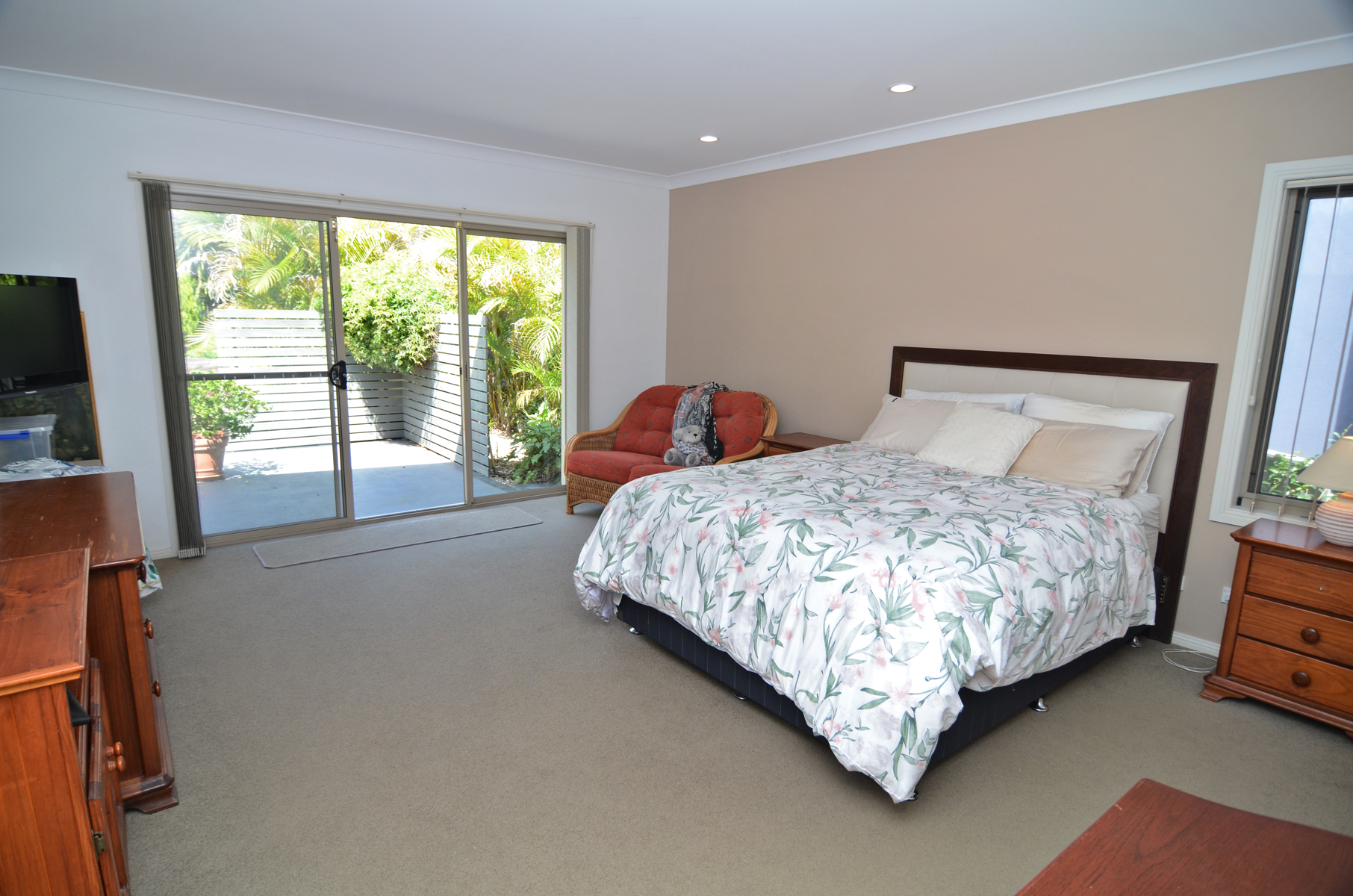 From the inviting entry foyer, several wide stairs take you to the mid floor where you find two robed bedrooms, the main bathroom and a large laundry, with storage, which accesses the landscaped rear yard.  The massive master bedroom (4.4m x 5m), also on this level, offers a walk-in robe, spacious ensuite and sliding door access to the yard.