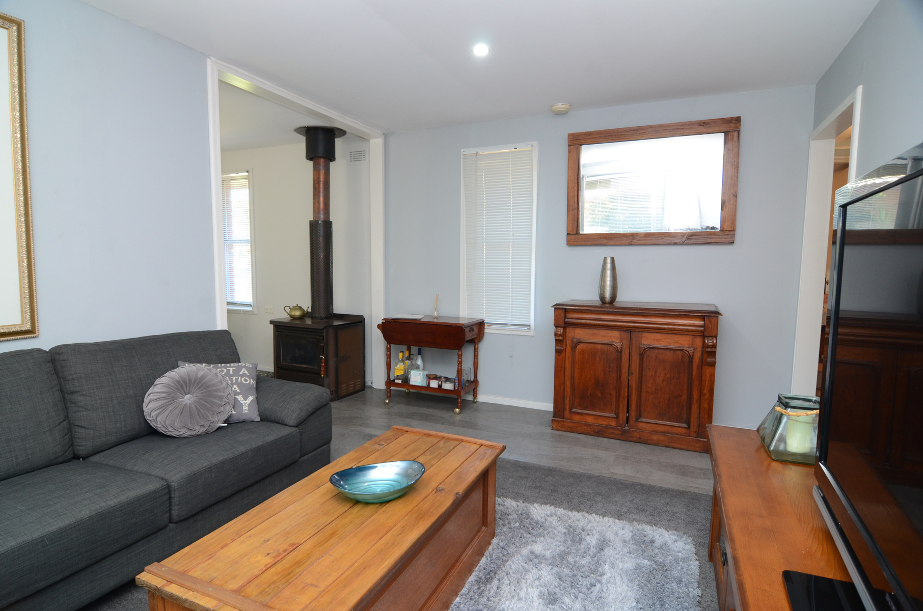 Tastefully renovated with the living, bathroom and kitchen areas all getting an upgrade including new lights, paintwork, blinds and tiled flooring. The modern kitchen features stainless appliances including a dishwasher.  A centralised wood heater warms the house in winter.  The master bedroom is generous in size and two bedrooms offer built-in robes.