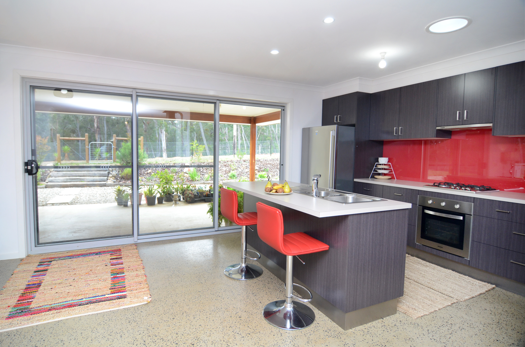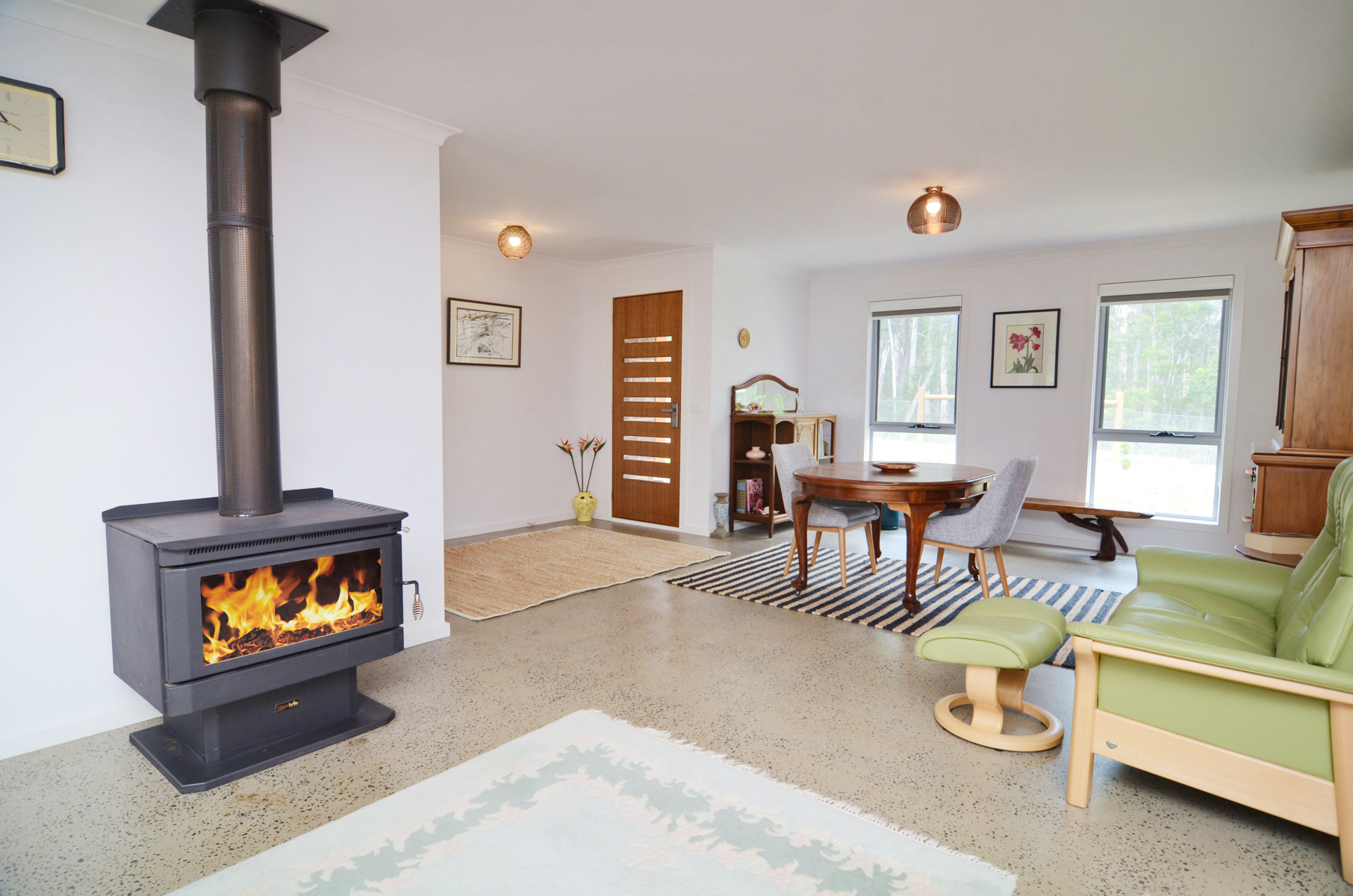 Stunning polished concrete is a beautiful feel under foot and a reverse cycle system and large wood fire ensure you are in control of your environment.