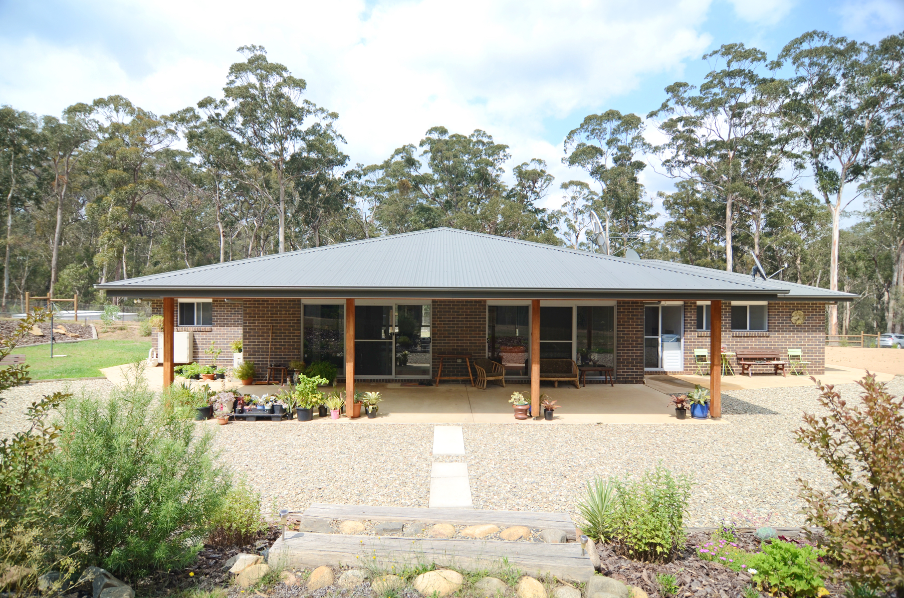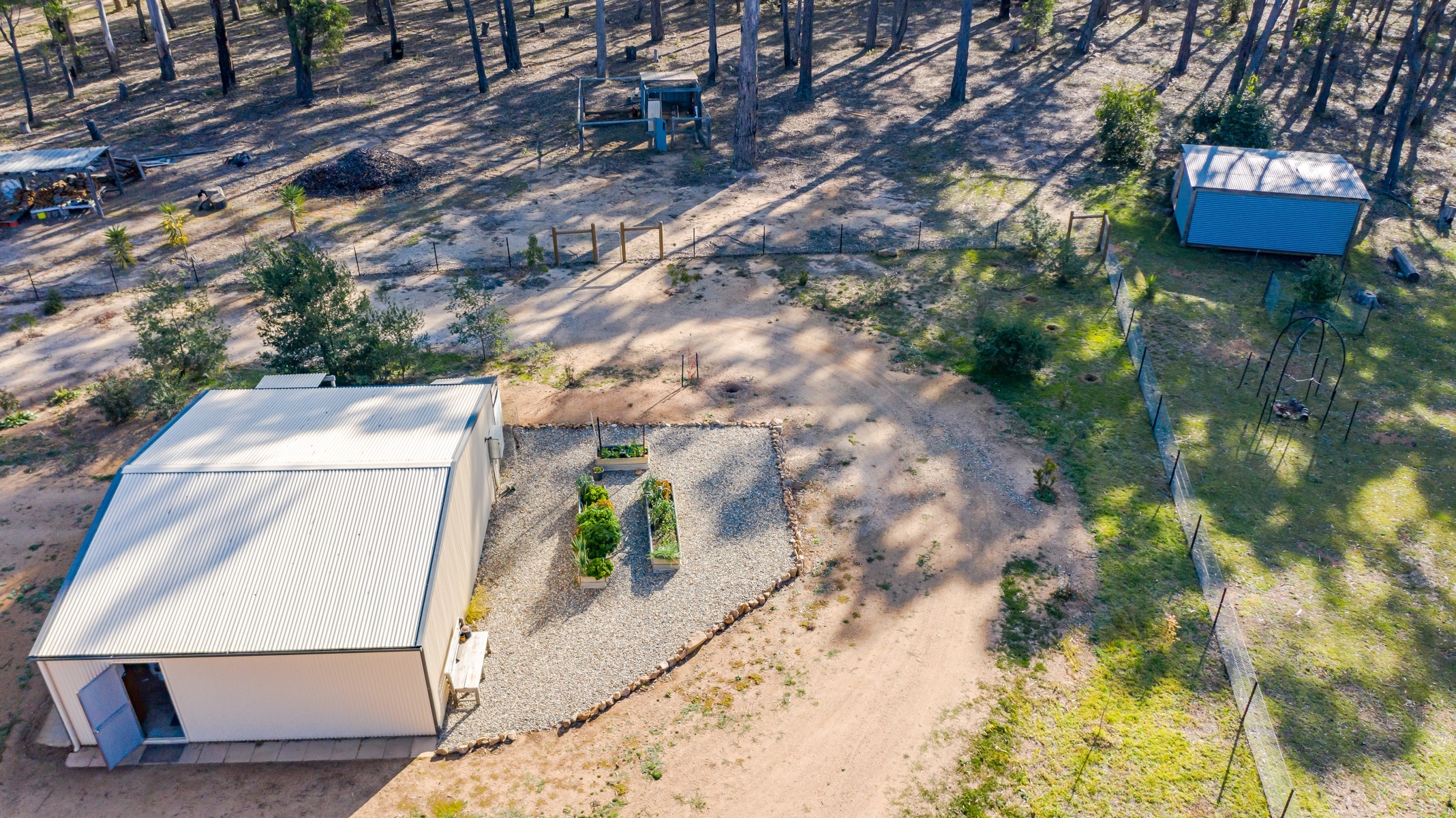 A 135,000 litre water tank and room for more if desired, a state of the art water purifier attached to the house, veggie gardens, chook shed, 9m x 7m (approx) triple garage with remote entry and a separate bungalow suitable for guests or a 4th bedroom.