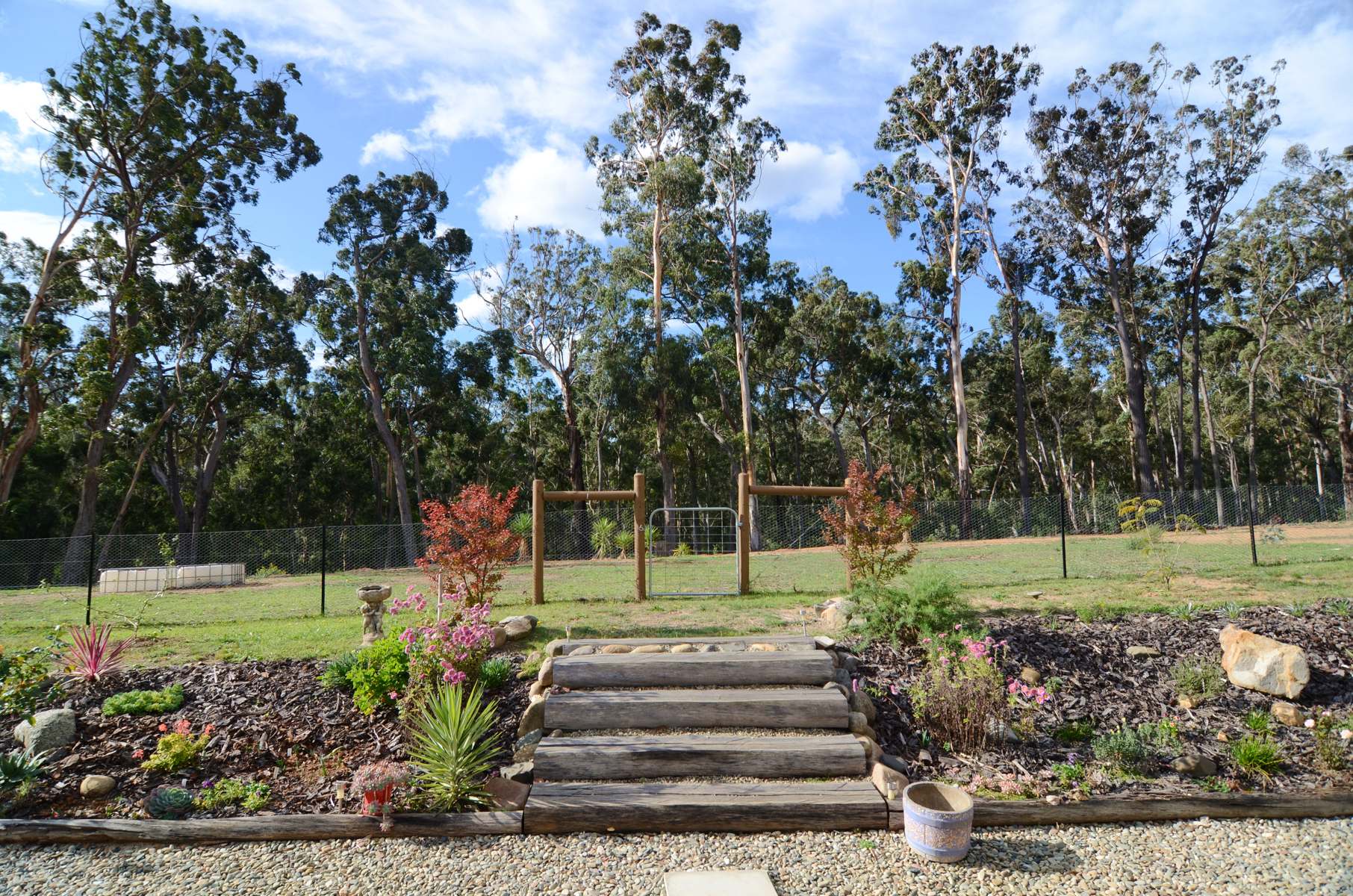 The property is not only fenced around the perimeter but also around the house with a yard fence that is perfect for keeping family pets where they should be. Within the yard is raised garden beds, stone work and paving that all help create a beautiful, low maintenance yard.