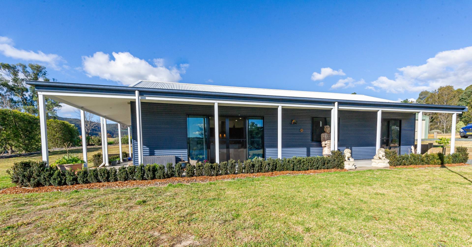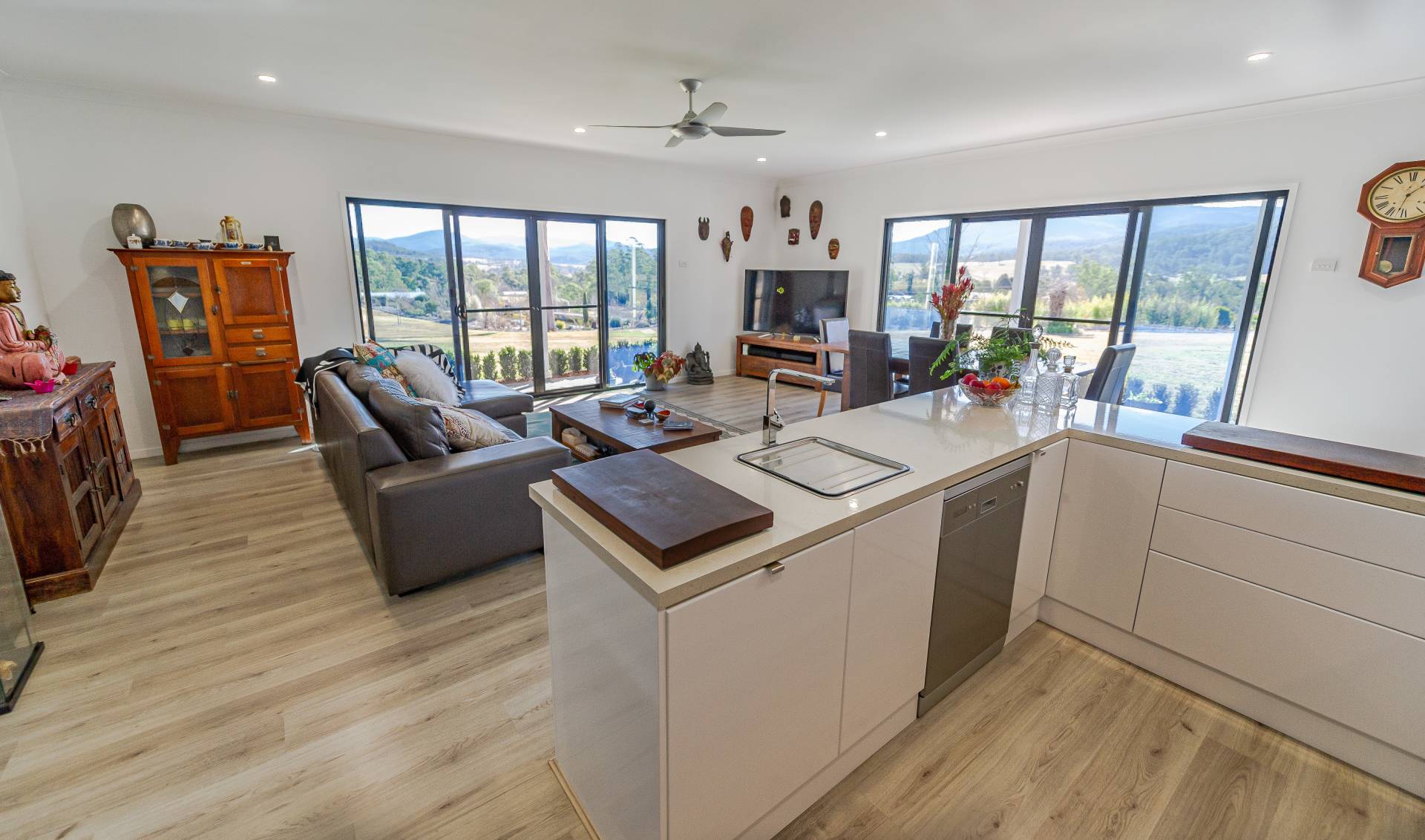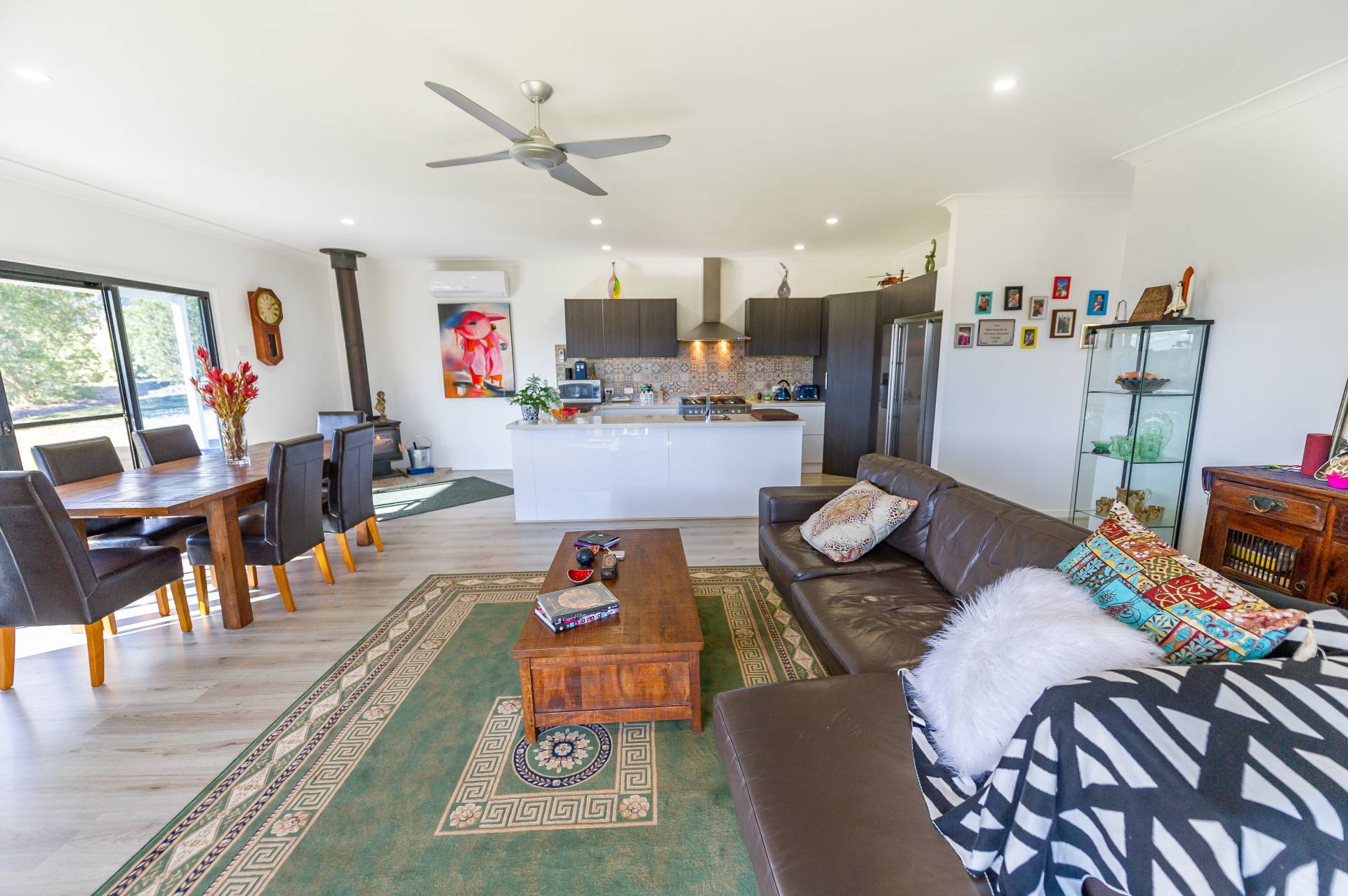 The new steel framed home has been designed for comfort in mind with a spacious open plan comprising the large well appointed kitchen with stainless appliances including a freestanding gas top oven, dishwasher and stone bench tops. A wood fire place, reverse cycle and fully insulated external and internal walls guarantees your control over warmth and sound within your home. A large and luxurious bathroom features a freestanding, deep bath, open shower and picture window to really appreciate your surroundings with a soak. A 104,000 litre water tank, a licensed bore and huge dam ensures you won't run dry. There is a 6m x 6m shed, green house, connection to the NBN and yet there is more!
