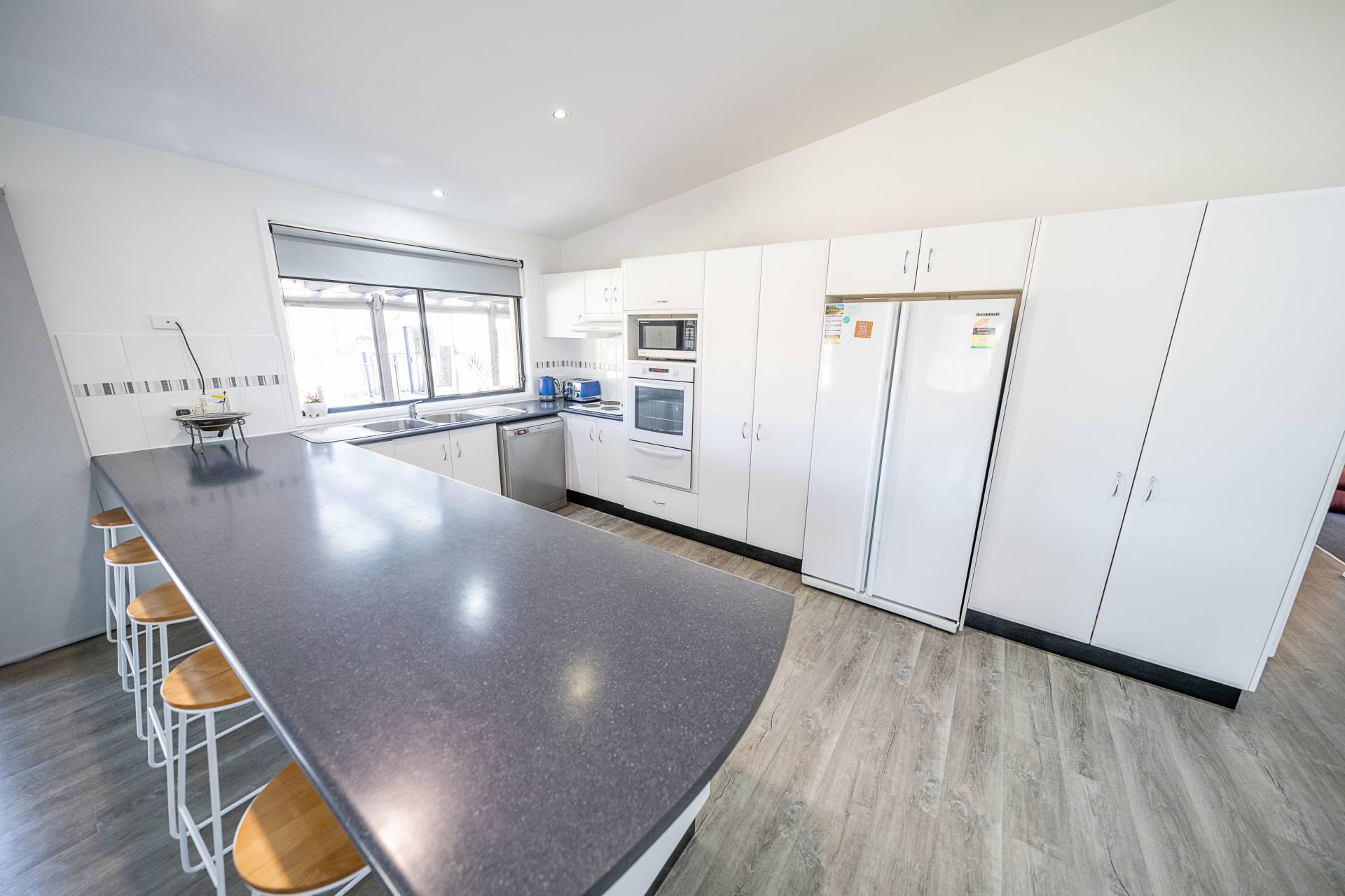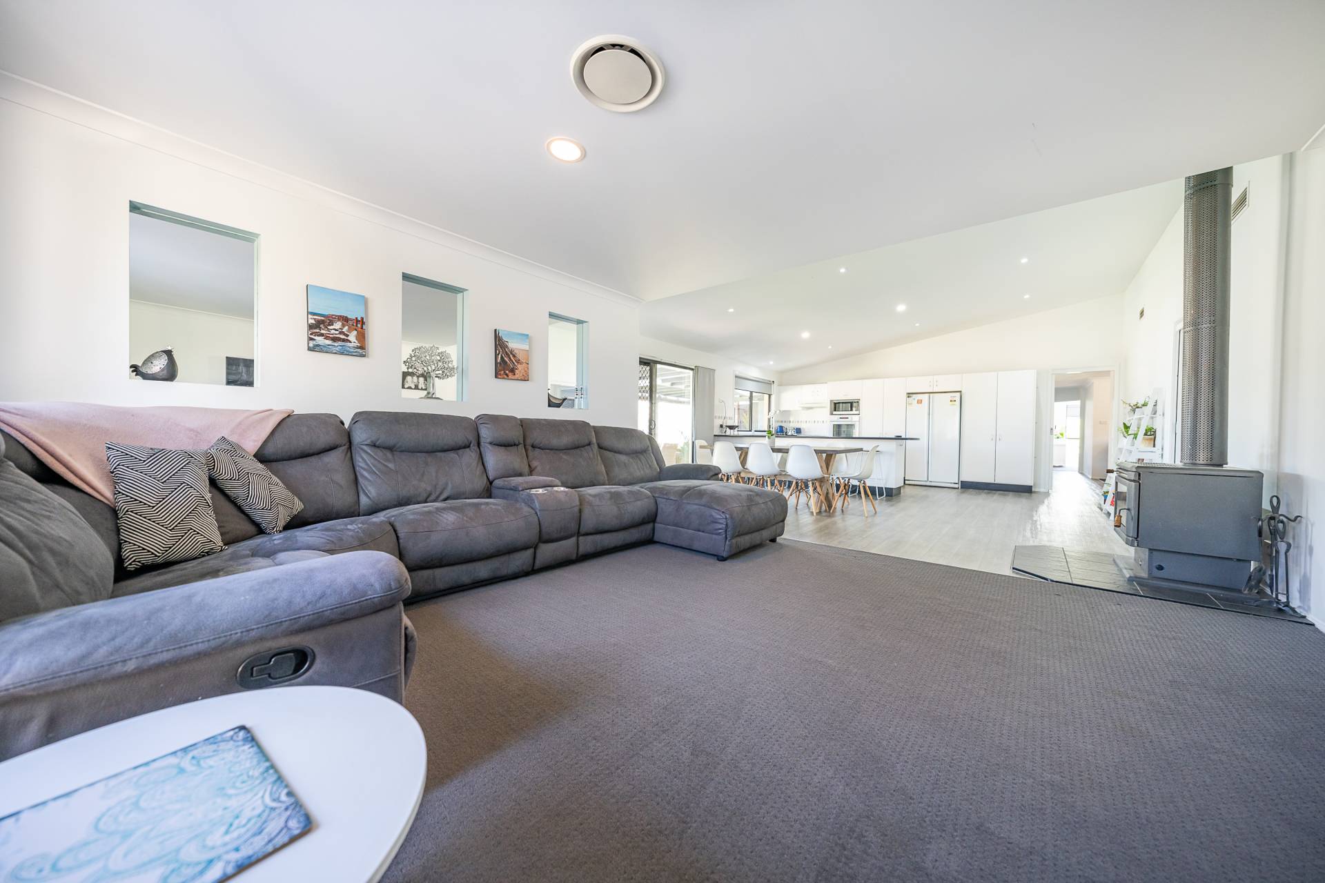 The spacious master bedroom includes a walk-in wardrobe and ensuite combination, every bedroom is generous in size with built-ins in all but one. The big well appointed kitchen is part of the open dining and living area with breakfast bar looking out to the huge alfresco and a wood fire to warm the whole house.