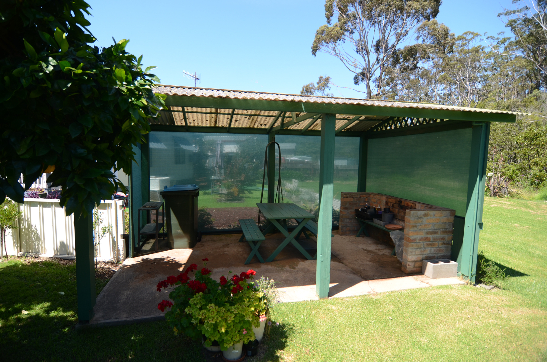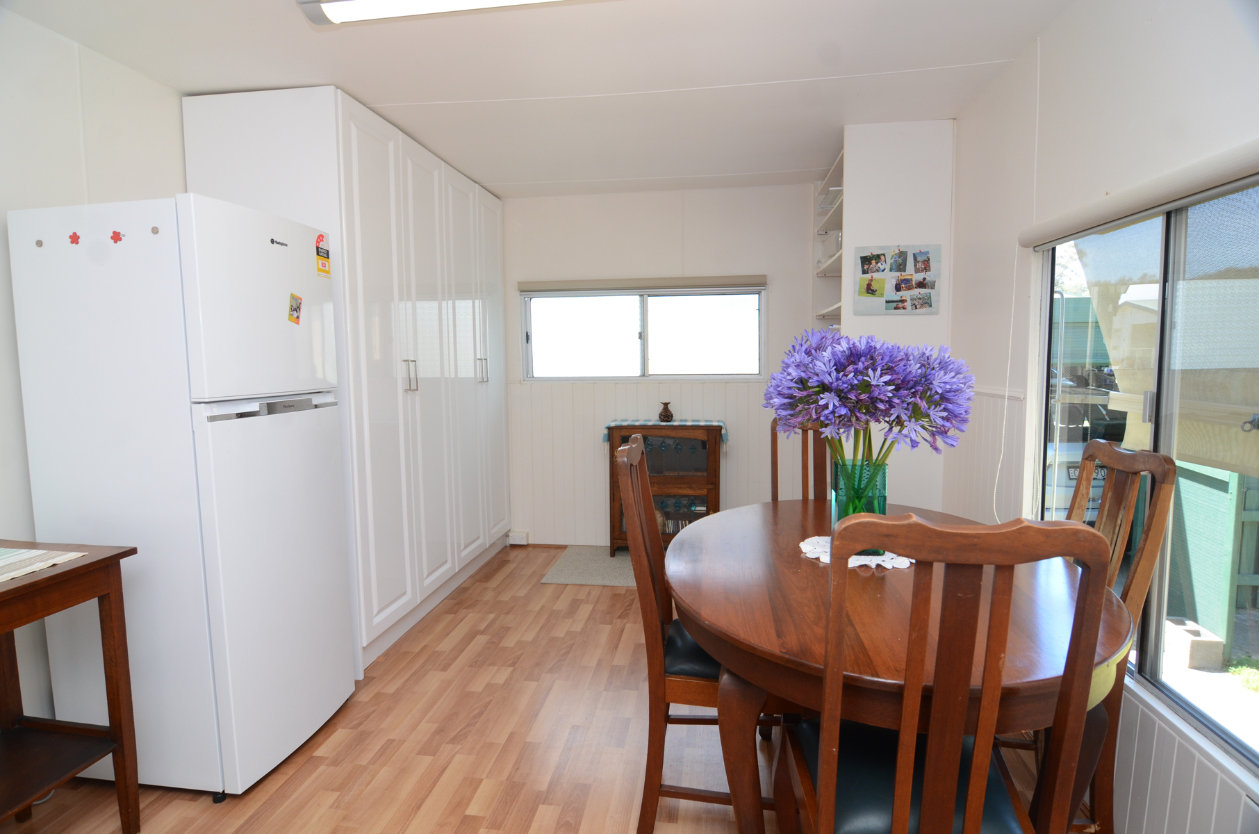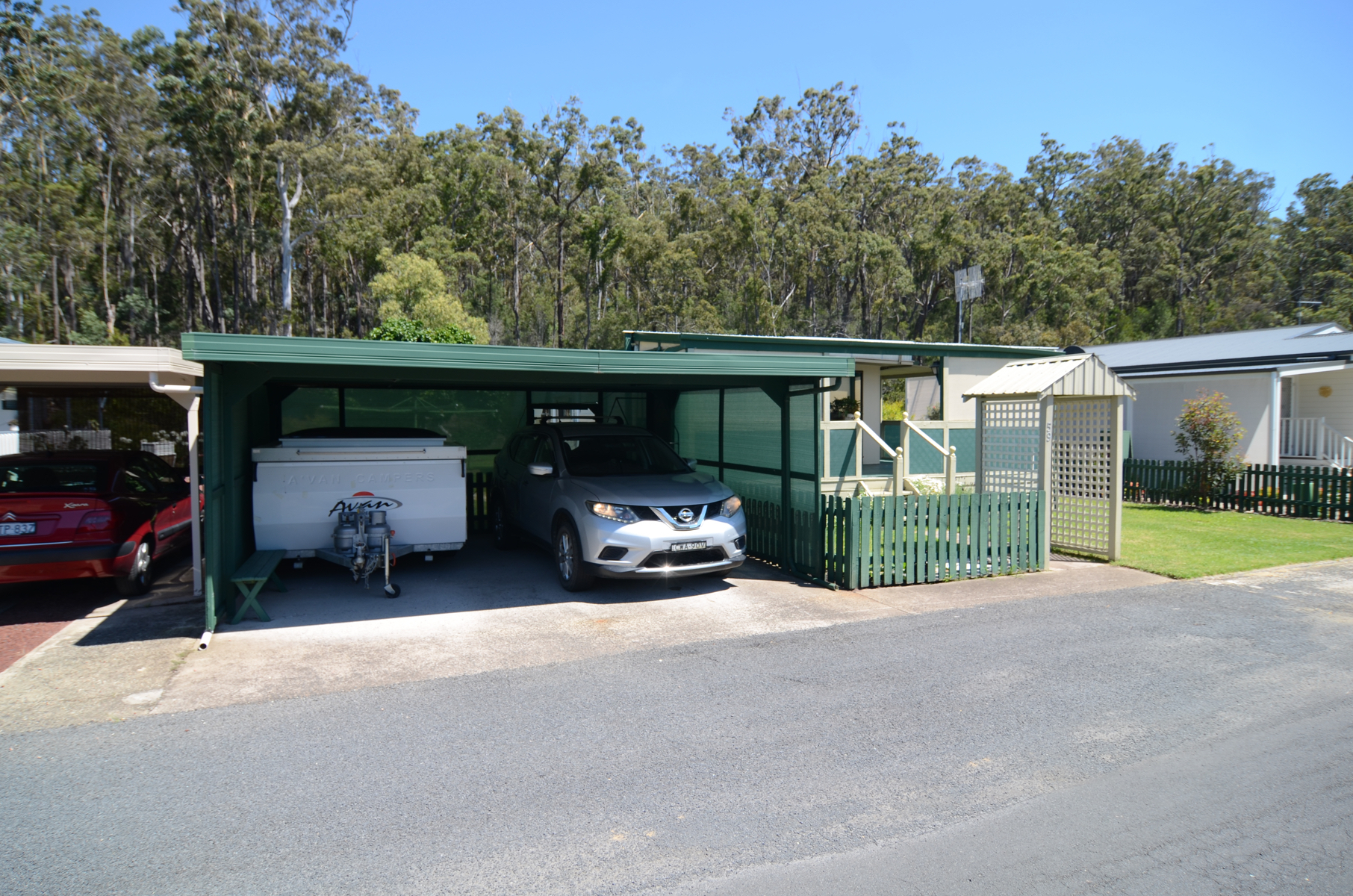 Villa 59 is set on one of the very few double blocks in the park.  Picture luscious green lawns, citrus trees, undercover BBQ area, two powered lock up sheds with the added benefit of backing on to a tidal river for extra tranquility and sense of space.