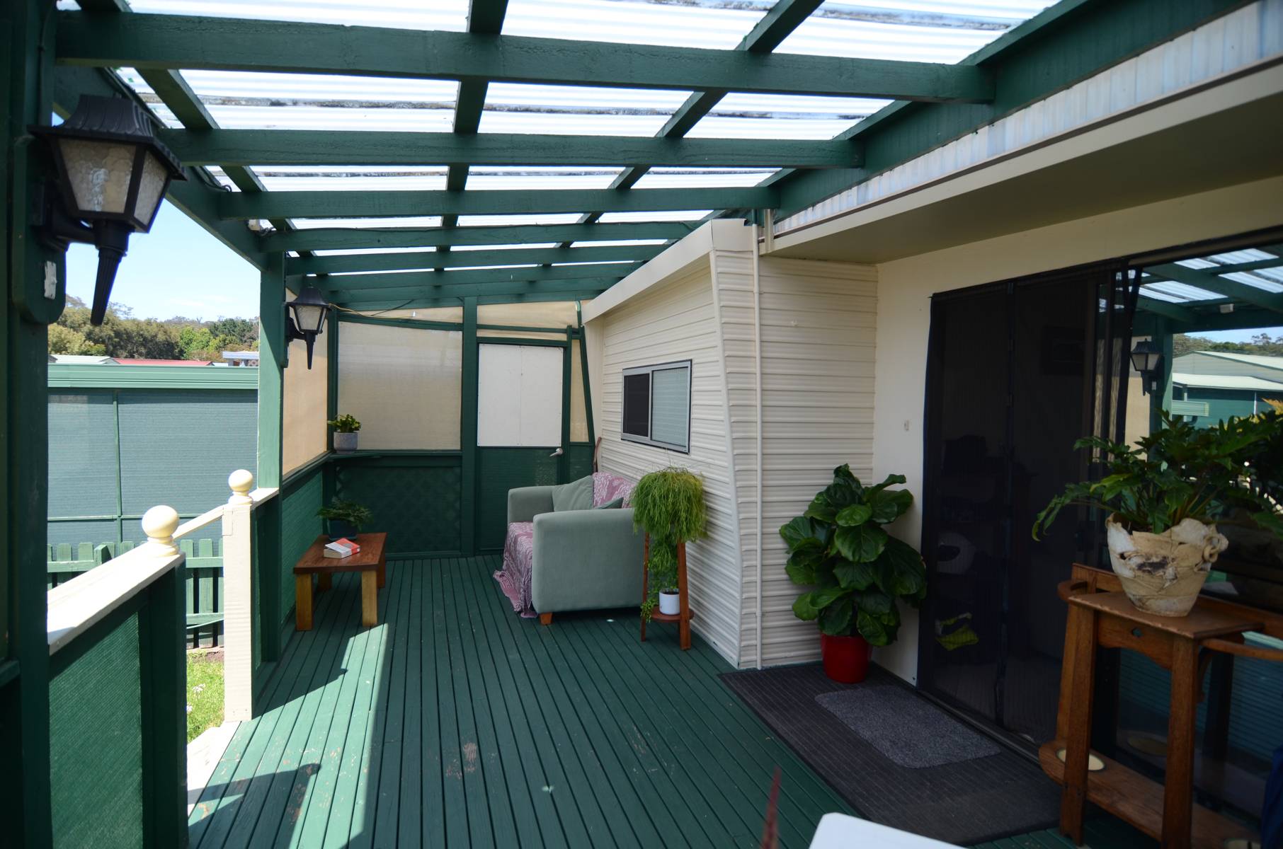 Villa 59 is set on one of the very few double blocks in the park.  Picture luscious green lawns, citrus trees, undercover BBQ area, two powered lock up sheds with the added benefit of backing on to a tidal river for extra tranquility and sense of space.