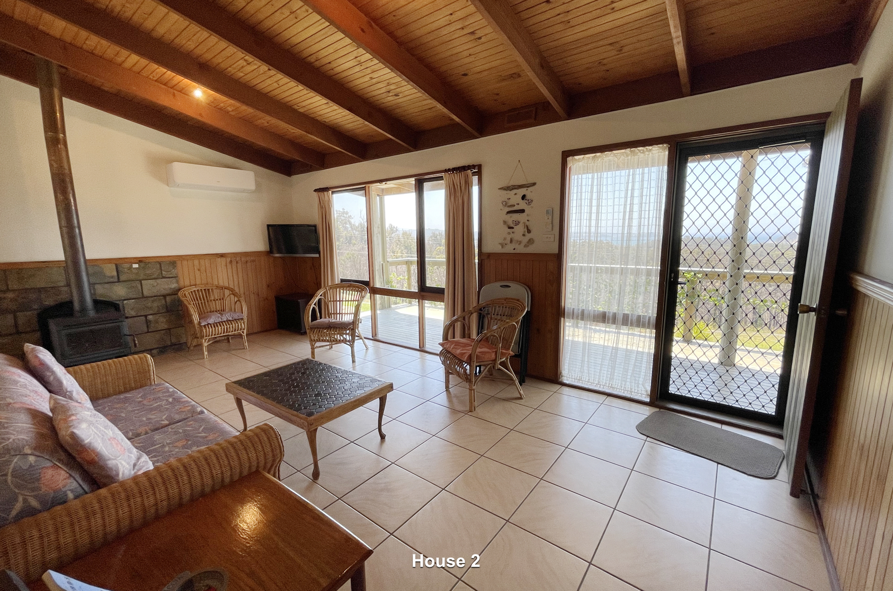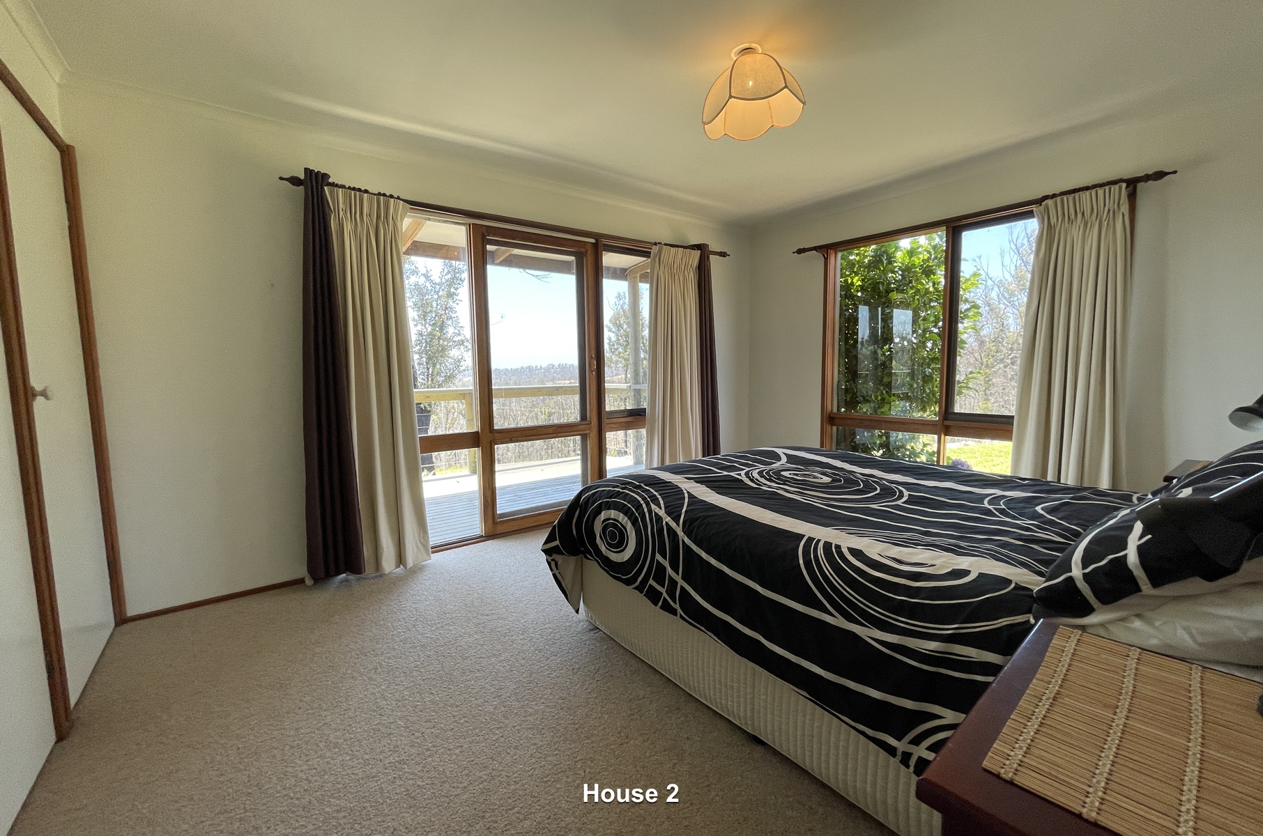 The second 3 bedroom home is charming and comfortable in design with good sized rooms, wood heater, reverse cycle air conditioner and a covered veranda out front with ocean views to take your breath away. Fully set-up for holiday rental, everything is included to make an immediate income if desired. Positioned to not impact on the main residence and retain privacy. Would also suit as a parents’ retreat or permanent home.
