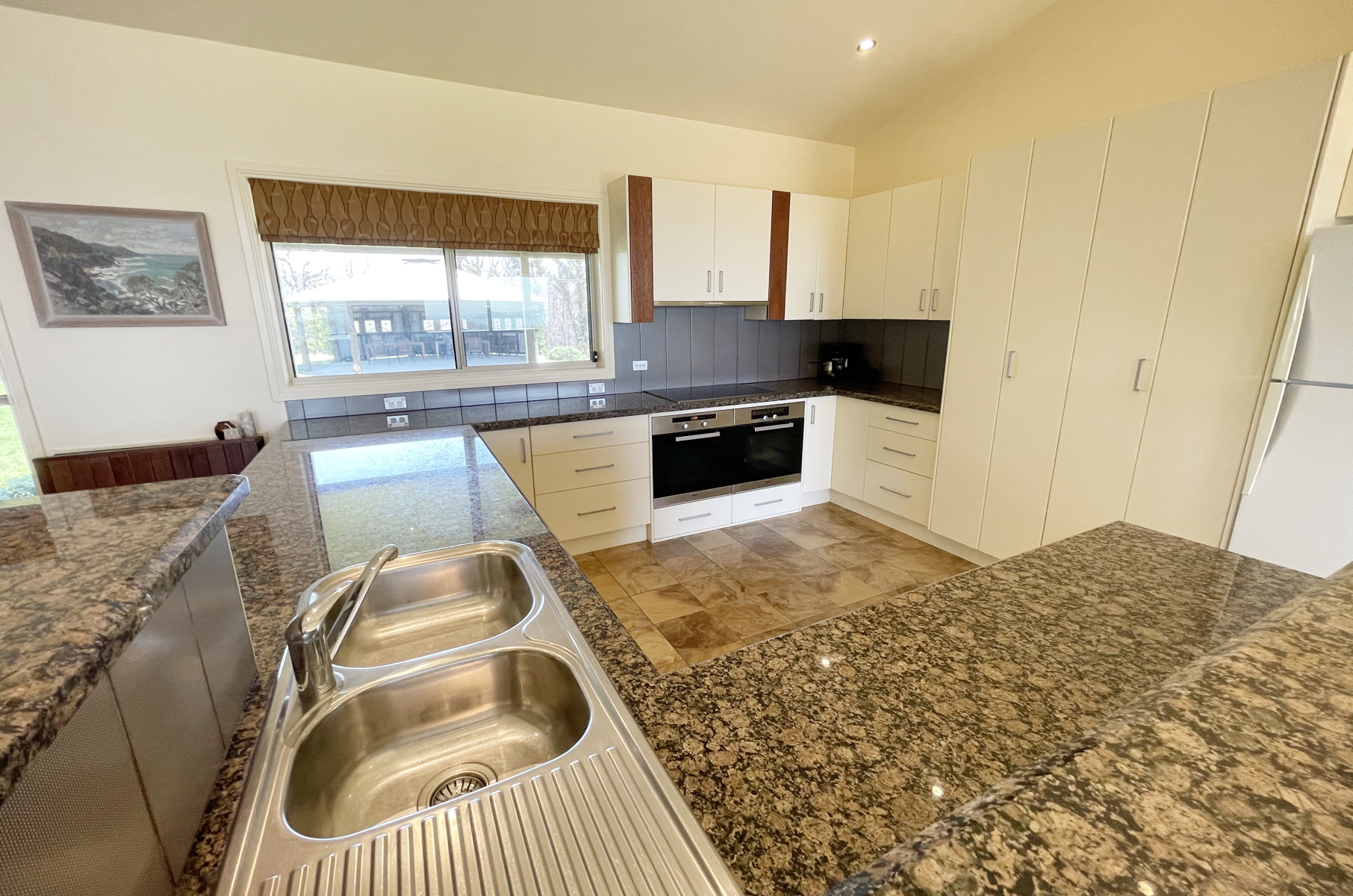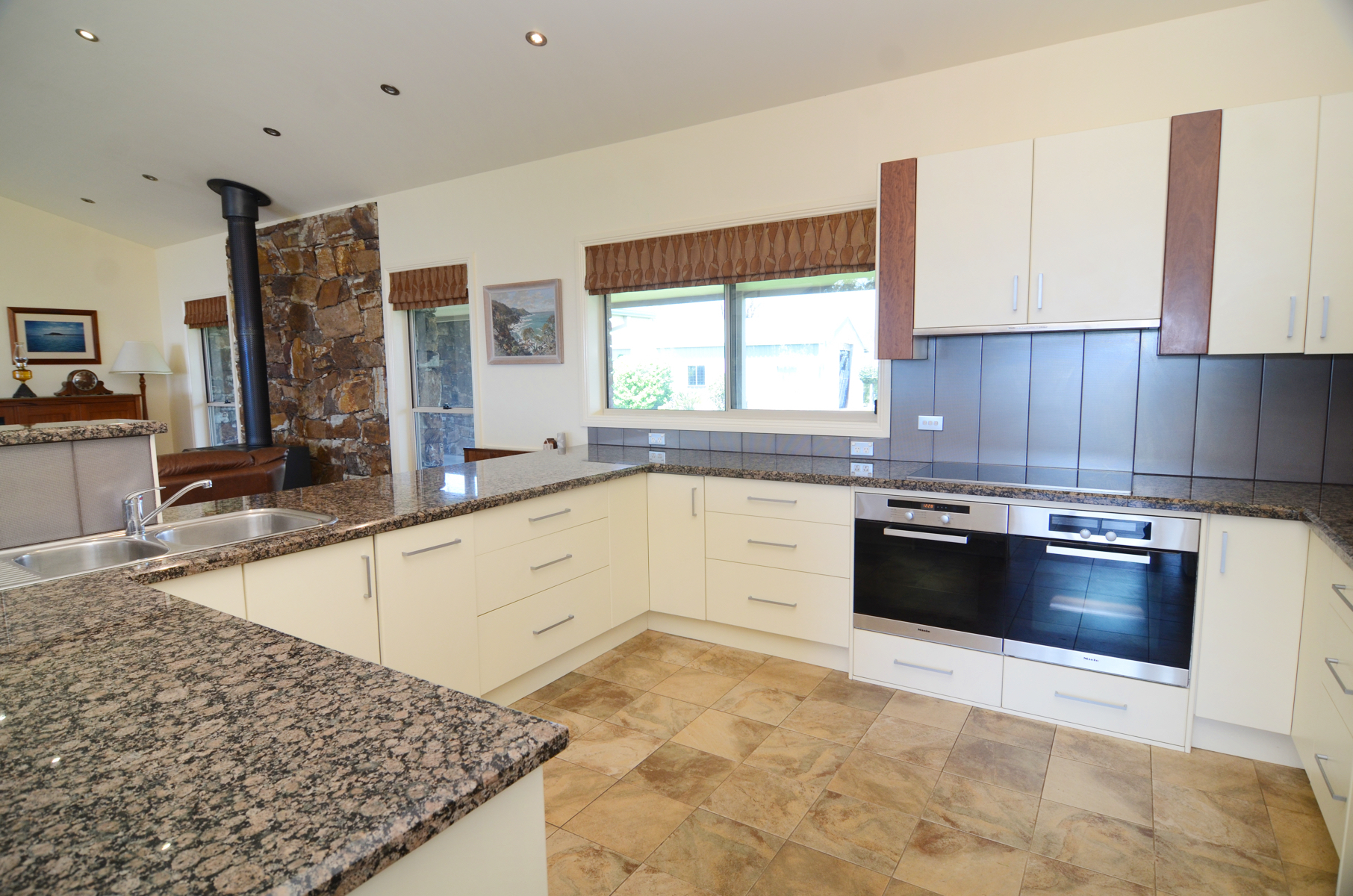 The main residence is carefully designed to maximize the beautiful views and thoughtfully built to accommodate the changing seasons. Generous front and back paved decks give a homestead feel capturing the warmth of the sun, ocean breezes and views all round with open plan living and high ceilings. The living area frames the ocean perfectly through “Comfort Plus” windows providing insulation plus two reverse cycle air conditioners and a large ducted wood heater ensure perfect temperatures all year round. The huge kitchen features granite bench tops and all-Miele appliances including twin ovens, range hood, 80cm induction cooktop and integrated dishwasher. The breakfast bar and ample storage will be a chef’s delight. The living, dining and kitchen areas flow through to an extra large family room, currently a pool room and office but could easily be converted to a 4th bedroom and still have a separate office.