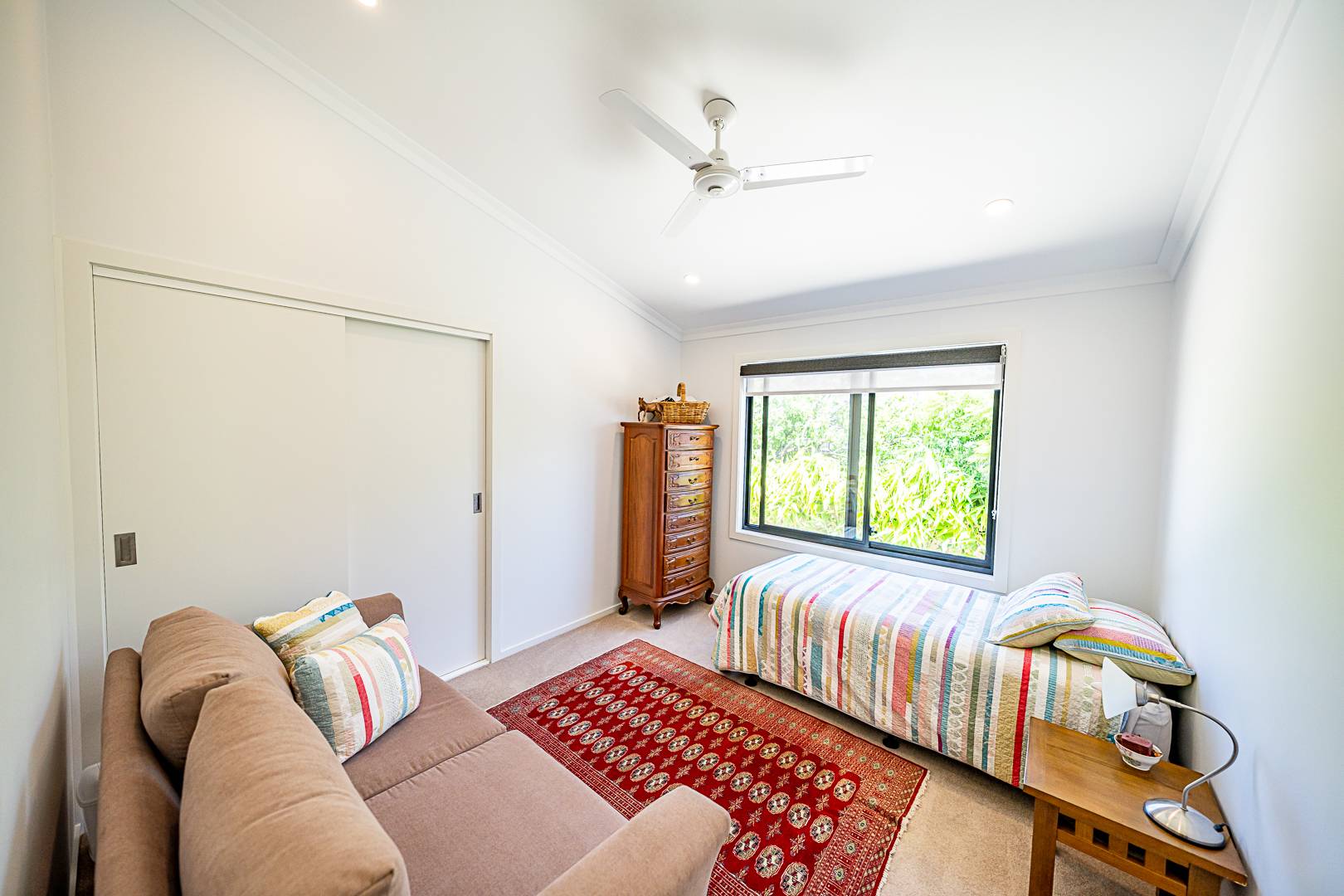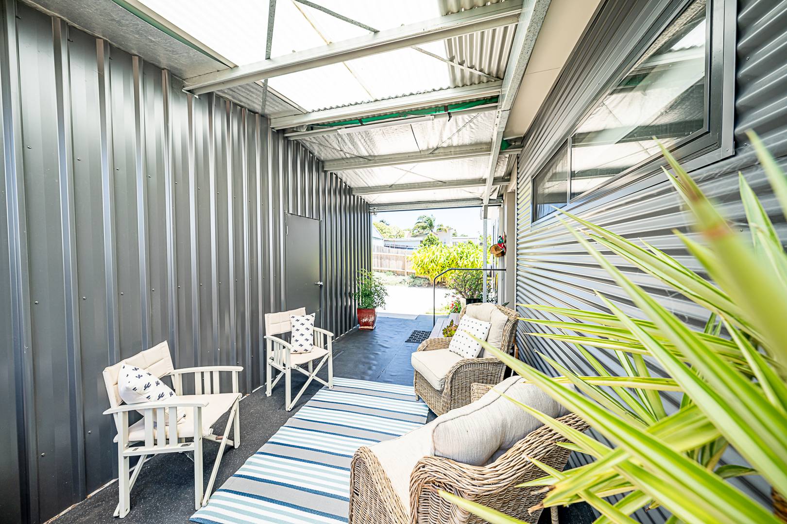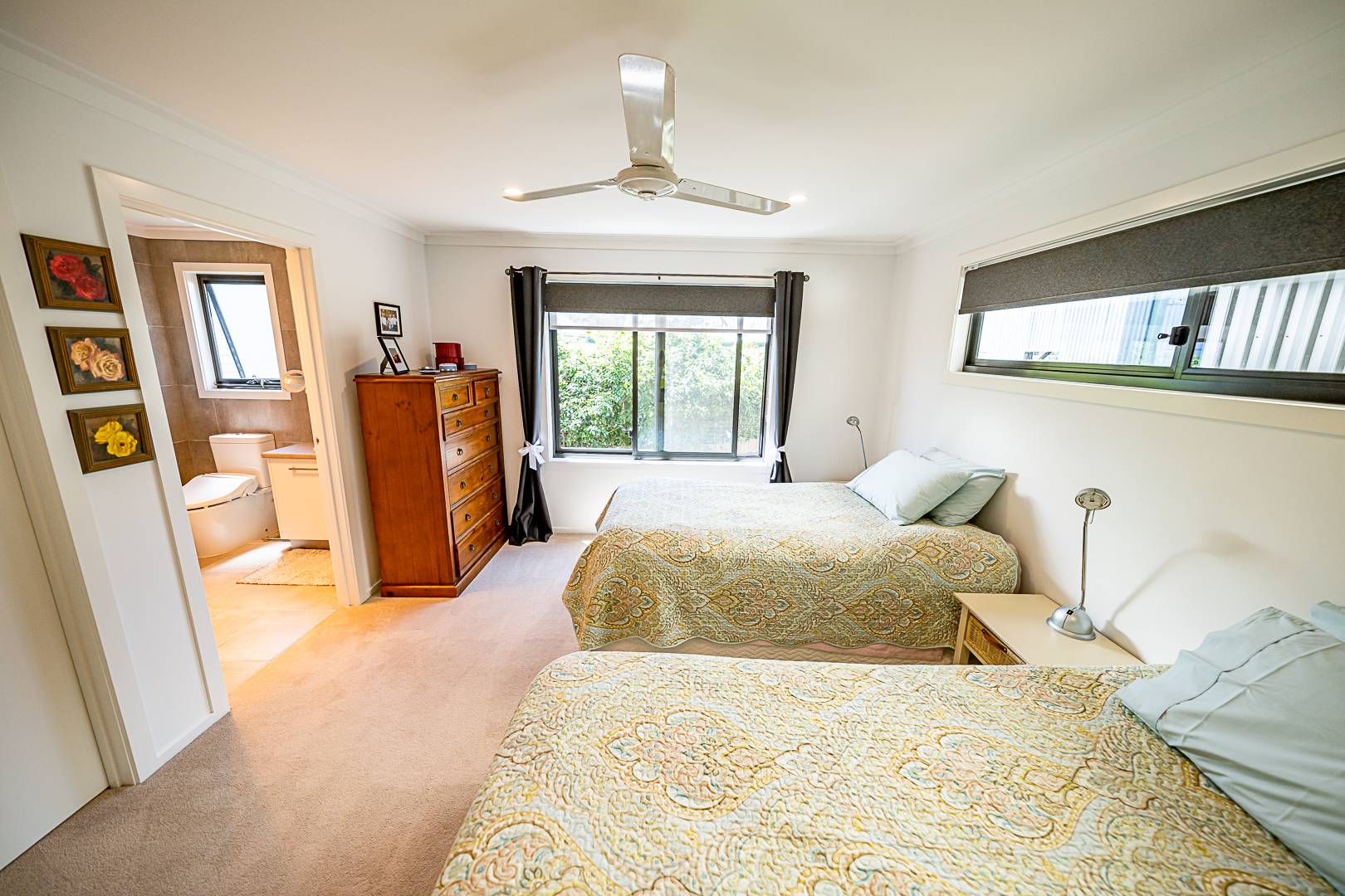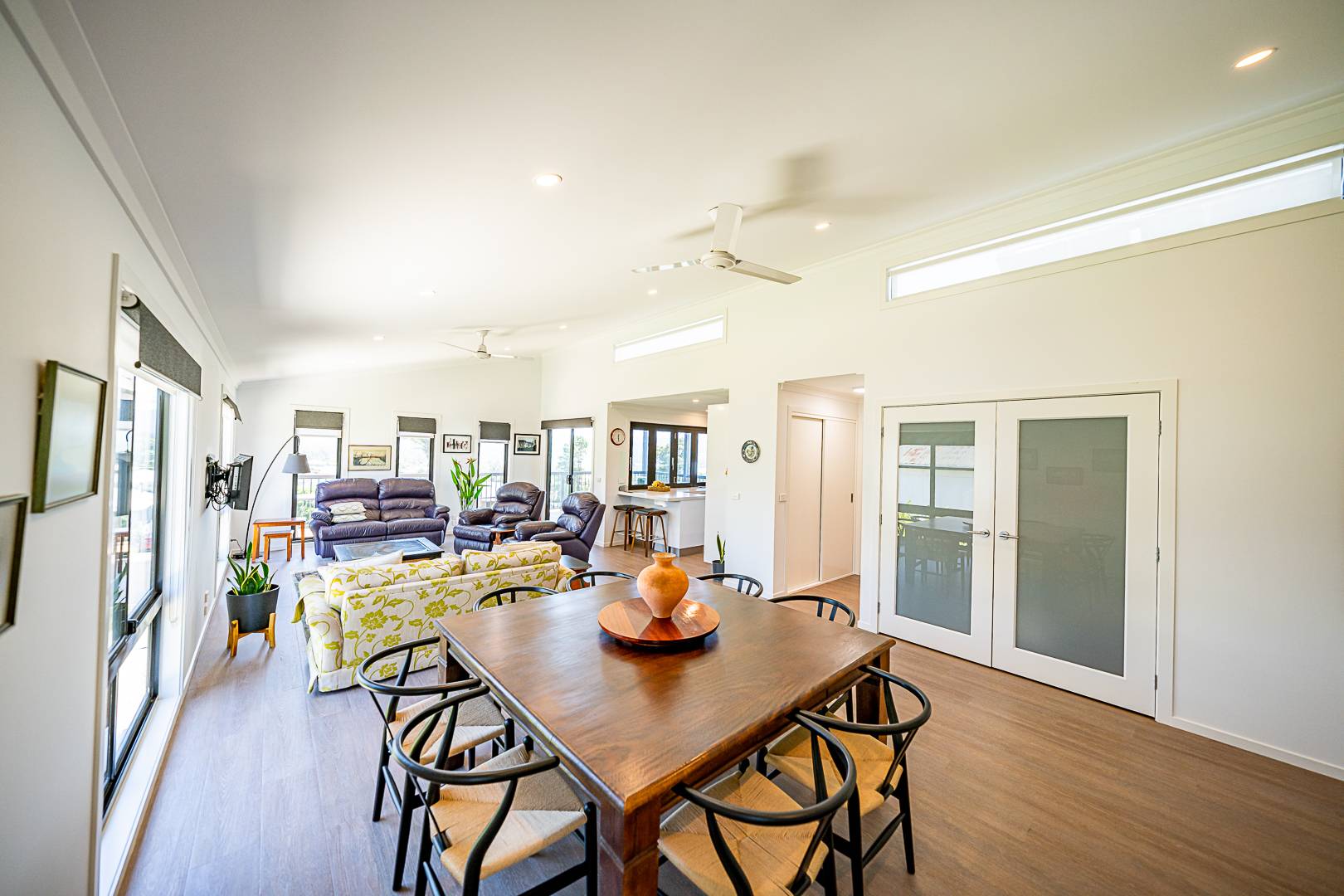 Double glazed windows and reverse cycle air con ensure it's always fine at your place! A double remote lockup garage joins the house through a covered breezeway that is a great seating area. The garage is positioned at the back of the elevated home to provide easy access with only 2 steps into the house.