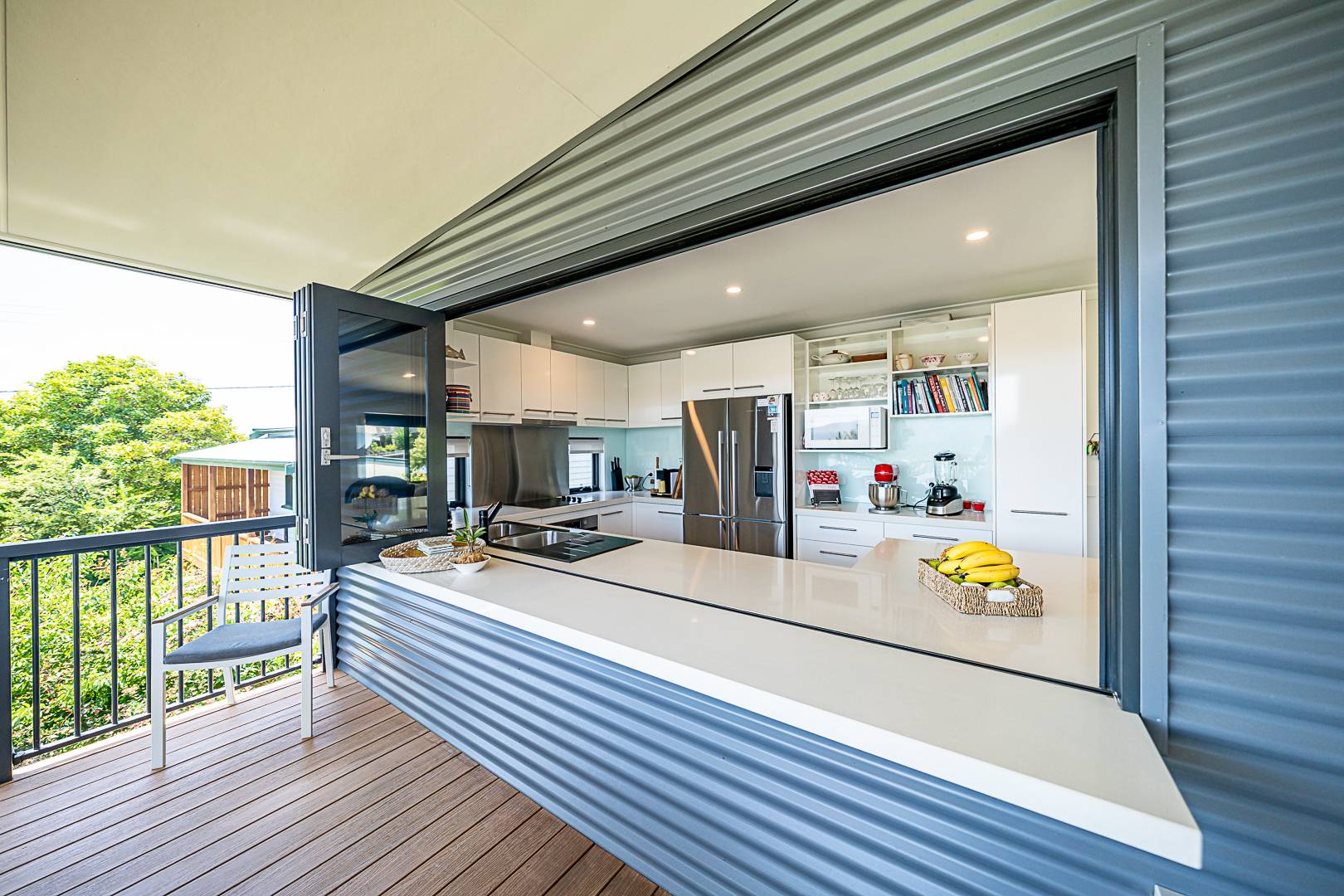 Absolutely nothing to do but move in to this spacious, thoughtfully designed home with a roomy living area and raked ceilings. A beautiful kitchen provides plenty of storage and features stone bench tops with bi-fold windows, creating a wonderful servery out to the covered balcony, where you can entertain and enjoy ocean, lake and mountain views.
