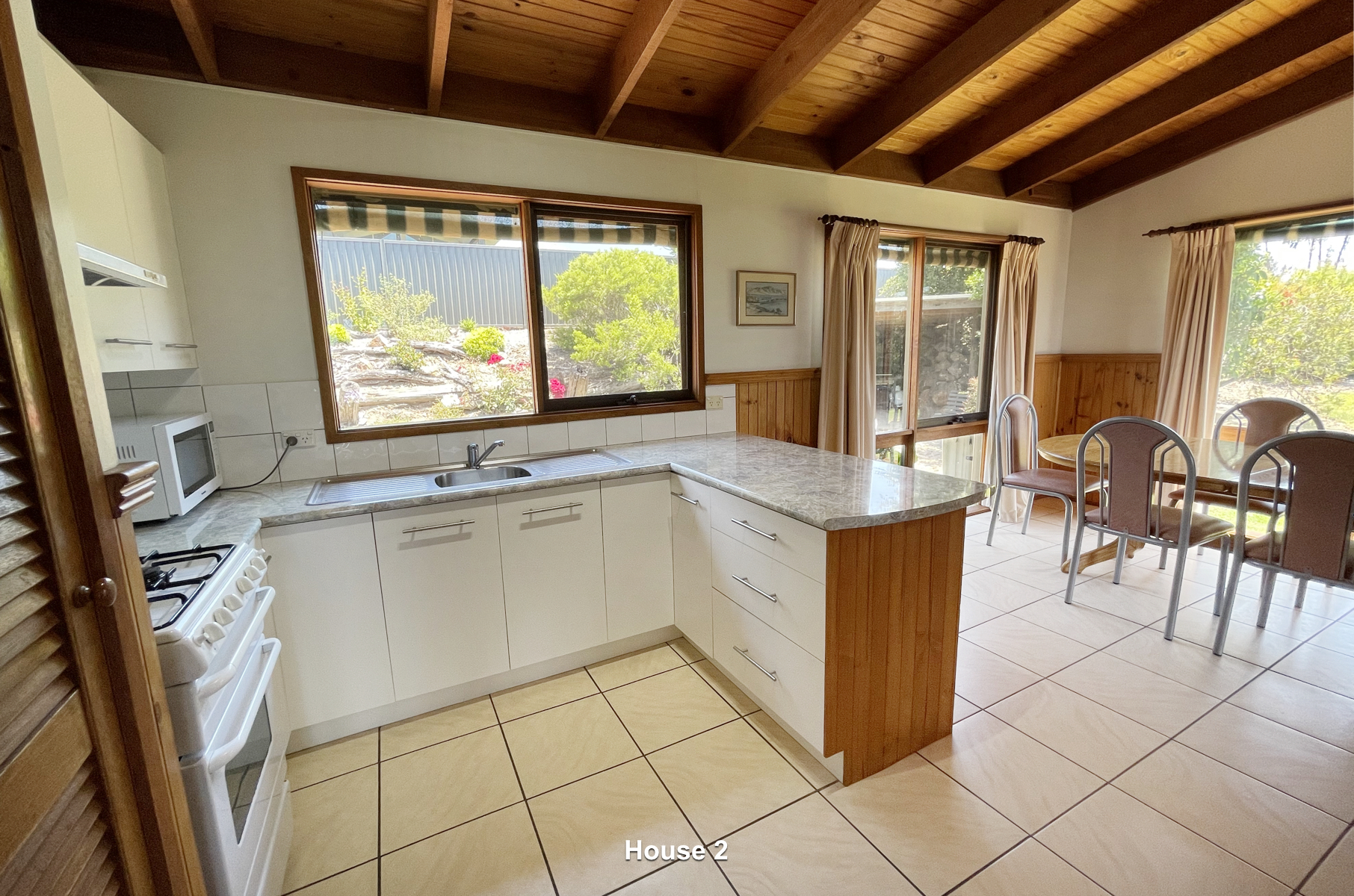 The second 3 bedroom home is charming and comfortable in design with good sized rooms, wood heater, reverse cycle air conditioner and a covered veranda out front with ocean views to take your breath away. Fully set-up for holiday rental, everything is included to make an immediate income if desired. Positioned to not impact on the main residence and retain privacy. Would also suit as a parents’ retreat or permanent home.