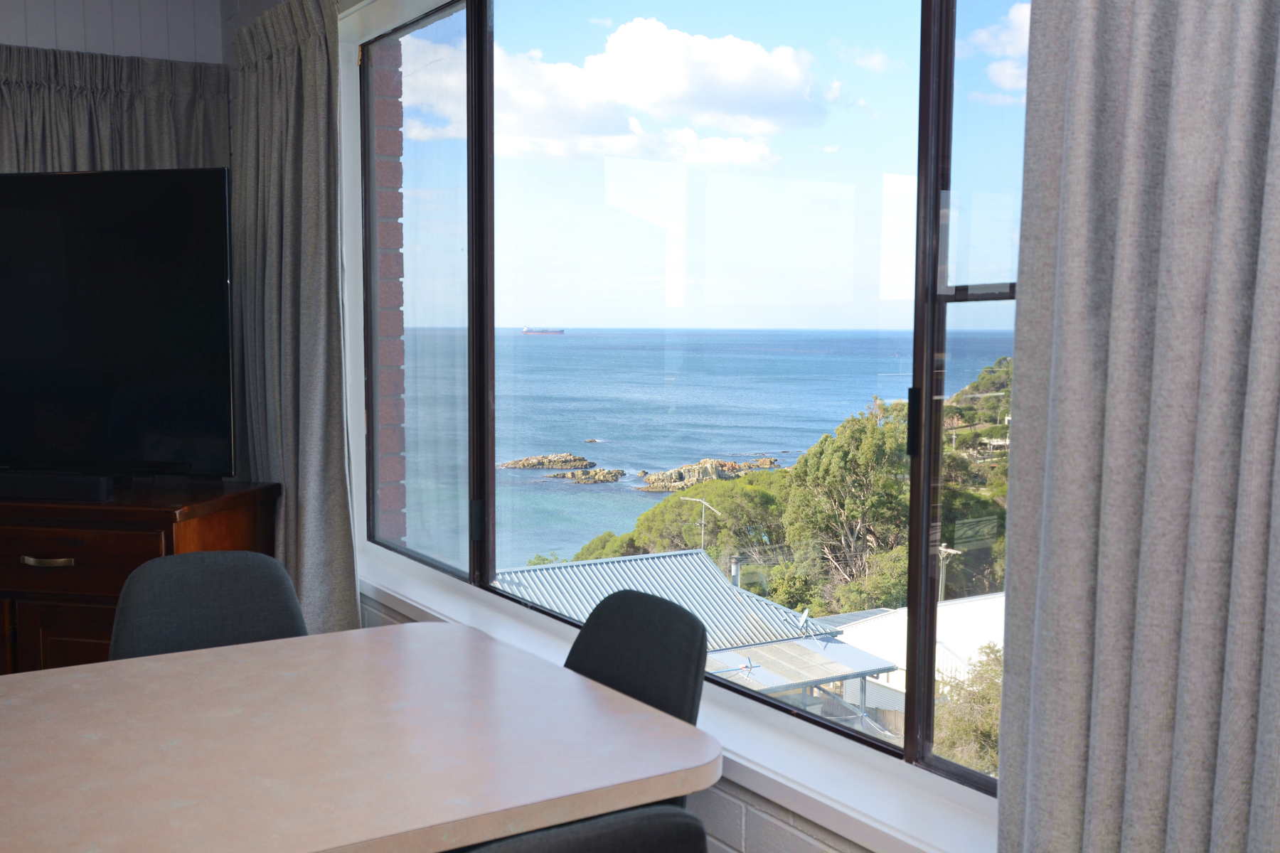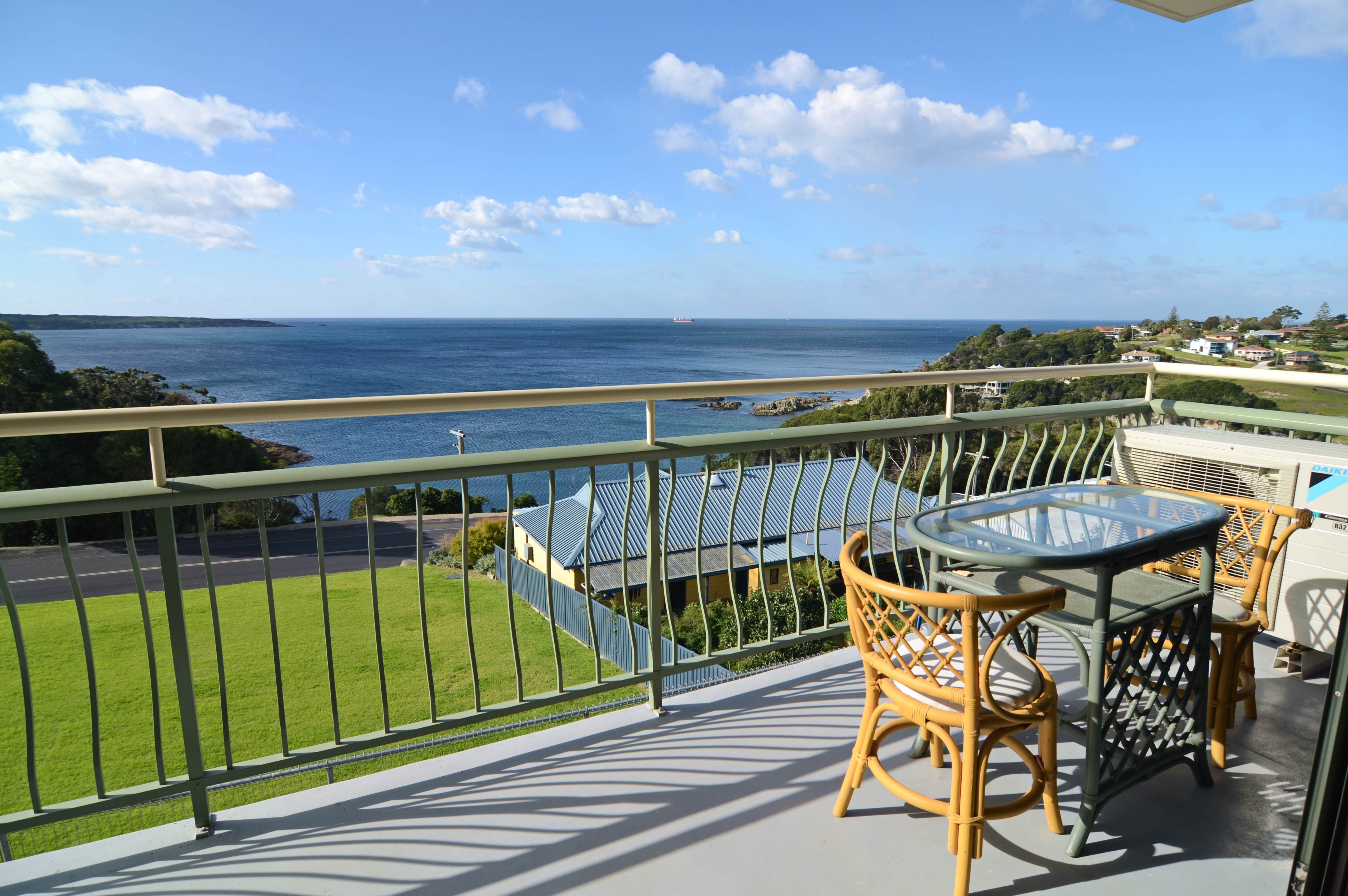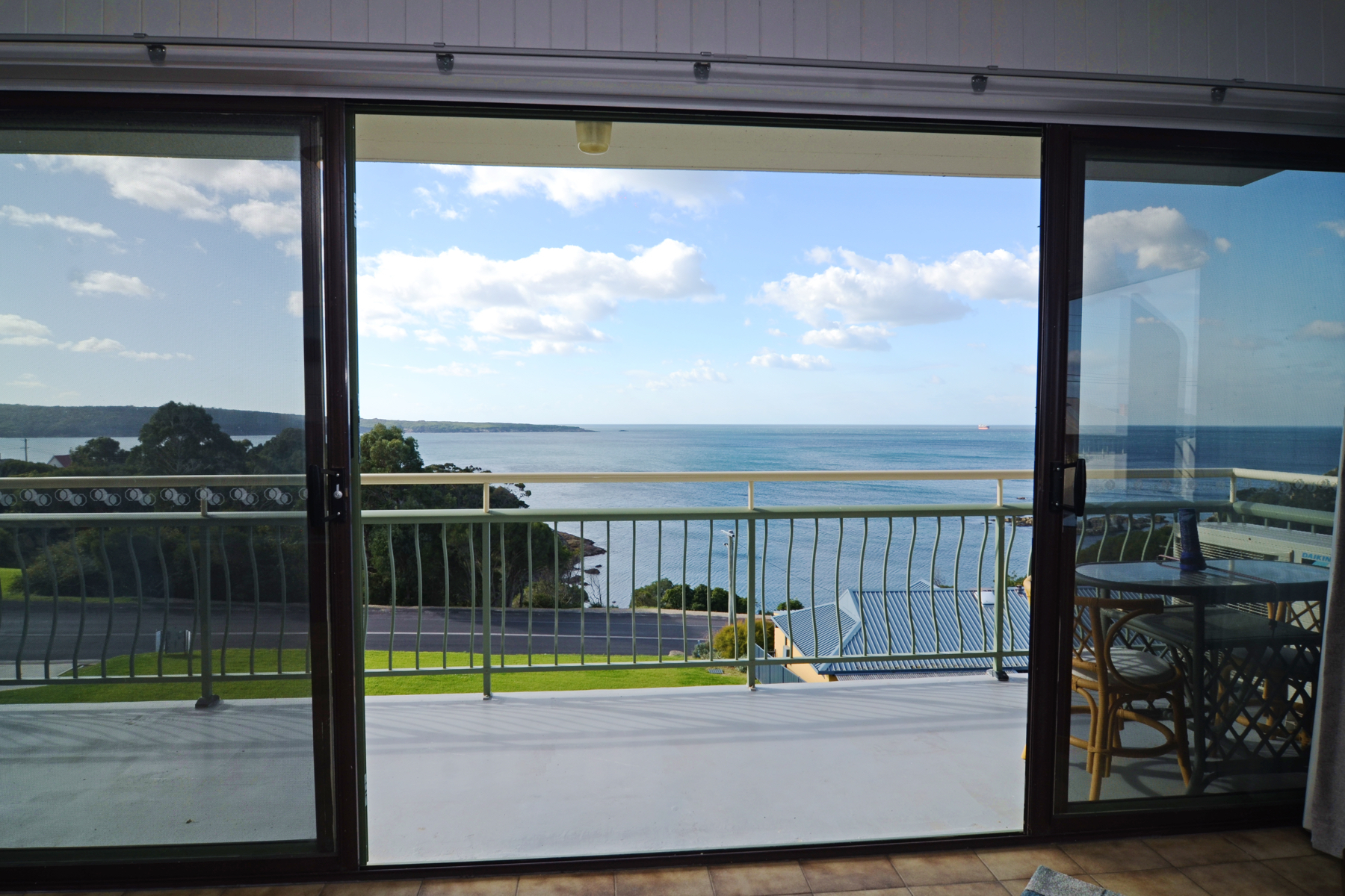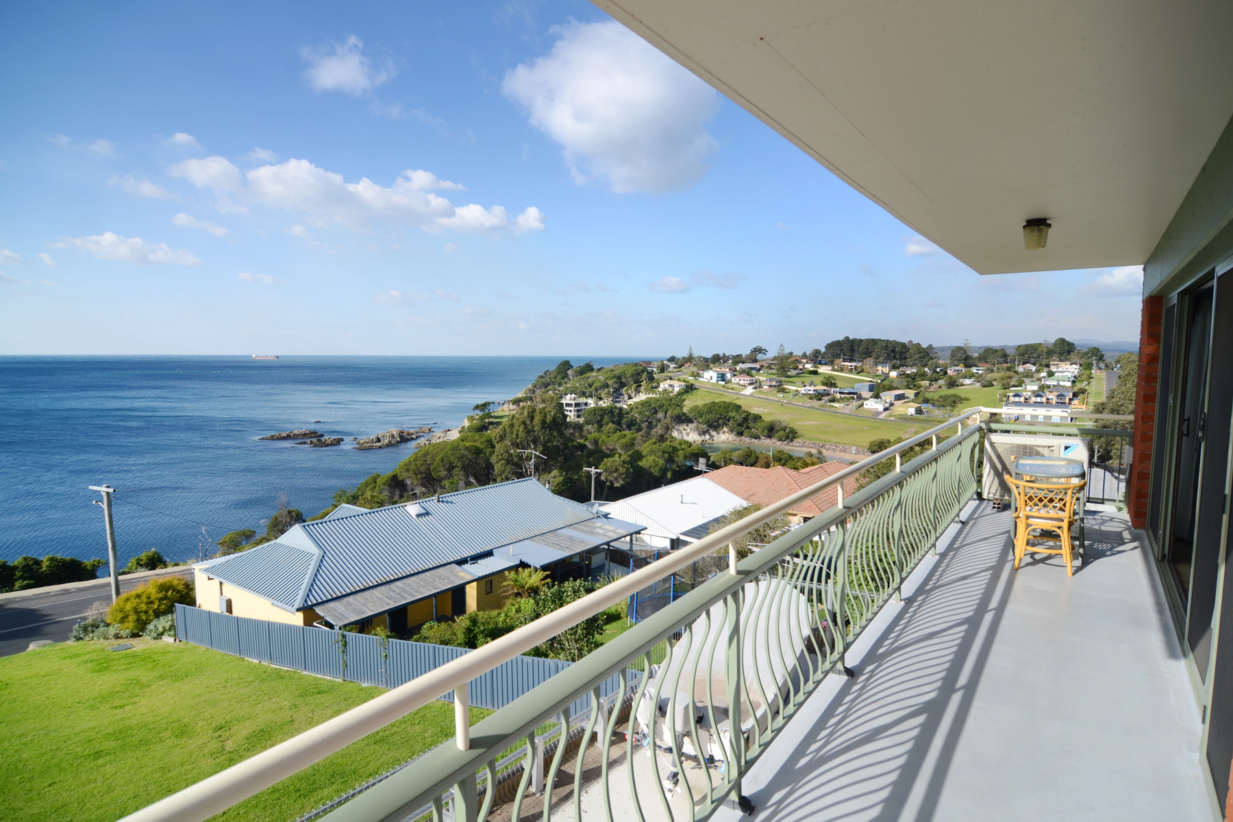 This double brick unit offers a long concrete verandah, spacious open plan living with views over North and South Twofold Bay plus new blinds,