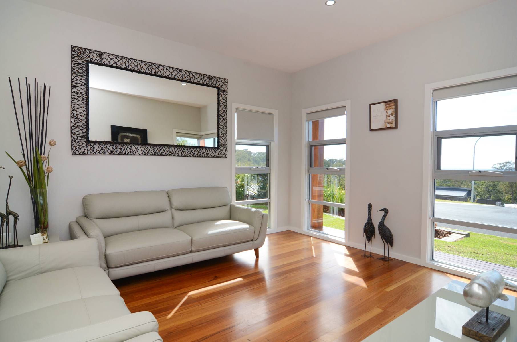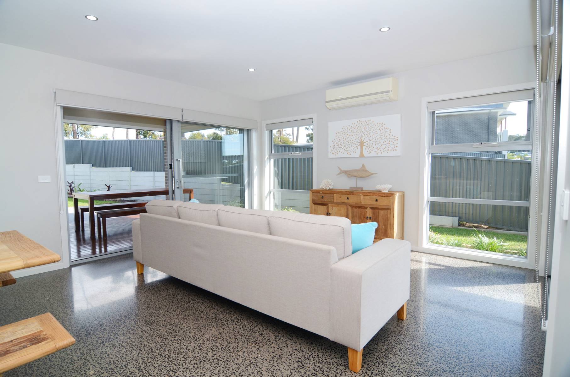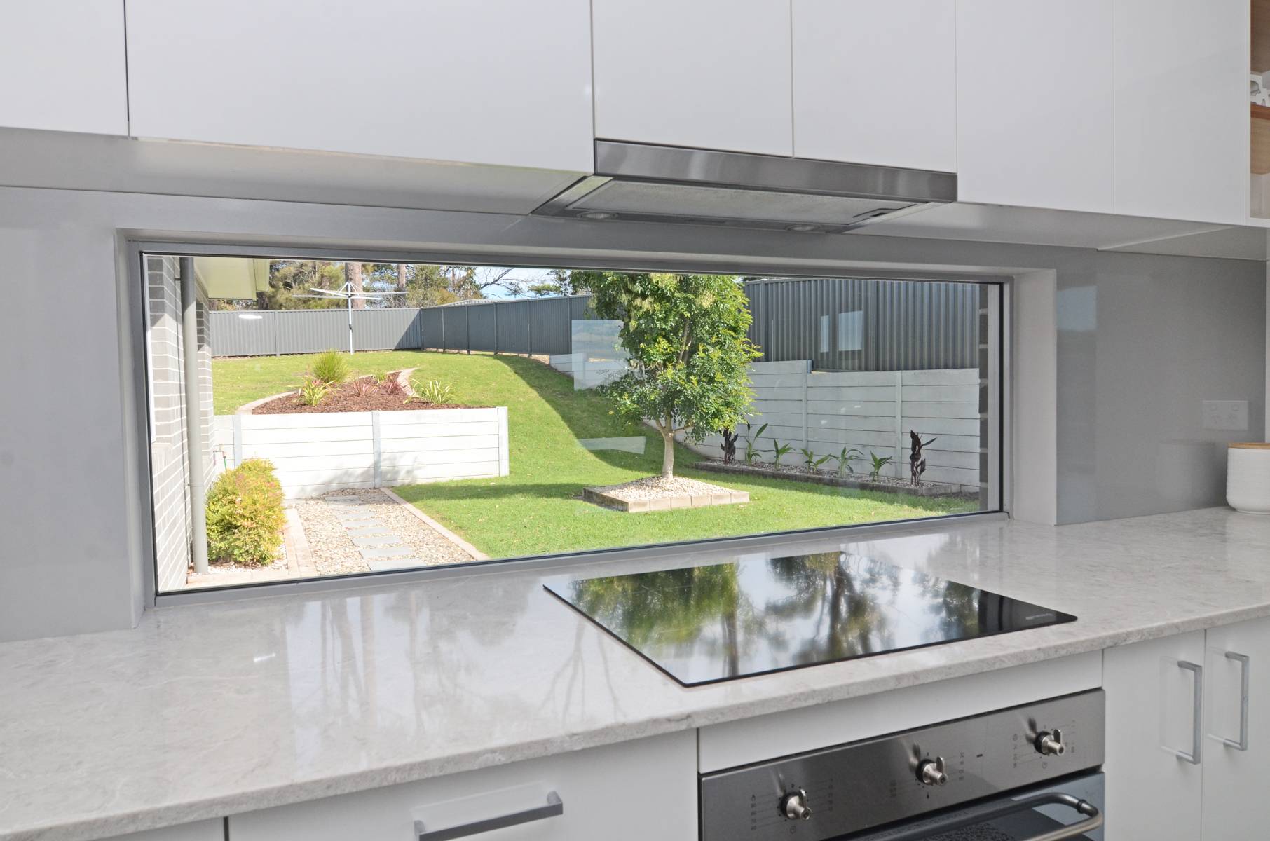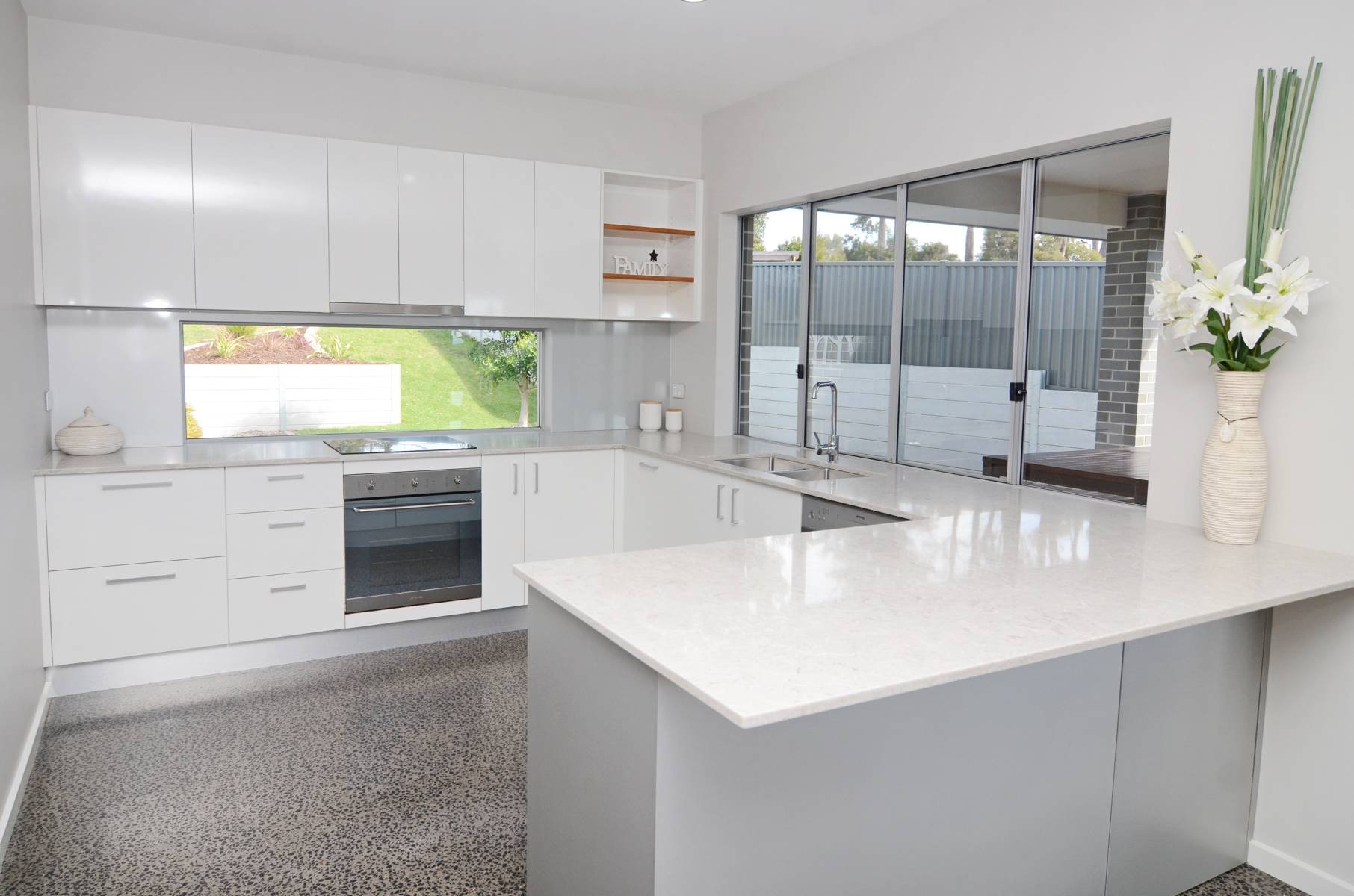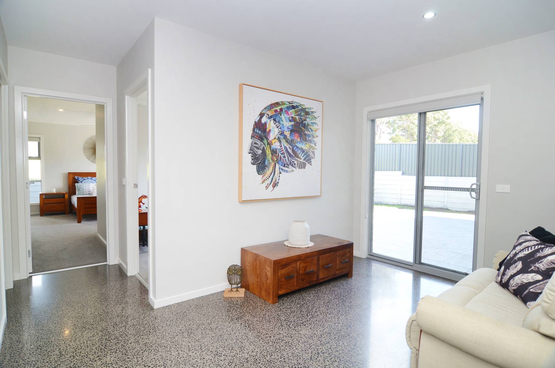 It is easy to imagine living in this single level home as soon as you enter the front door with the ocean glistening in the distance through the windows of the front living area, open living space right through to the alfresco and backyard. A large, quality kitchen is at the heart of the home with breakfast bar, walk in pantry, stone bench tops, servery window out to the covered alfresco and storage aplenty. Throughout this stunning home is polished concrete flooring including the study nook, dining and living area that adjoins the outdoor entertaining area.