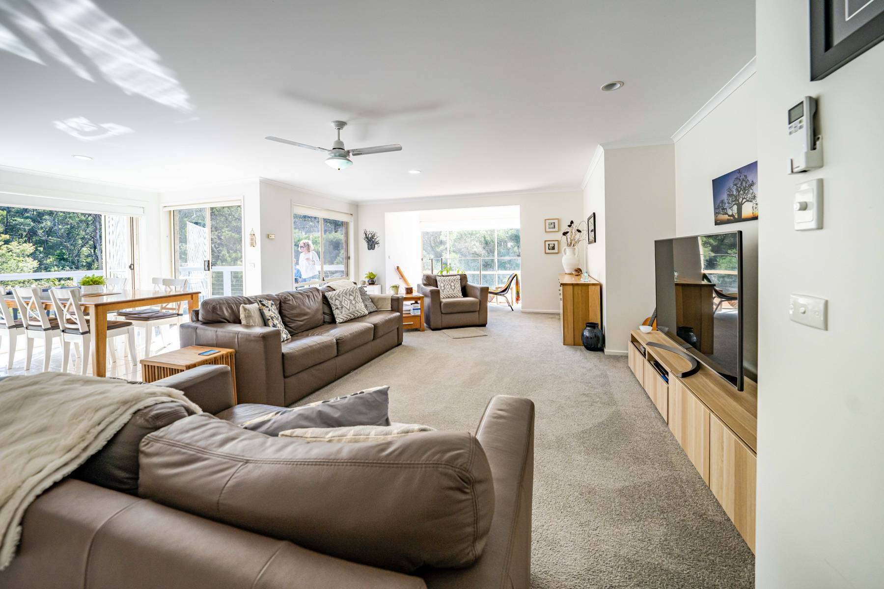 Downstairs is a fantastic guest quarters with is own bedroom, bathroom, large 2nd living area and kitchenette. Step out the back to the landscaped yard bordering reserve with a paved fire pit area with sitting, veggie garden, chook shed and lush green lawn. The under house area is a great addition providing a work area with a load of storage options.