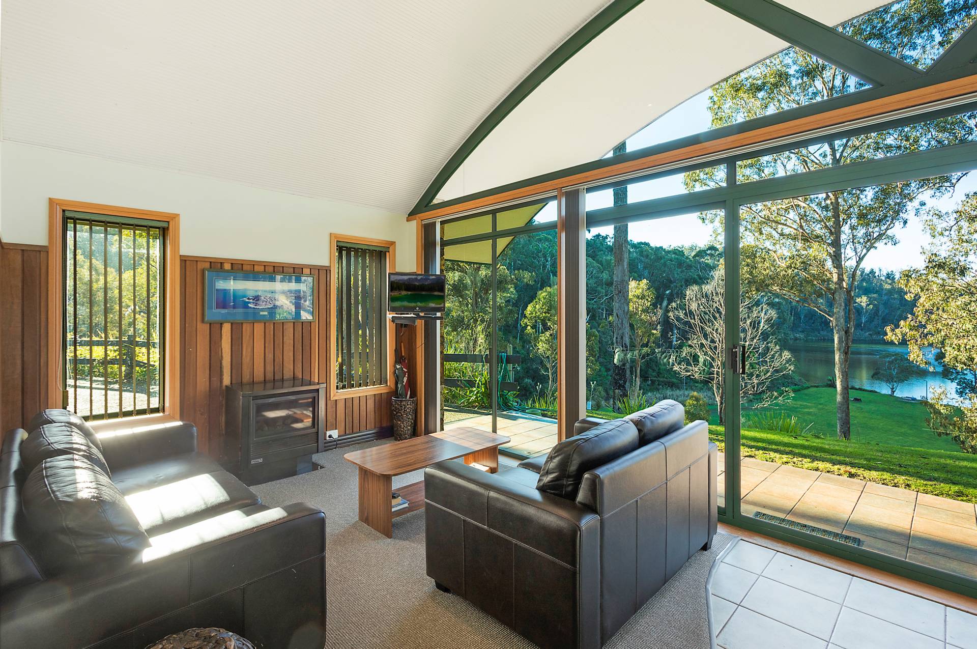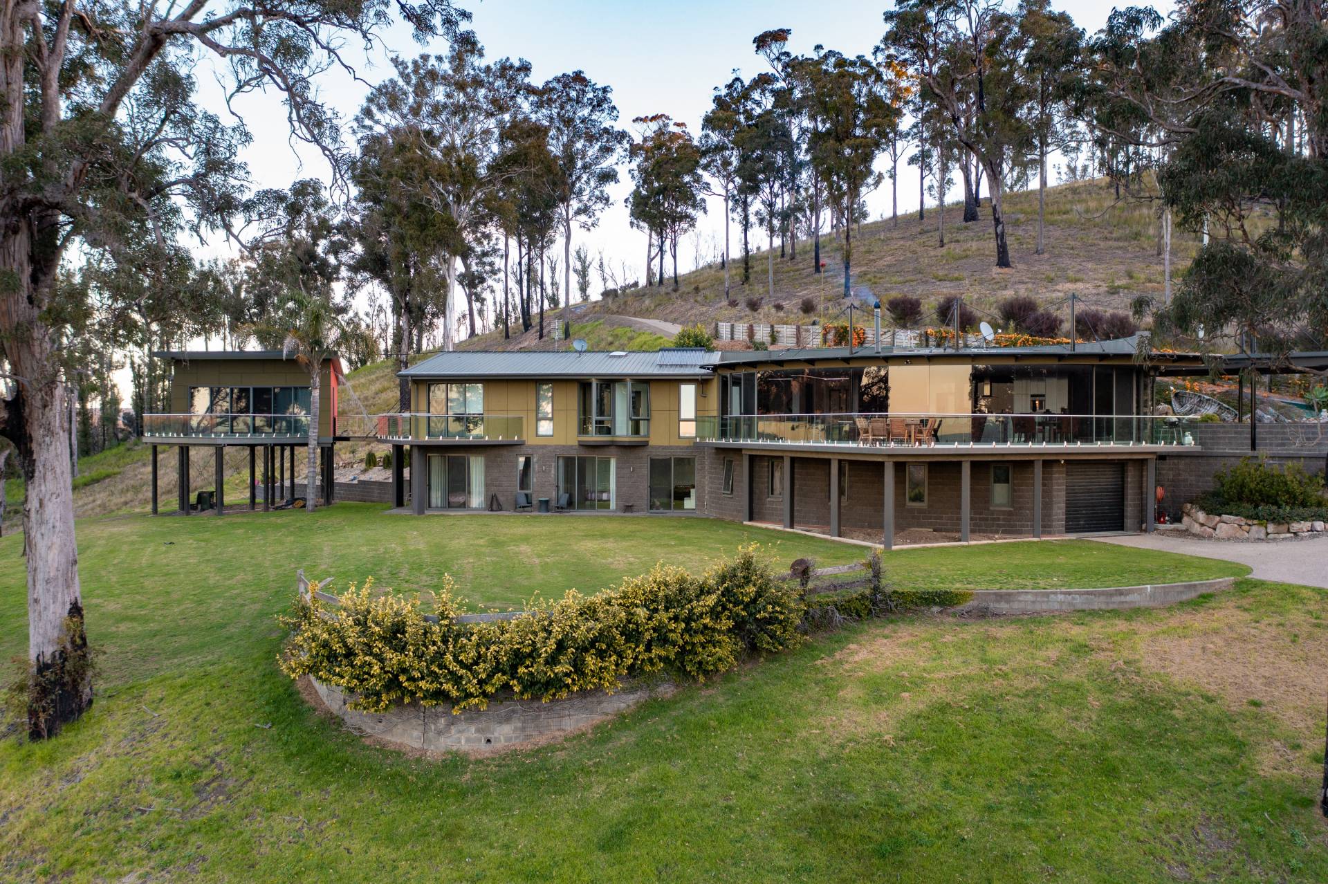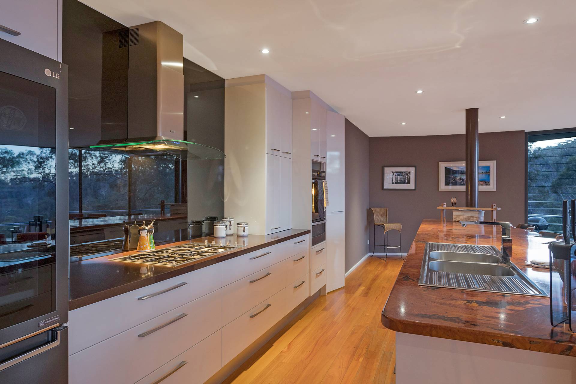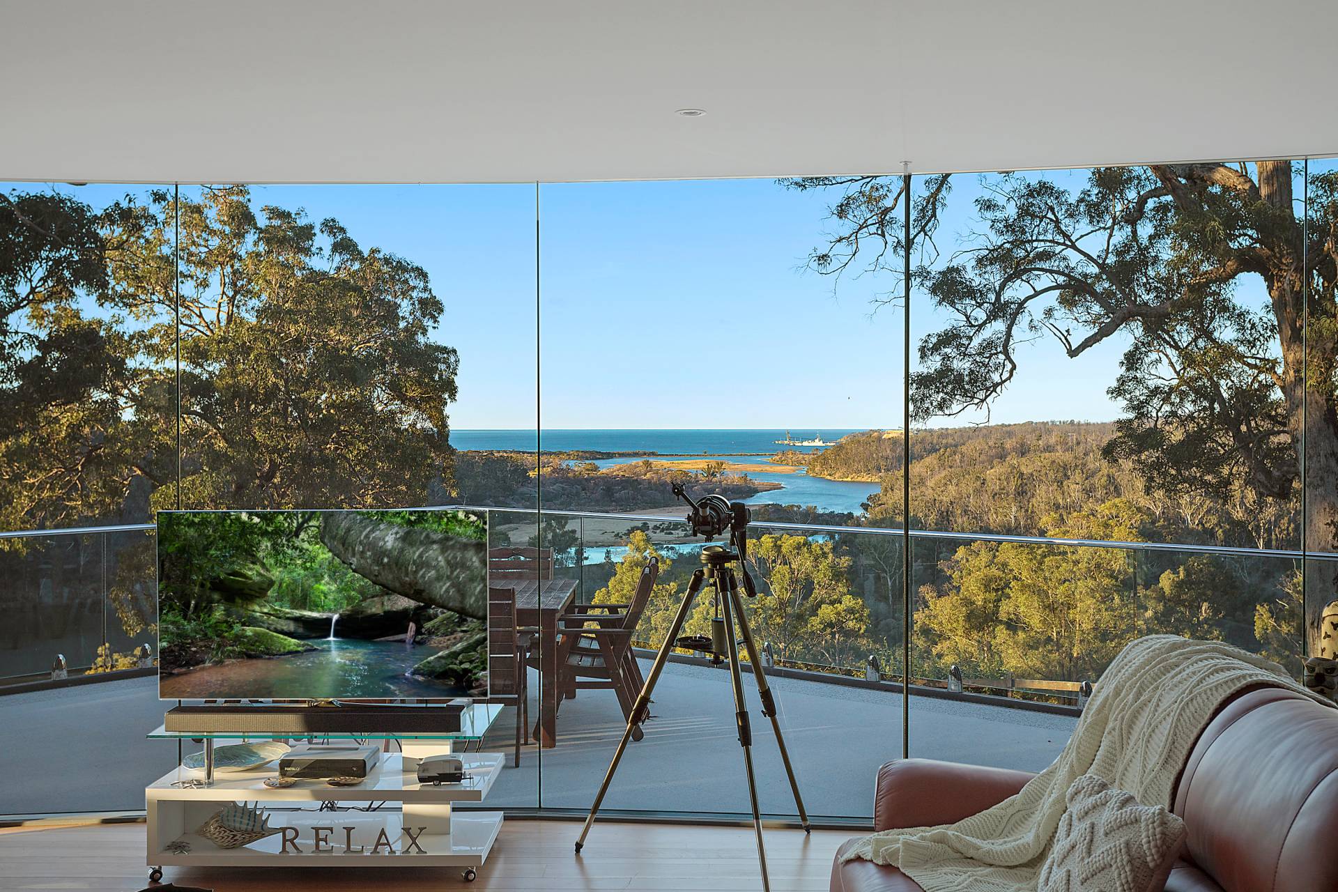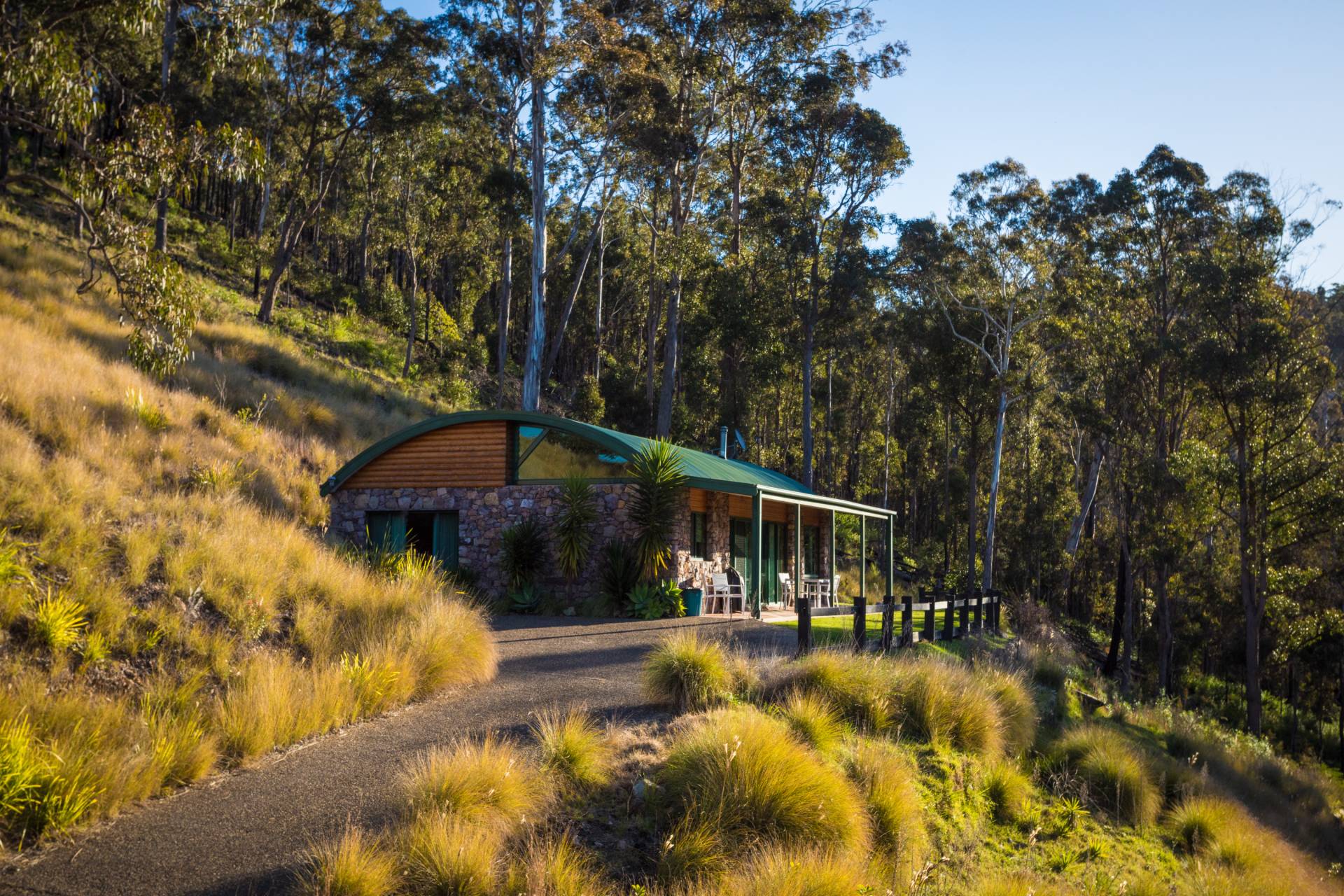 You quickly realise that you’re somewhere special as you approach this home with the stone work, landscaping and established gardens leading you to the level entry grand double doors.The use of natural timbers and stone continues inside from the floors to the stunning kitchen with butlers pantry to the wood fire place in the open plan living area that provides jaw dropping views along Towamba River and all the way out to Twofold Bay.