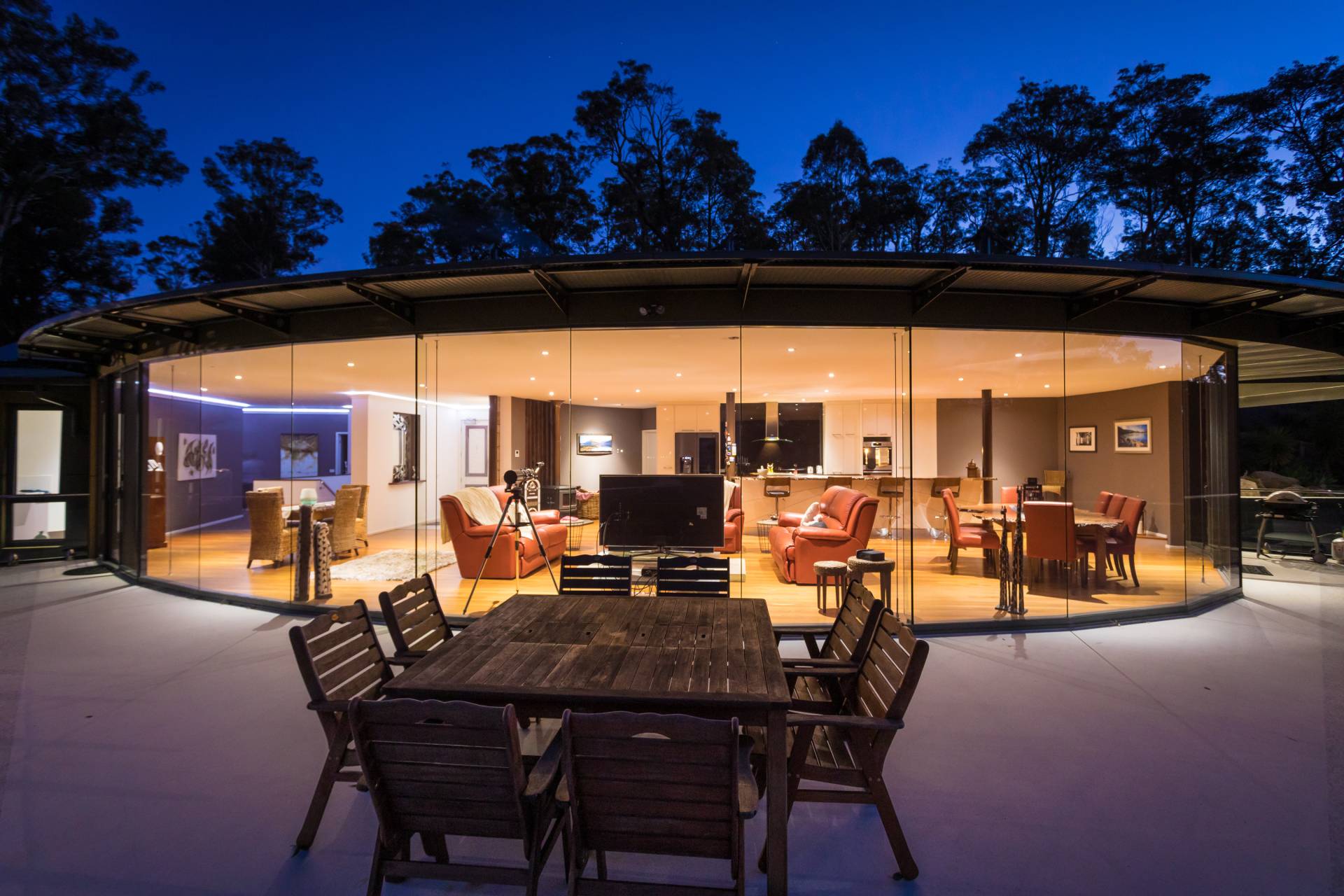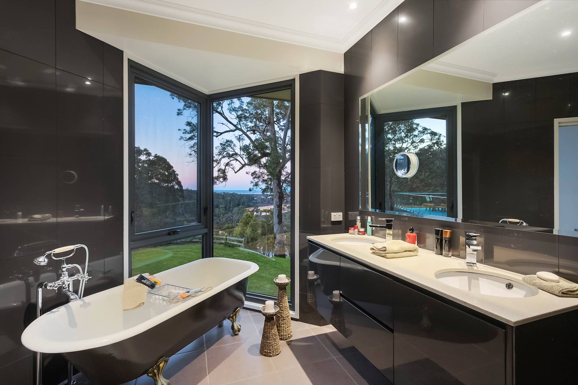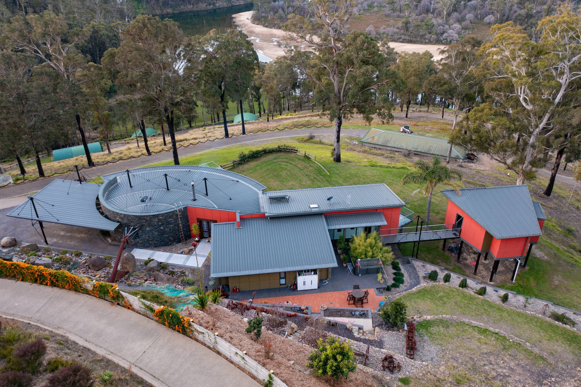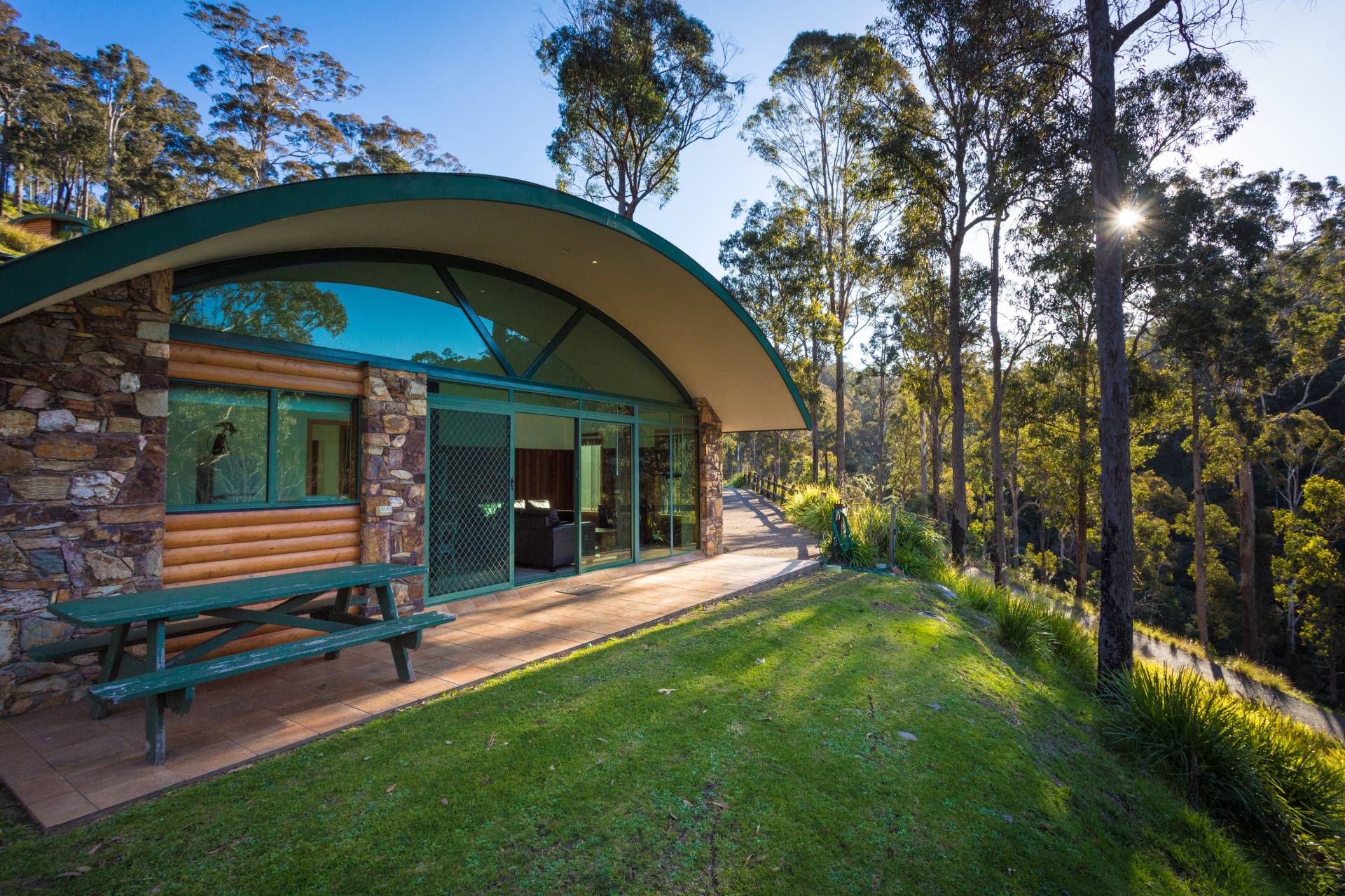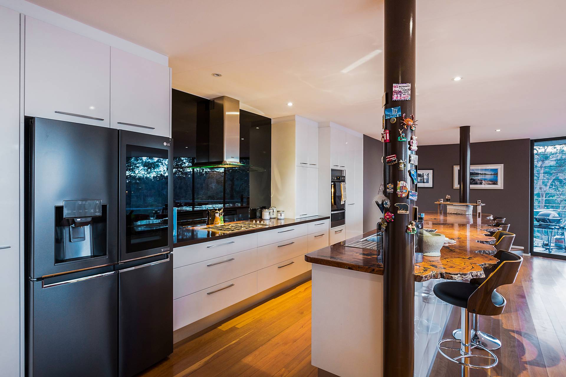 You quickly realise that you’re somewhere special as you approach this home with the stone work, landscaping and established gardens leading you to the level entry grand double doors.The use of natural timbers and stone continues inside from the floors to the stunning kitchen with butlers pantry to the wood fire place in the open plan living area that provides jaw dropping views along Towamba River and all the way out to Twofold Bay.