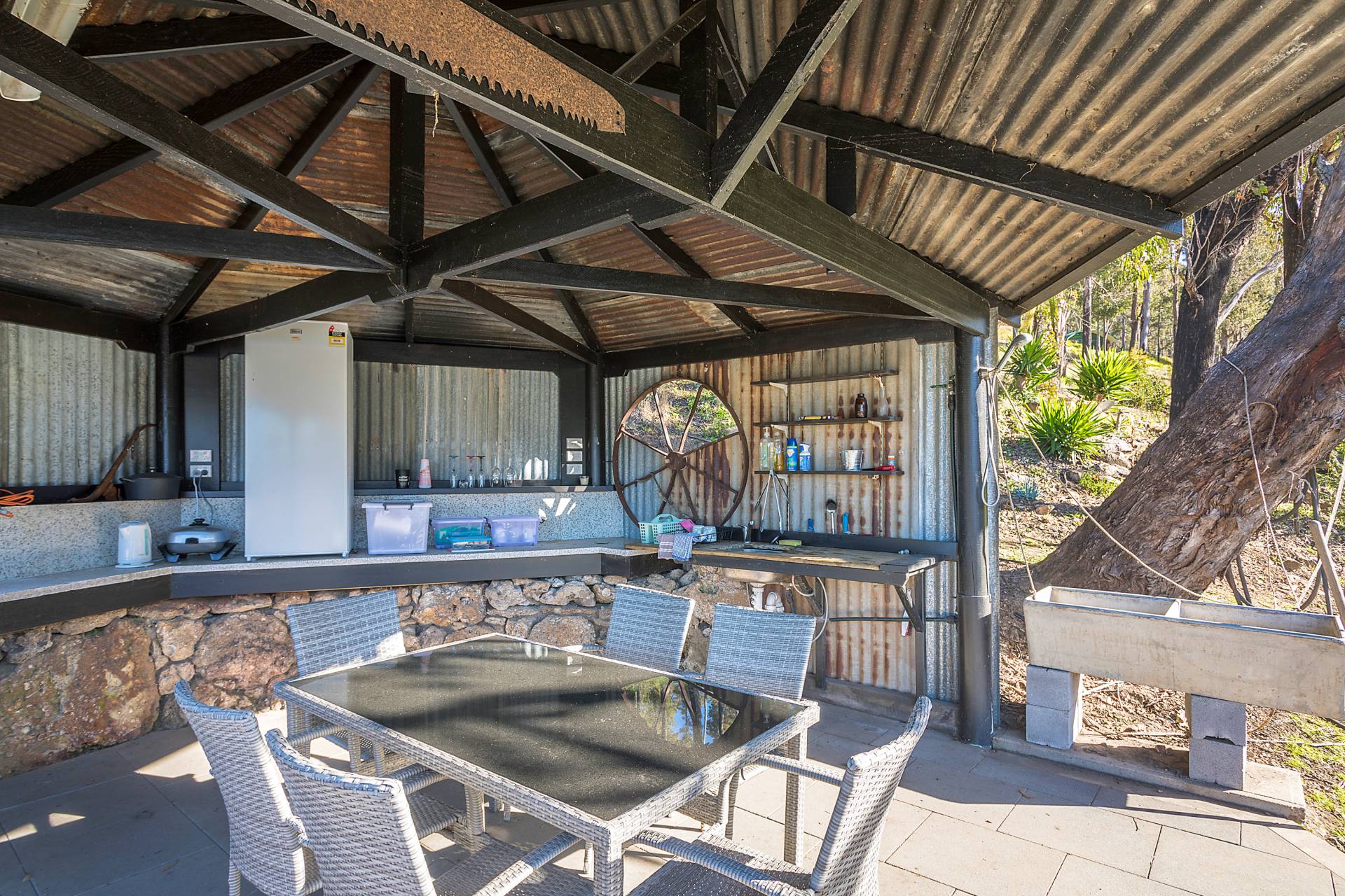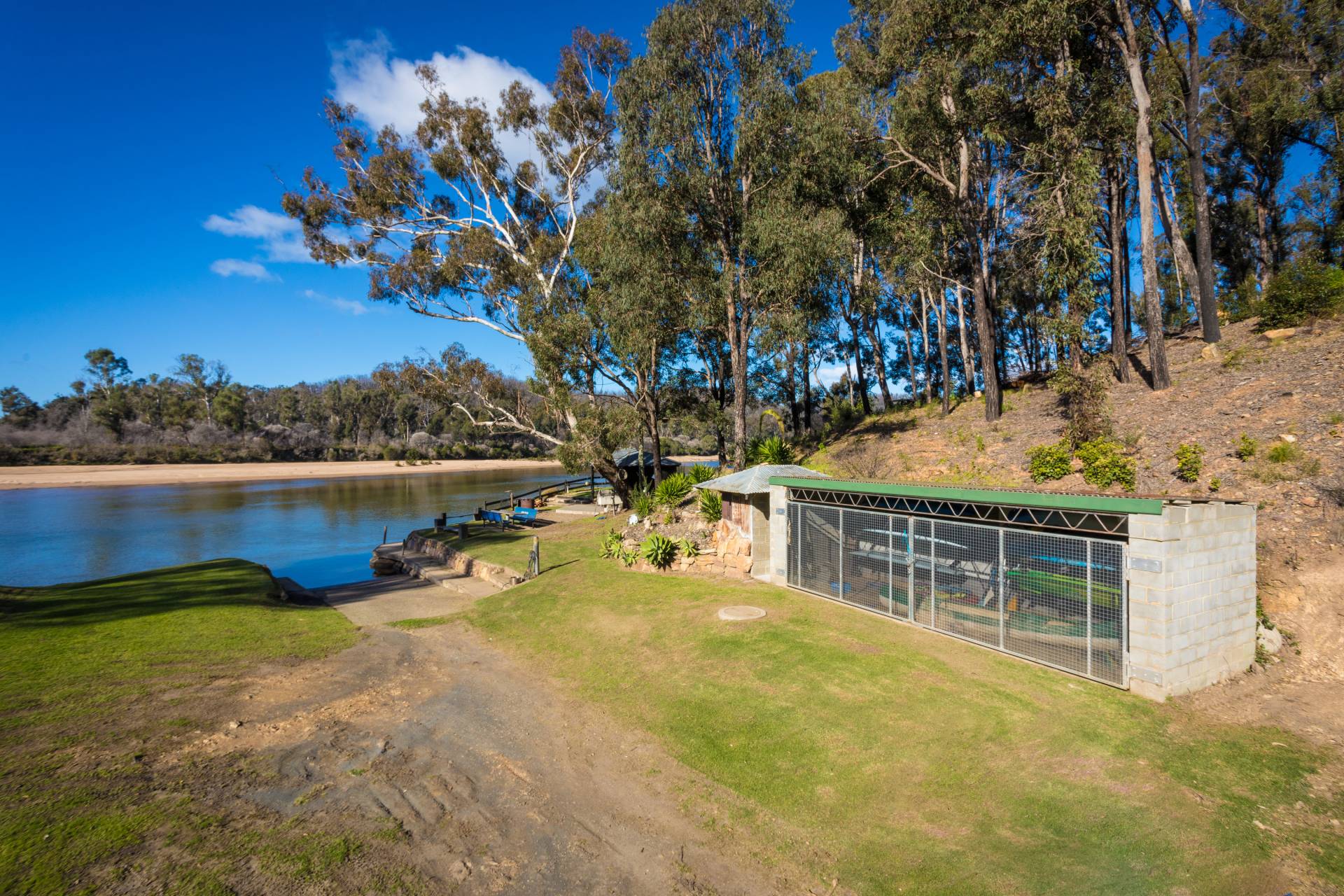 Closer to the rivers edge are 2 spacious two bedroom cabins and 1 three bedroom cabin that are ready to go, a river side camping ground with power and water on site plus a secure water sports shed to store the extra toys. The facilities are in place to accomodate an additional 9 cabins with approval and the massive news is the property has town water!!