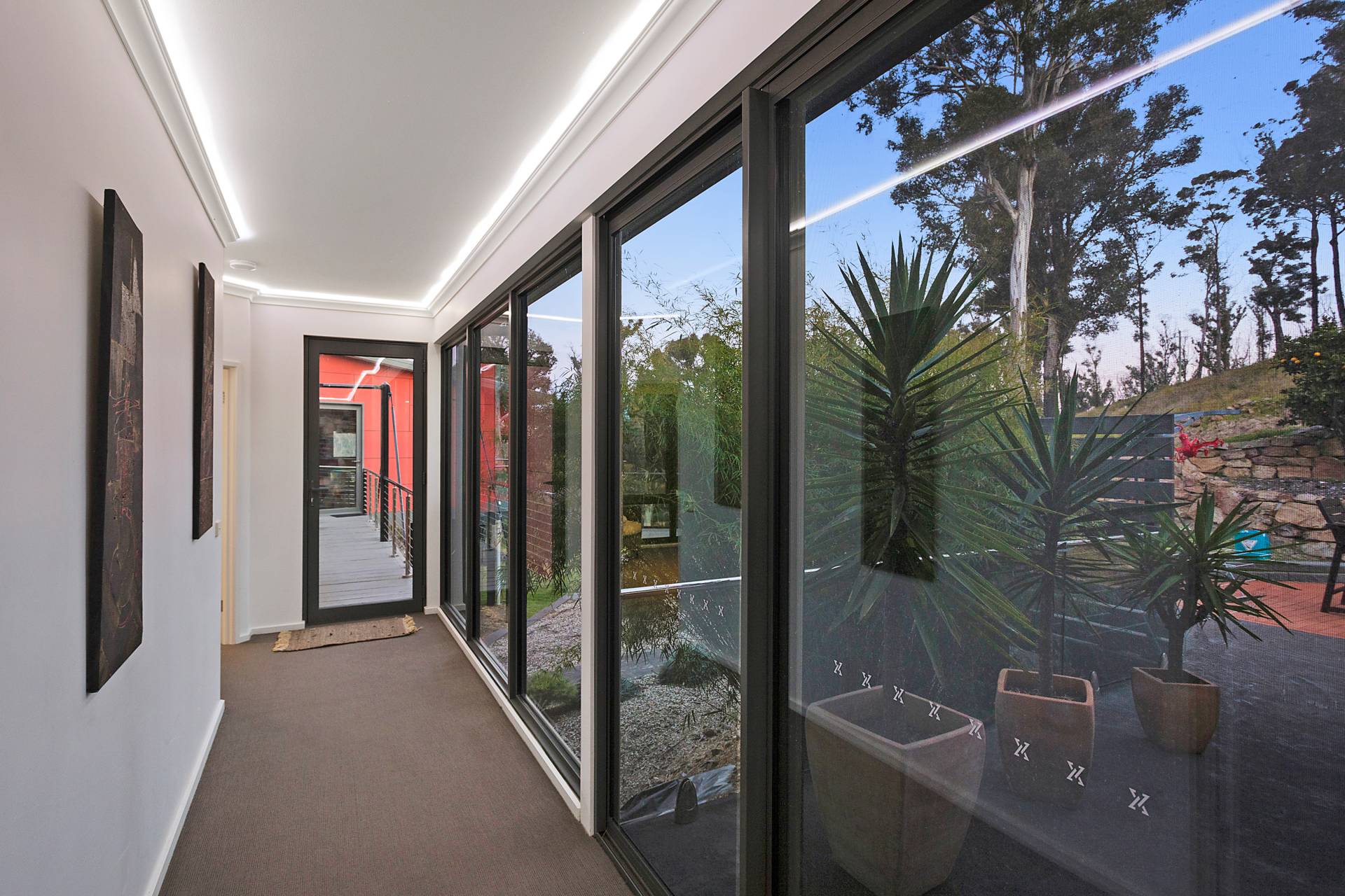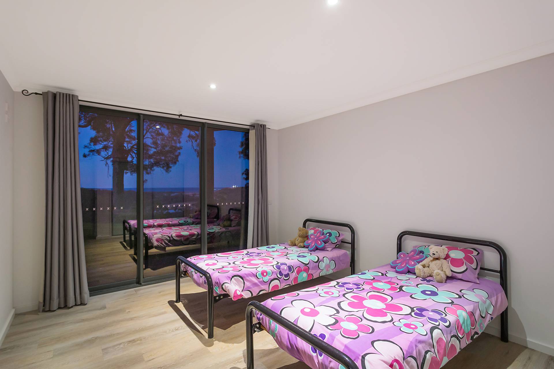 Floor to ceiling panoramic windows allow uninterrupted views to the huge open entertainment deck and beyond. Each extra large bedroom has its own bathroom while a separate guest area also has its own living room and kitchenette. The downstairs area is accessed via a truly beautiful timber stair case leading to another living area, 2 bedrooms, wine cellar and secure garage.