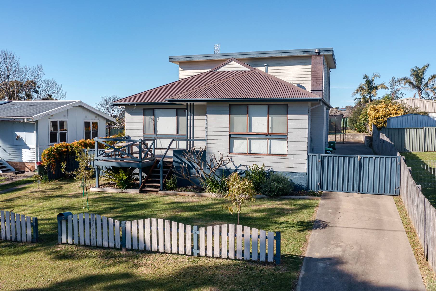 Set in an elevated position only a short distance to the Eden CBD (600m) and beach (900m), this 3 bedroom two storey home with some ocean and lake views is a great way to get into the market. Situated directly opposite a public park, the first floor comprises a combined kitchen, living and dining space adjoining a sunny deck area, large bathroom, two bedrooms and separate laundry. The main bedroom upstairs is a large parents retreat that includes a balcony with water views.