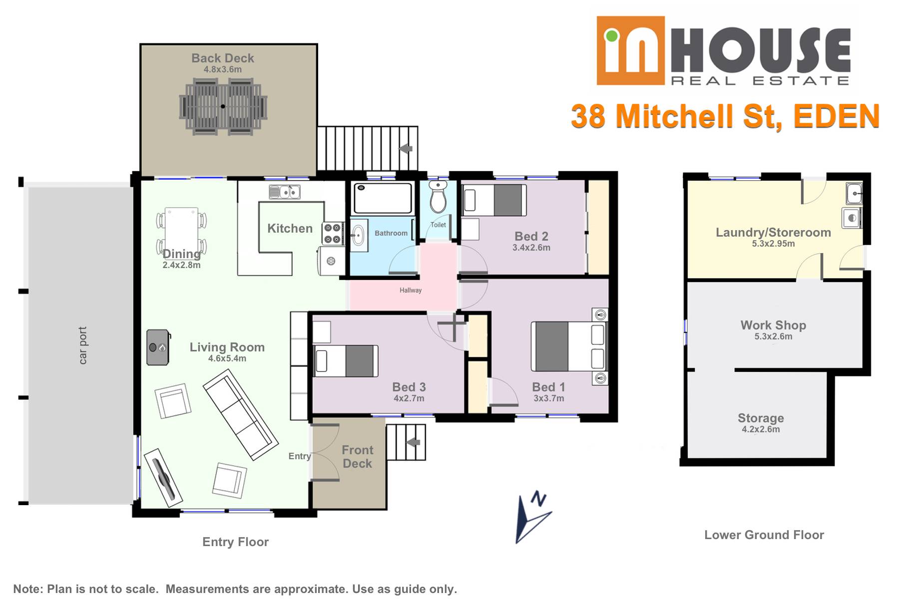 Situated in the heart of town it offers great central convenience with Coles supermarket just 350m stroll away, Eden Primary School 450m, Eden swimming pool 500m and the nearest family friendly beach is a mere 750m walk.  There’s also a wonderful park across the road with a playground for the kids.