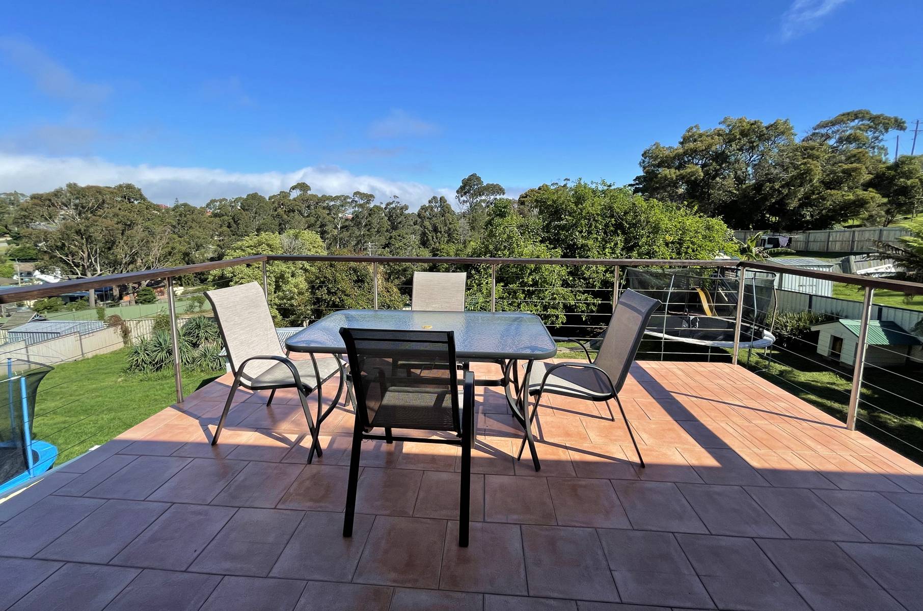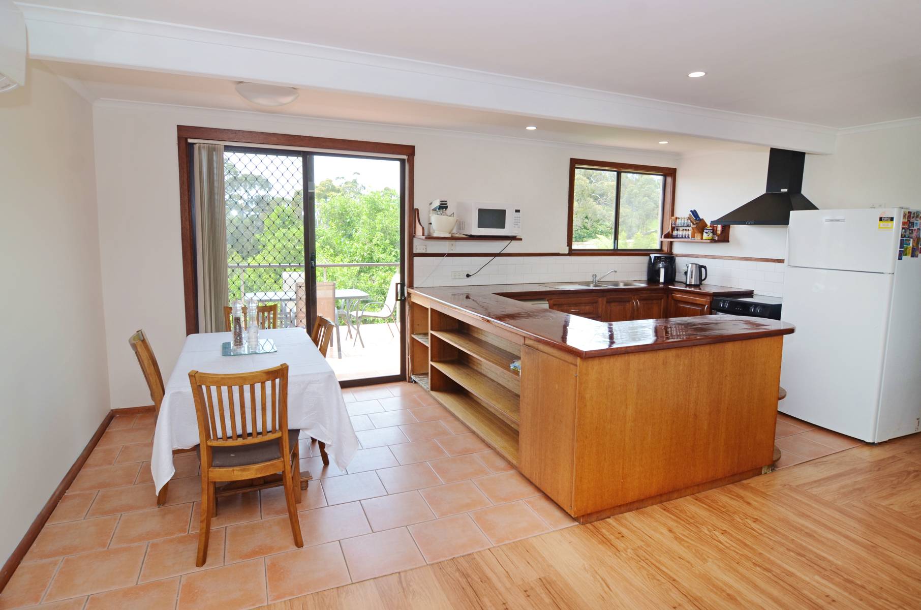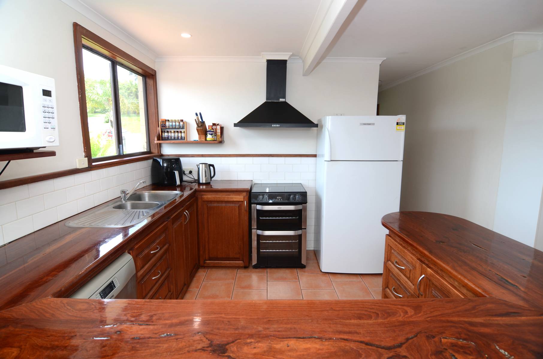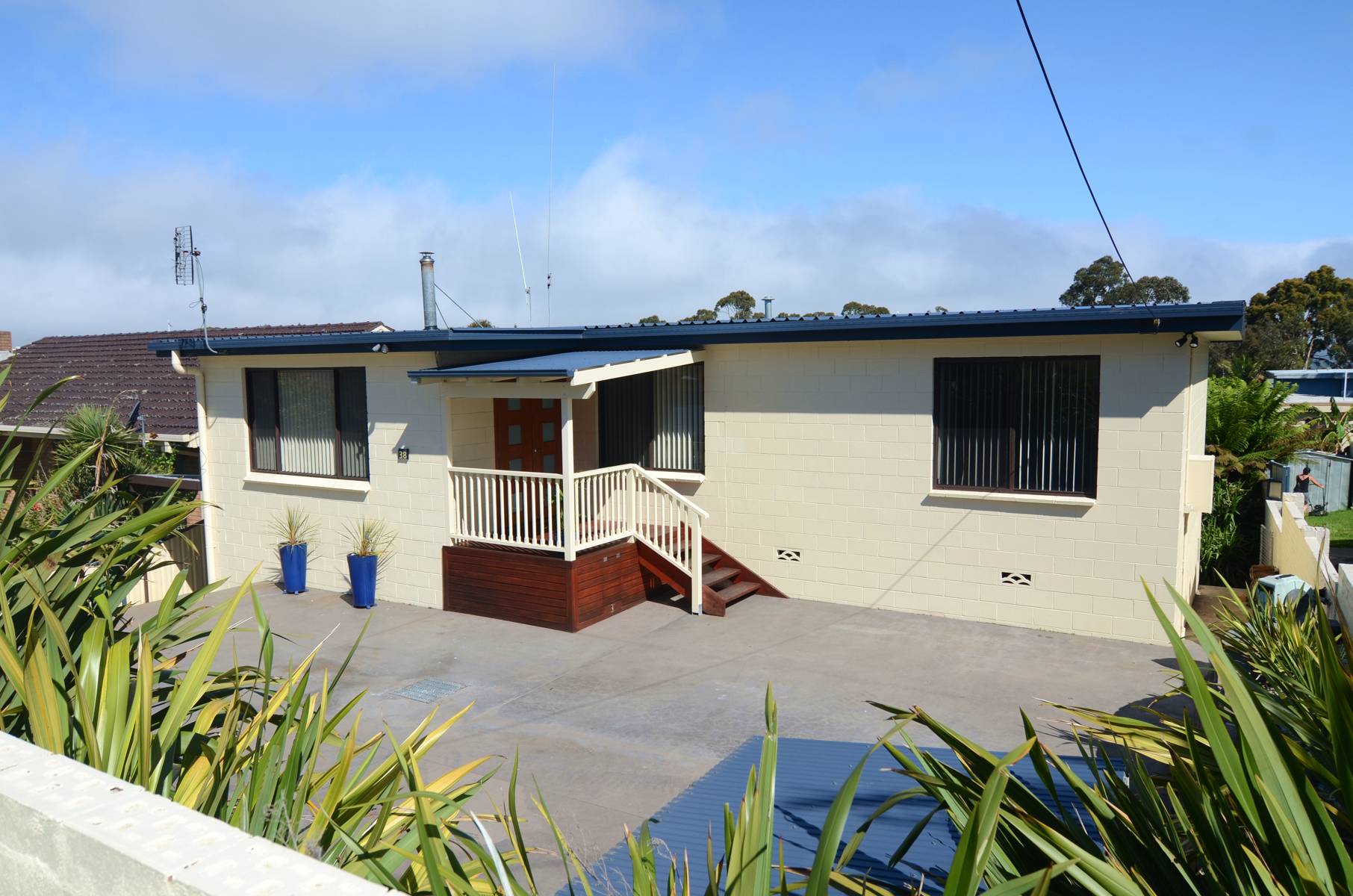 The open plan living space offers a nice view of North Bay and it flows nicely from the sunny front entry deck to the huge rear entertainment deck.   The kitchen shines with gorgeous hardwood slab bench tops and a Smeg dishwasher.  The living/dining space has excellent built-in cabinetry, a reverse cycle air conditioner and a slow combustion wood heater for year round comfort.  All three bedrooms have built-in robes and the bathroom and separate toilet have been nicely renovated to modern standard.
