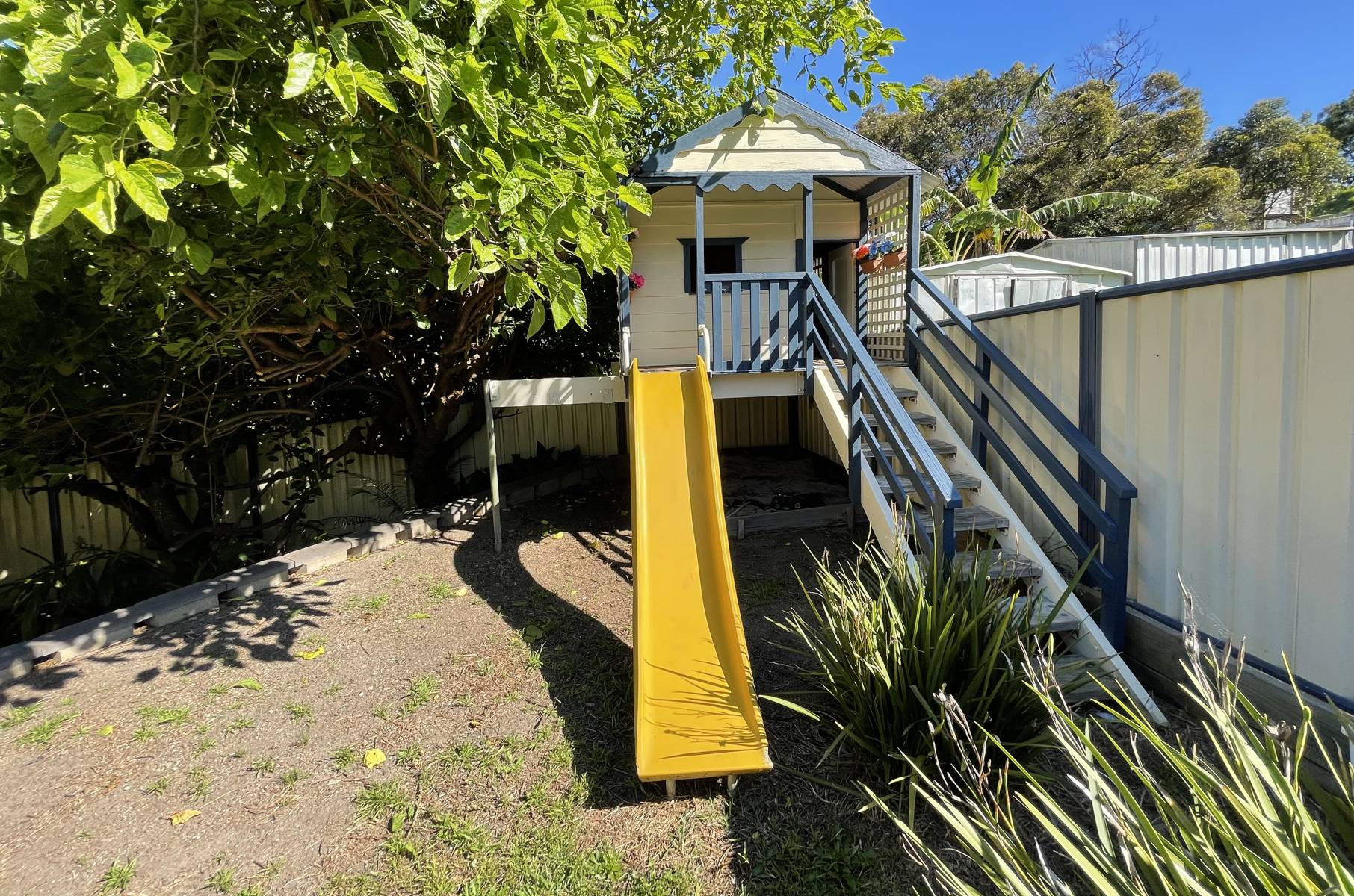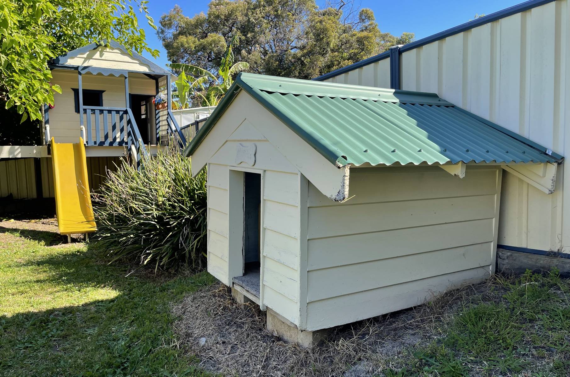 Perhaps one of the defining features of this property is the substantial landscaping.  The front yard is basically a big concrete carpark which is immensely practical and about as low maintenance as you can get. The backyard is a joy with wonderful levelled out lawn area, veggie gardens at the rear corner, a huge mulberry tree, deluxe cubby house with slide and even a custom dog house. All nicely fenced for pet and child security.