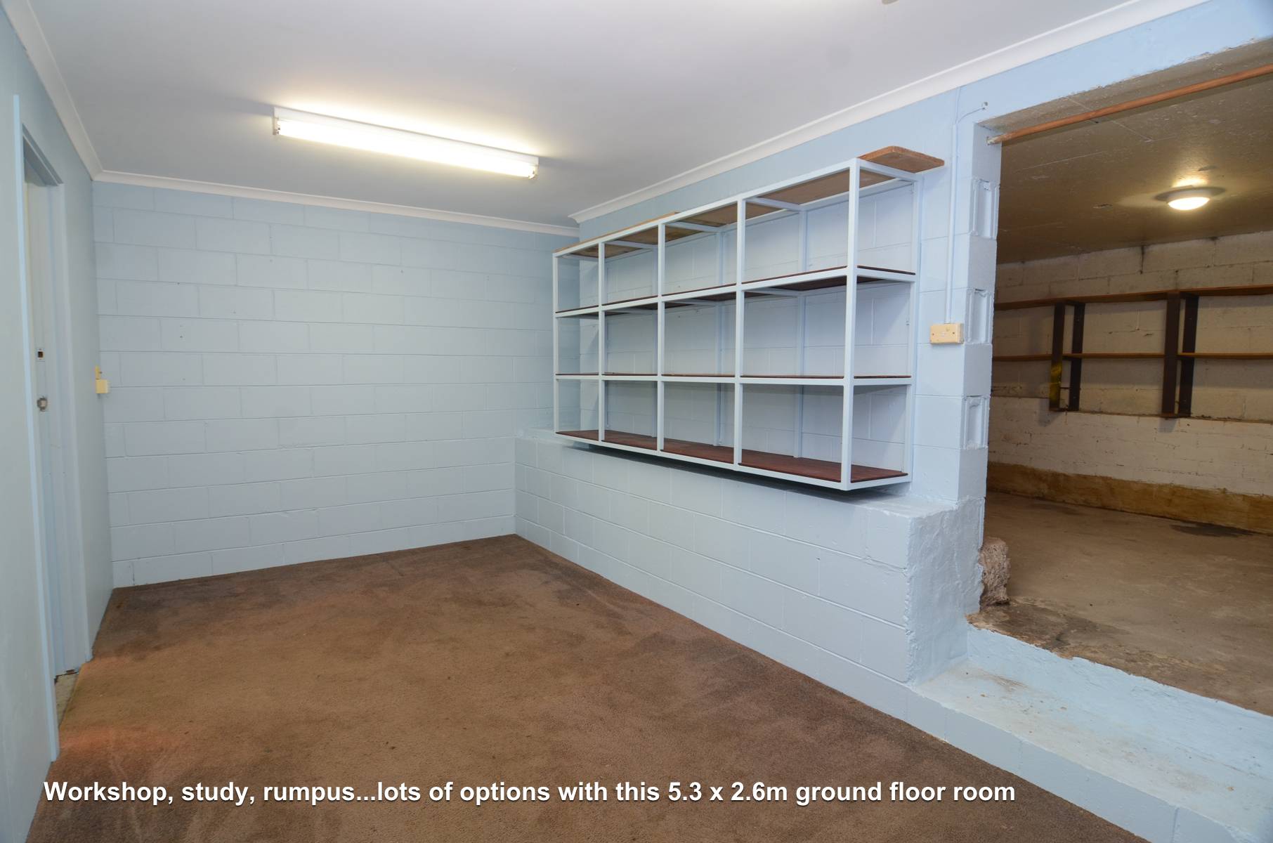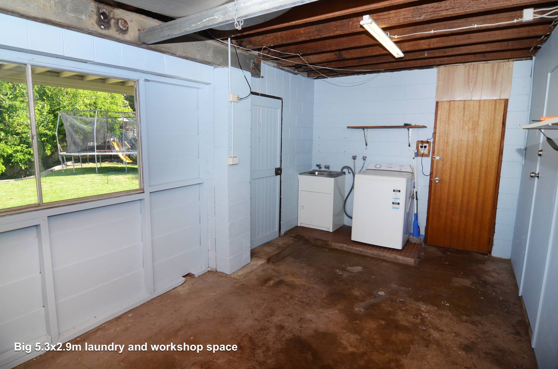Under the house is loaded with versatile spaces!  There’s a surprisingly large laundry/storage room, a second big room which could easily transform into a workshop, art studio, games room or home office, plus another big storage bunker at the back!