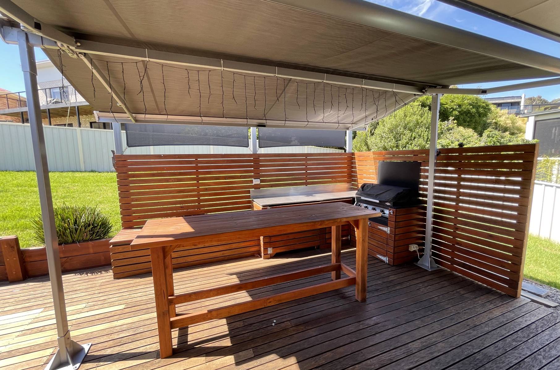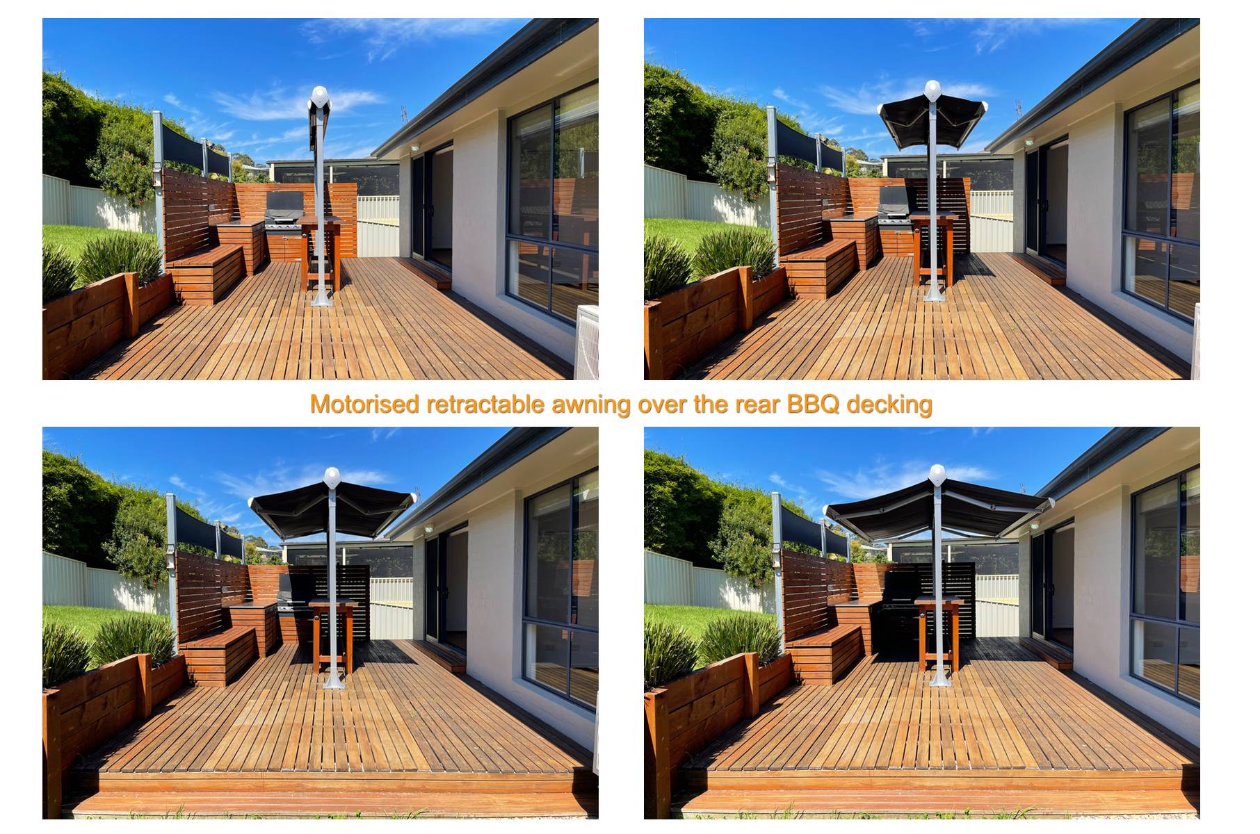 • Entertainment deck with built in seating, privacy screening, motorised retractable awning, built in BBQ and drinks fridge.