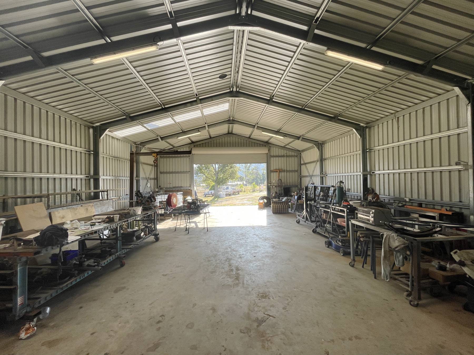 The most imposing and impressive feature is the huge 10m x 16m colourbond shed with a 3.8m high roller door.  It has  mains power connected with power points located in every bay along both sides and great lighting as well.  A 36,000L poly water tank is hooked up to collect rainwater off the massive shed roof.  The vendor currently resides in a caravan next to the shed.