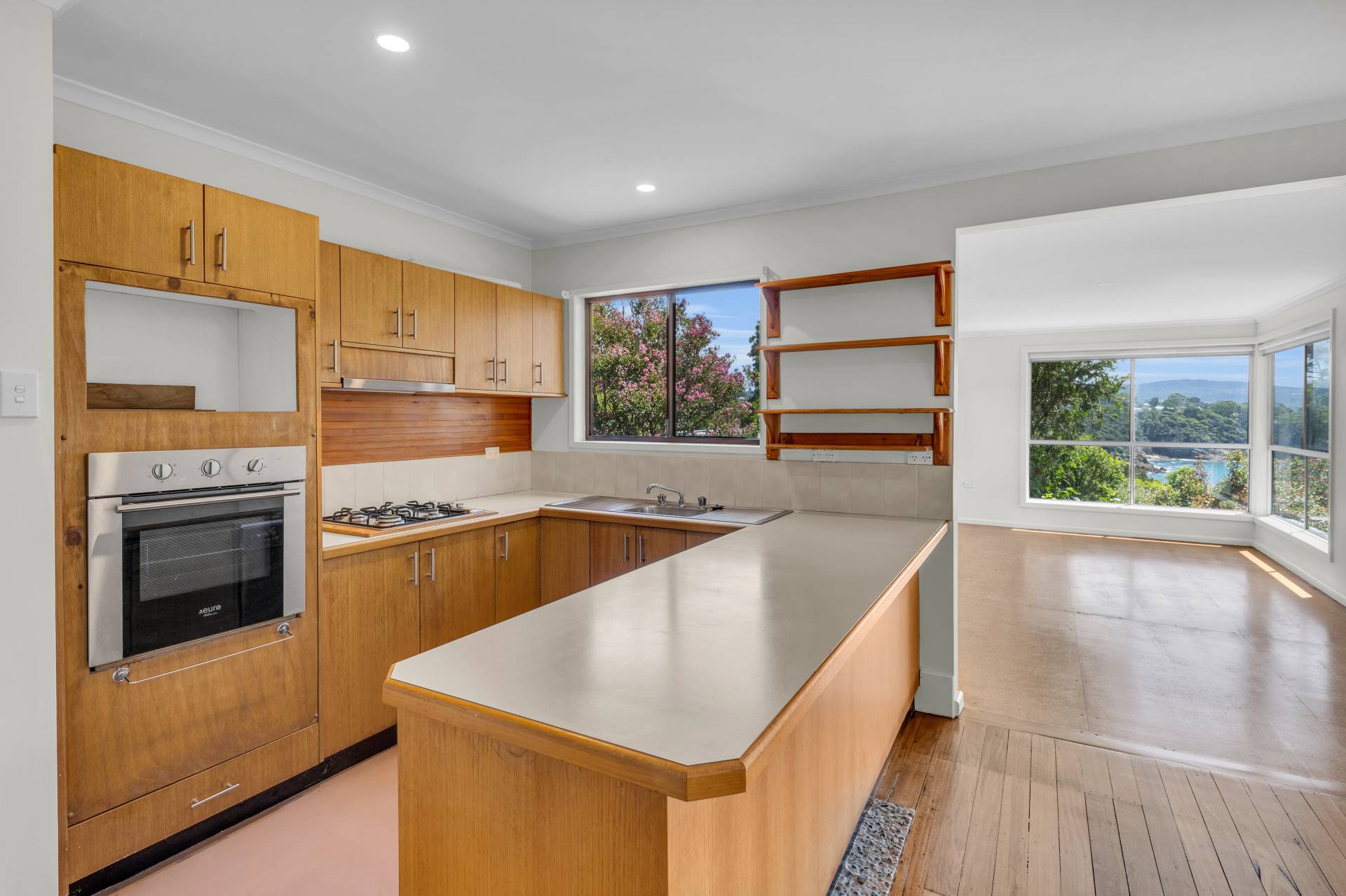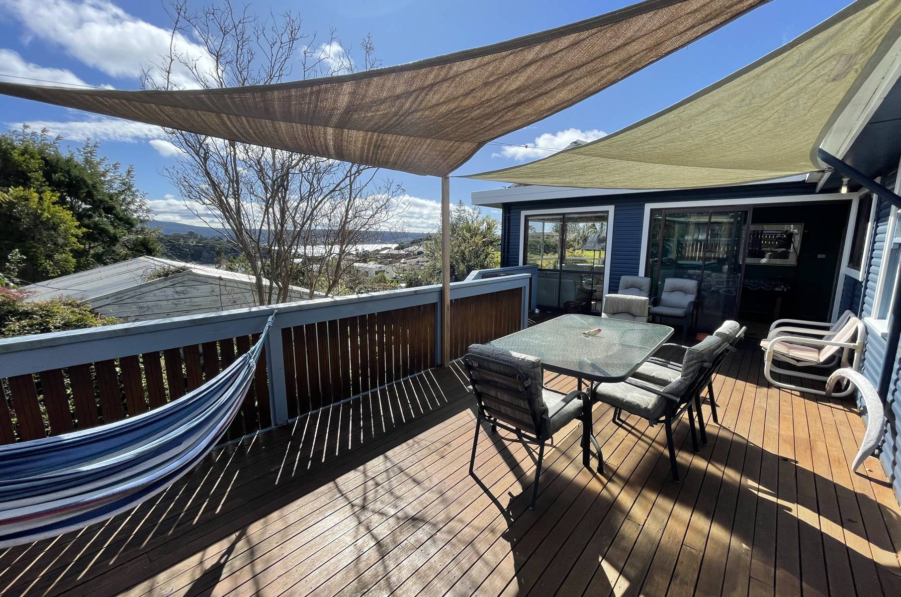 The 1960's timber original hardwood house has oodles of charm with its recently painted blue and white exterior giving it fabulous street appeal. Internally it has a 3 bedrooms, 2 bathrooms, a lounge room at the front and a family/dining area adjoining the kitchen and a fabulous sunroom to sit and enjoy a coffee and the views. A wood heater adds ambience and warmth in winter and reverse cycle AC and the prevailing sea breezes take care of summer comfort. There is back-to-grid solar and a solar boosted hot water system to take full advantage of the brilliant Northerly aspect. The master bedroom has its own access to the back deck, an ensuite and a kitchenette (converted from a walk-in-robe) - with direct entry from the front of the home. Previously used with success as a dog friendly, self-contained BnB. There are classic hardwood floors throughout the home and there's a real charm to the whole place. You'll quickly feel relaxed and at home. If you like older homes in great locations with the best aspect and wonderful views then this is a rare find.