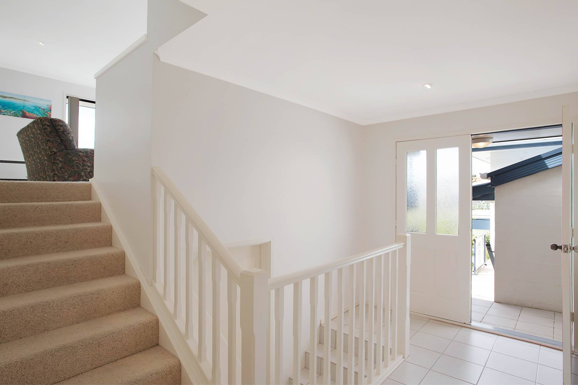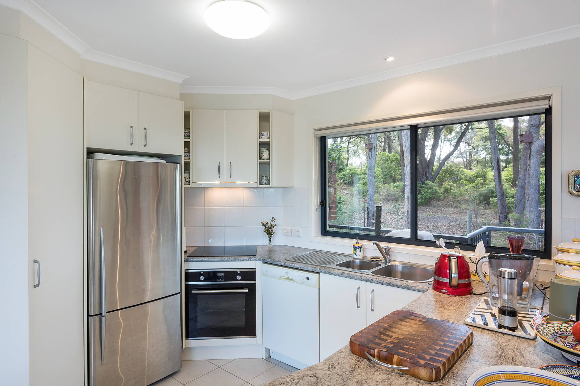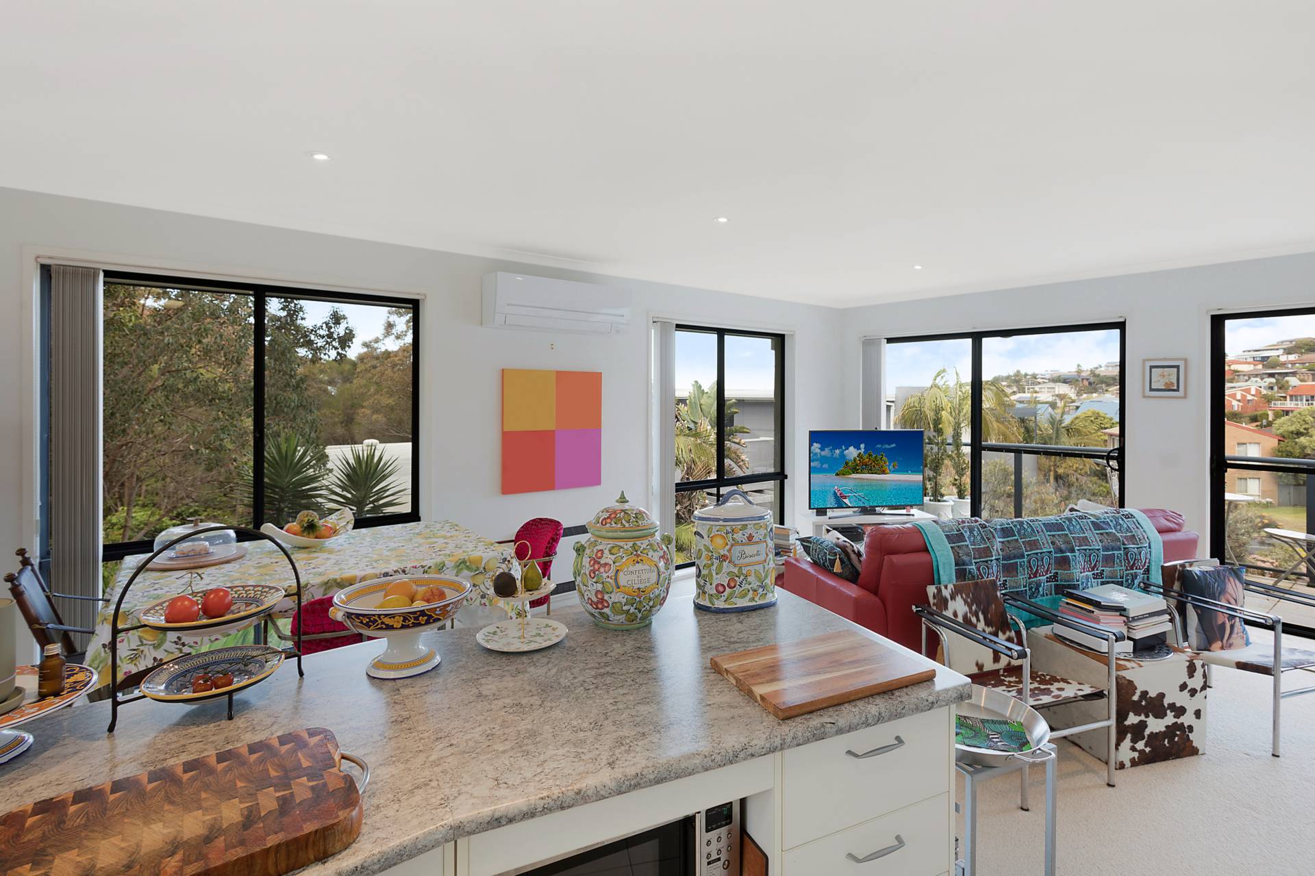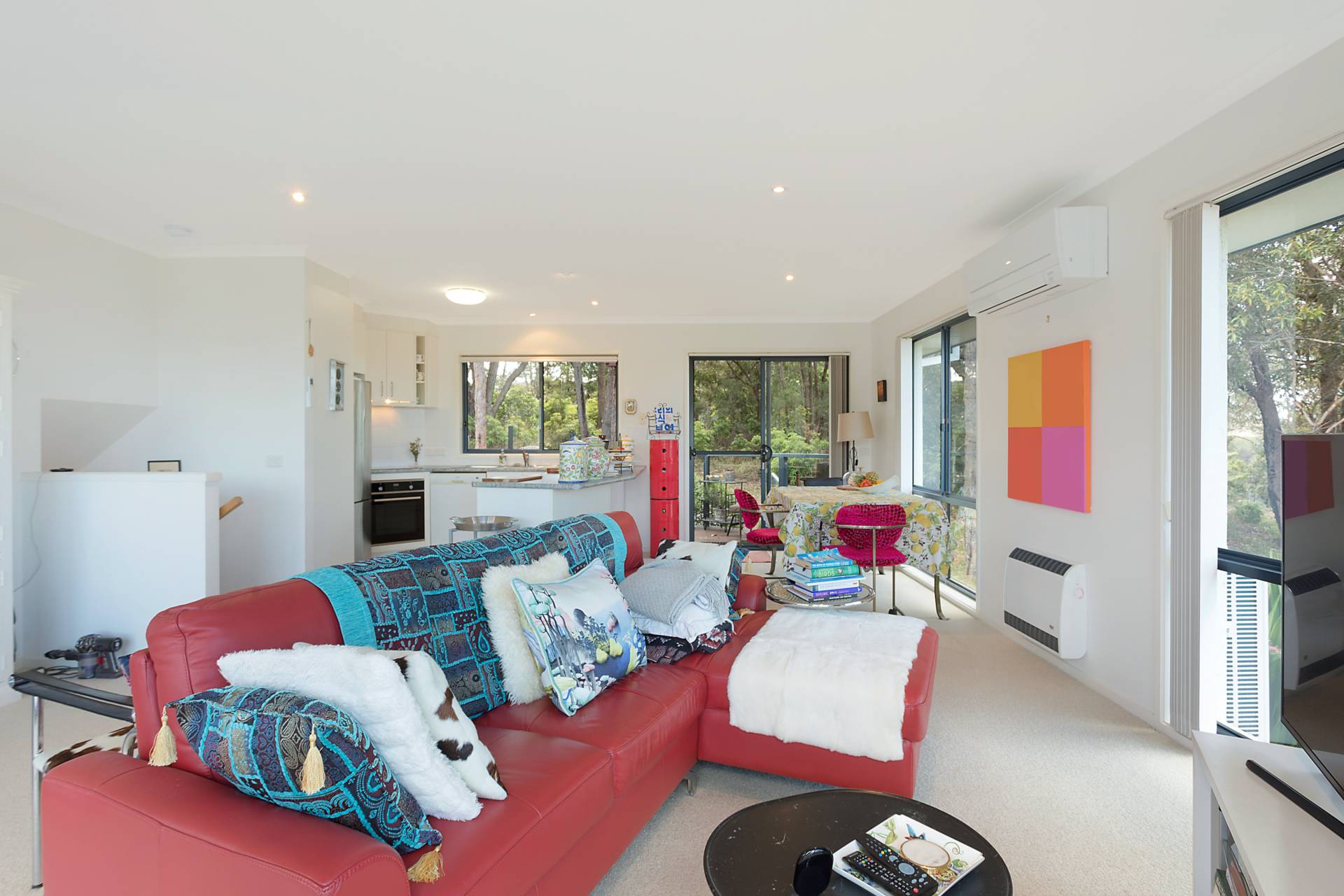 A charming elevated, split level townhouse that feels like a large home with its design making the most of its leafy surroundings, proximity to the beach and the Golf Course out the back.