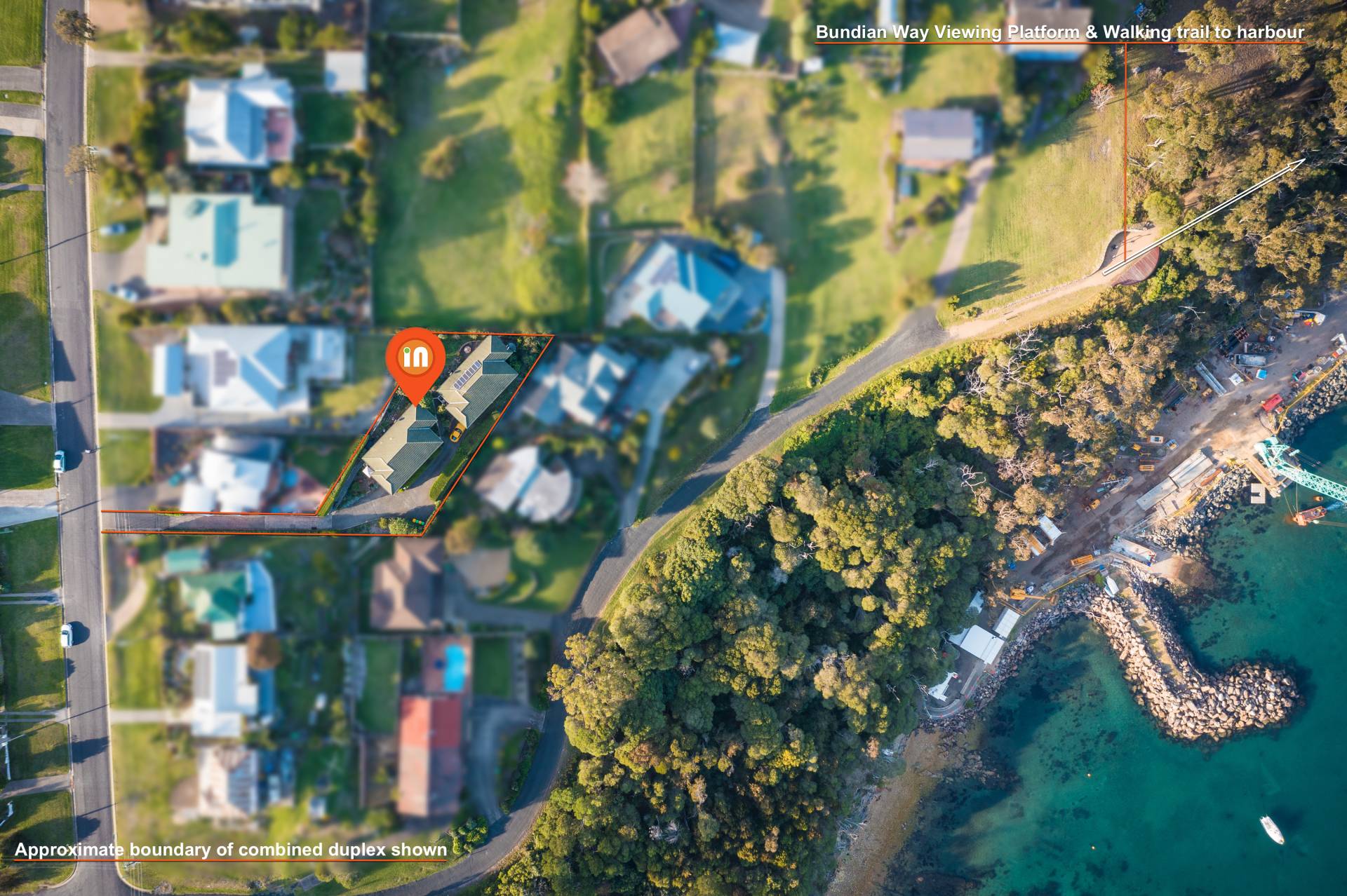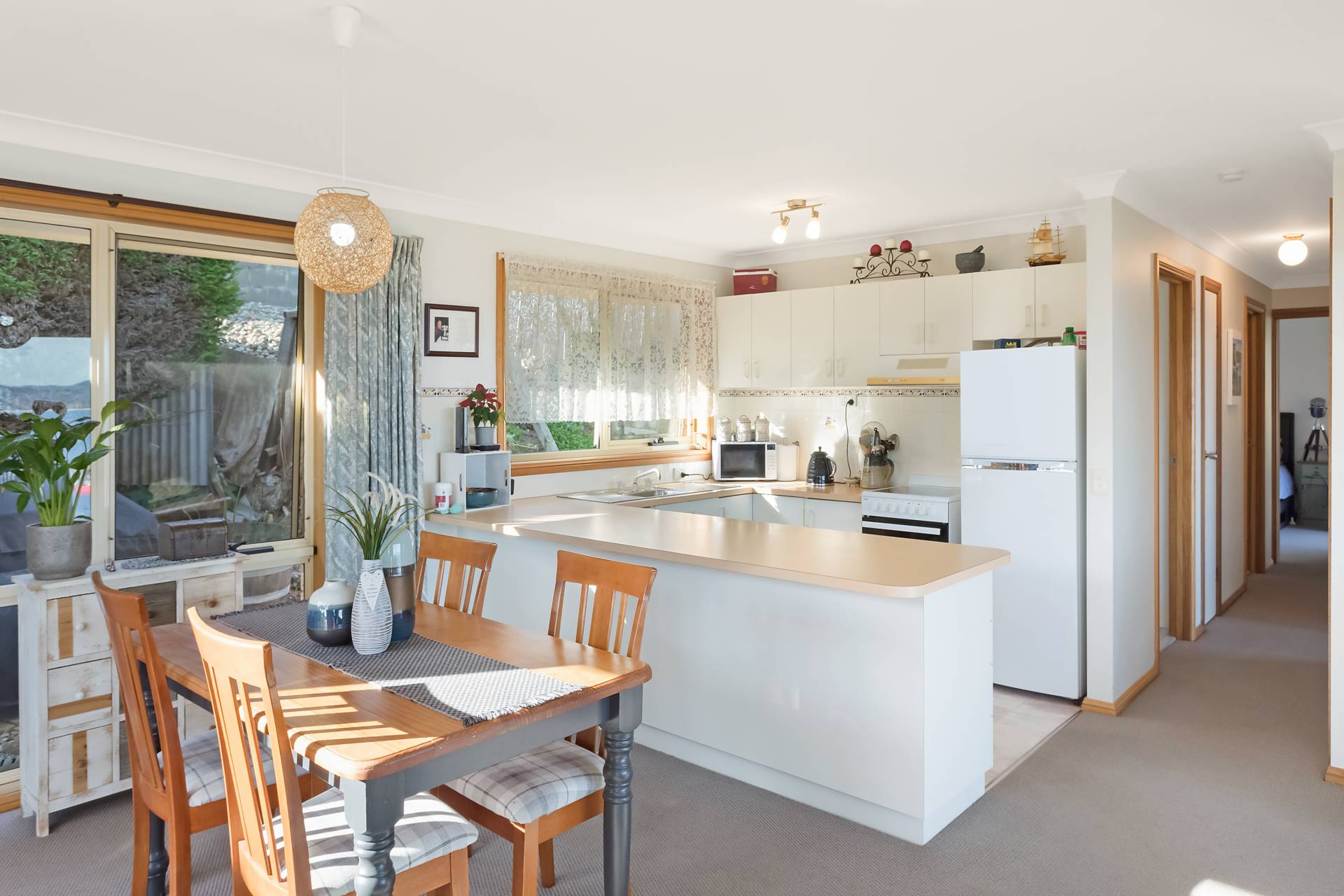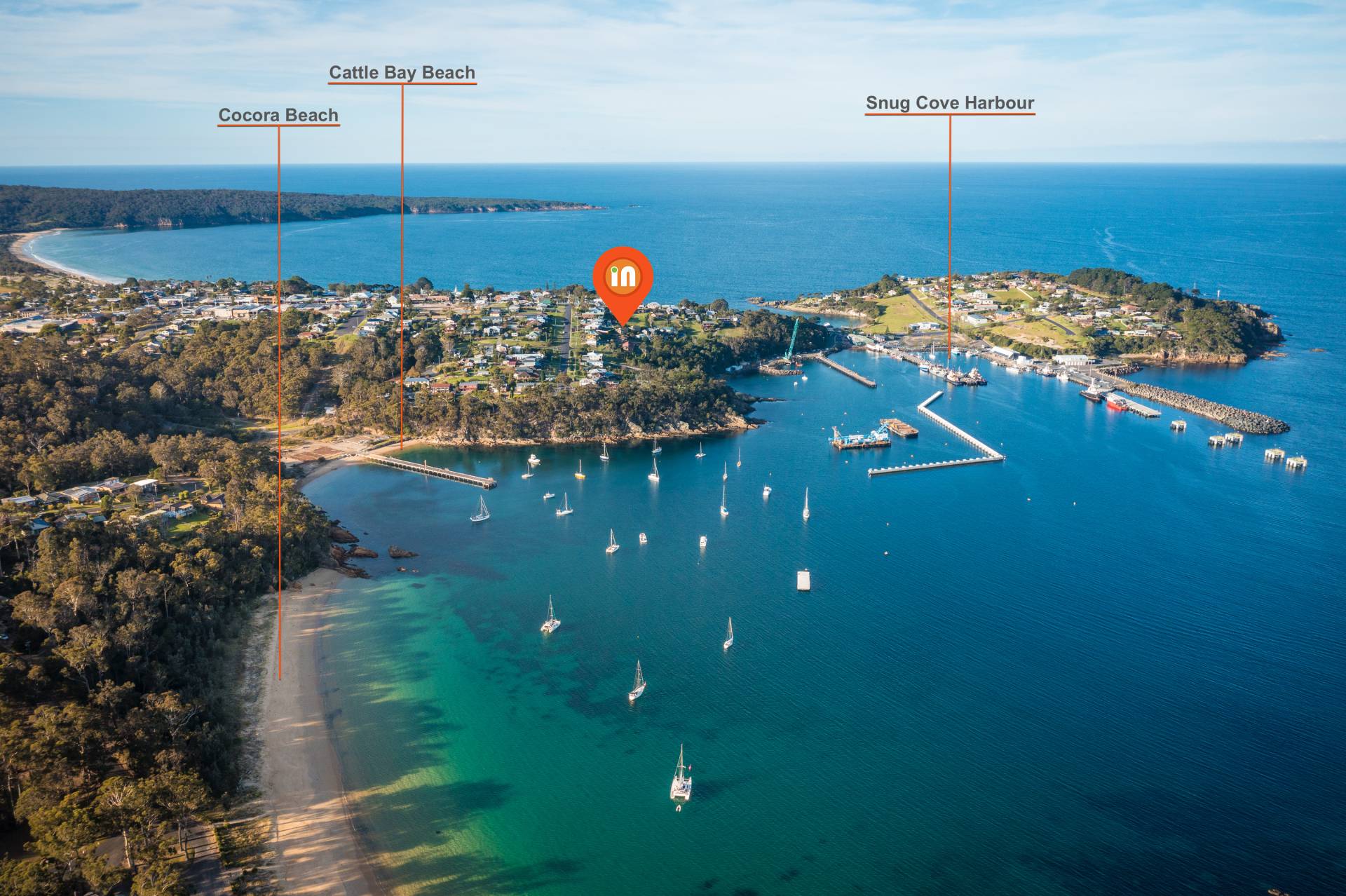 The property is tucked away off the street with one other similar building, in a quiet and surprisingly private location right in the heart of Eden.  Conveniently positioned just 400m from the main street with its cafes and pubs, less than 600m from Snug Cove harbour and about 600m to the nearest family friendly swimming beach at Cattle Bay.
