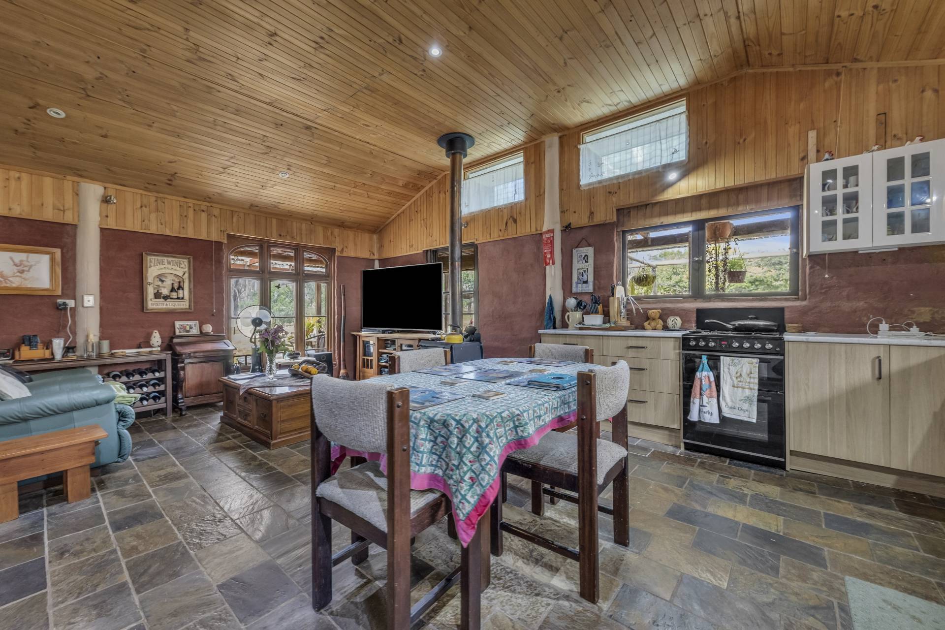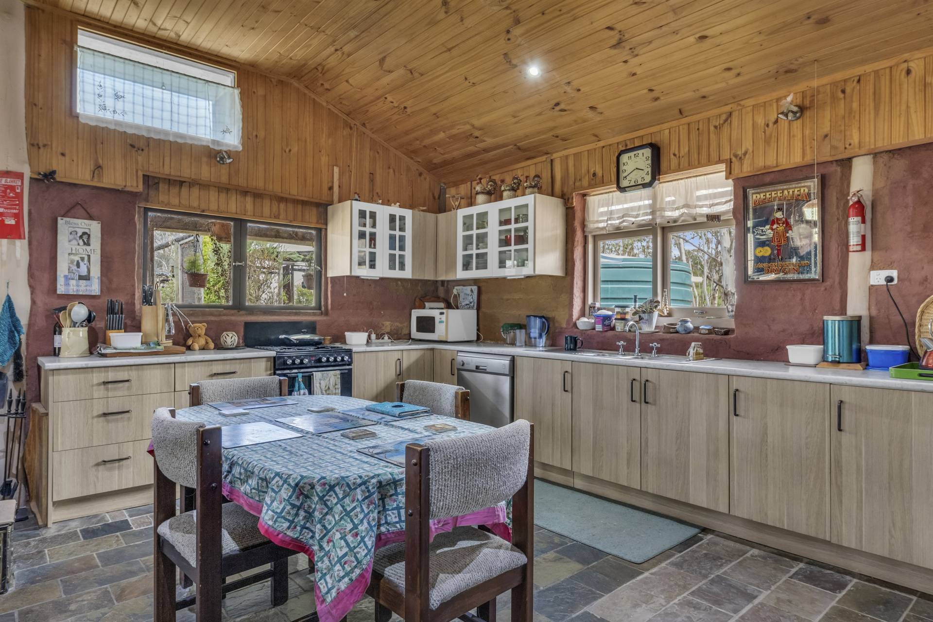 The cottage feels instantly calming upon entering where the spacious open plan living area greets you.  Features include raked timber ceilings, mud brick walls, slate tiled floors and wood heater.  The kitchen offers great bench space, gas cooking and dishwasher convenience.  There are 2 whisper quiet bedrooms and a modern standard bathroom.