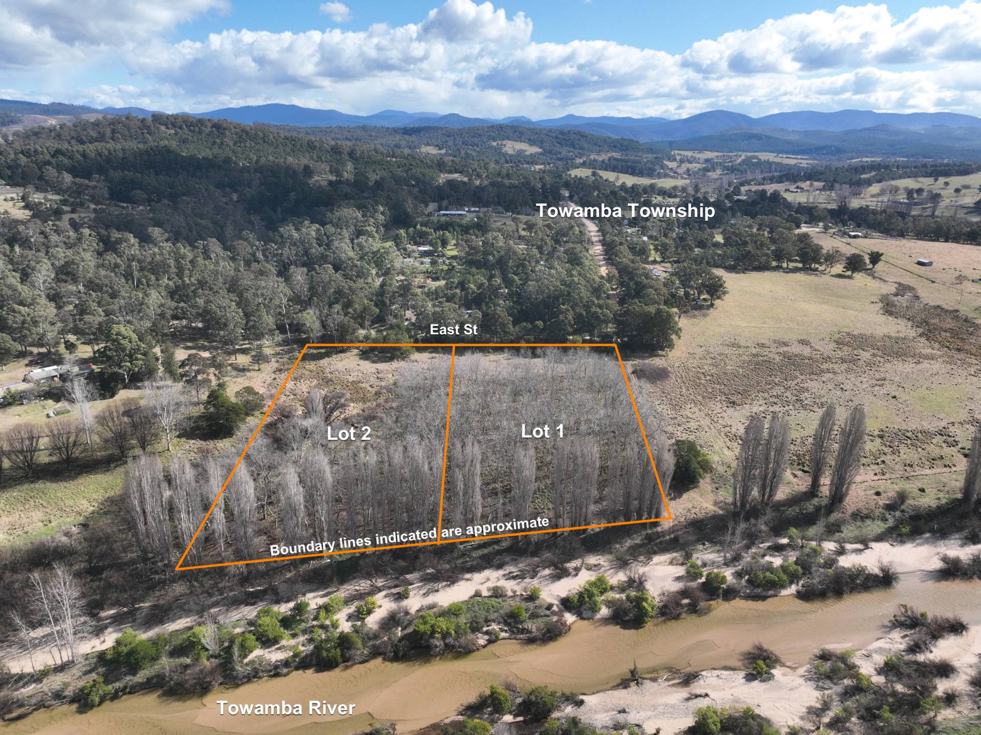Both lots possess boundary fencing and good street access from East Street with power available along the road frontage.  Interestingly, there are no direct boundary neighbours as the property is bordered by two paper roads, the river and East St.
