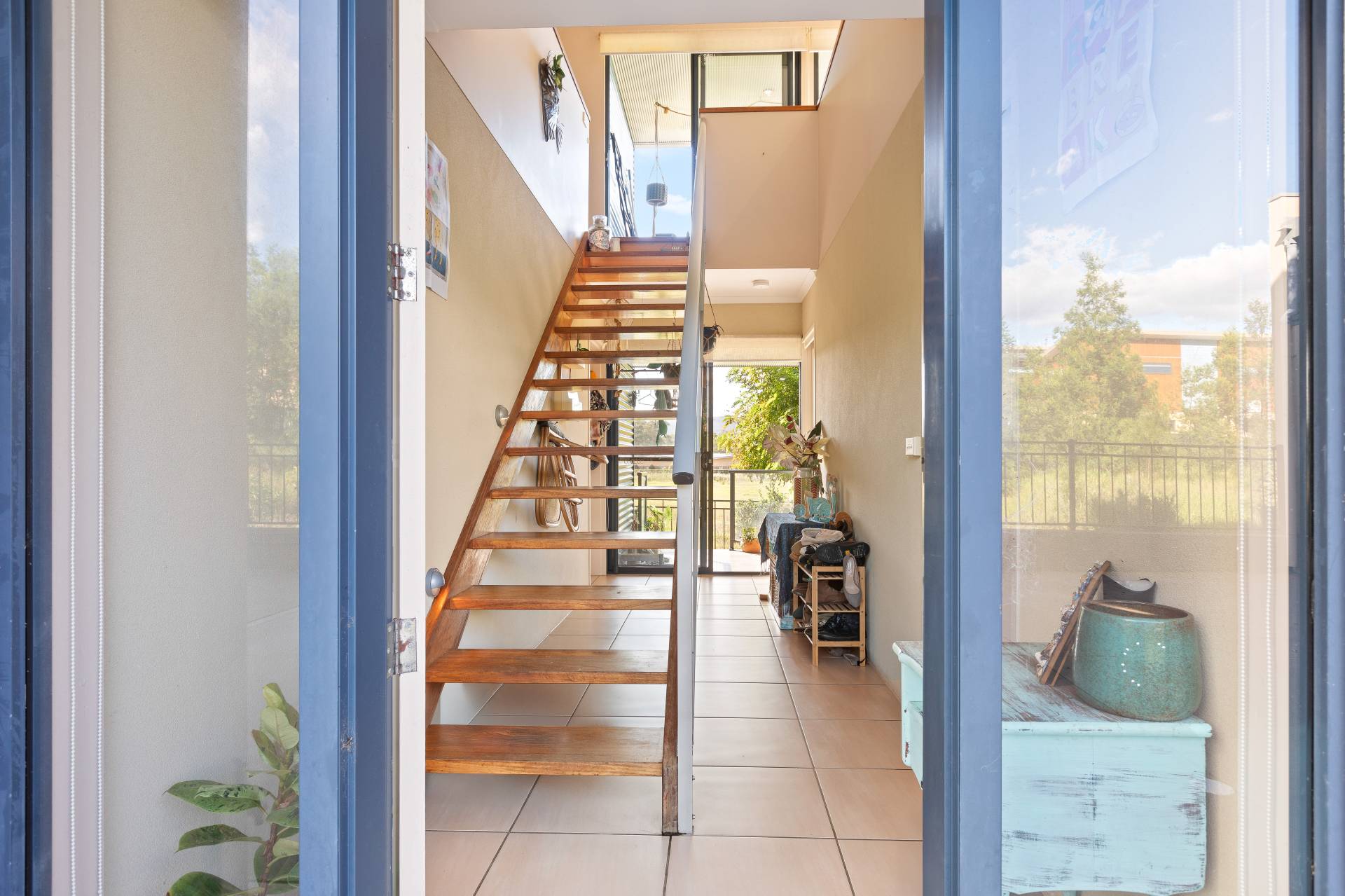 Impressive in its scale, the apartment features high ceilings throughout and abundant natural light. Open plan living areas and a beautifully appointed kitchen wrap around the central timber staircase providing thoughtfully constructed zones for day to day living.   It offers space and privacy with an ensuite bedroom on each level and dual North facing under-roof balconies for relaxing in the sun or entertaining. A double garage with remote door and additional storage space compliments the needs of modern apartment living.